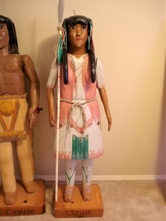 Native American Items: Baskets, Bowls, Pottery, Life size wood sculptures...