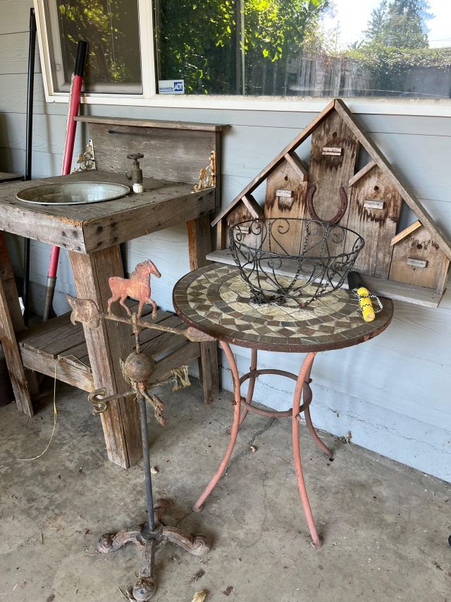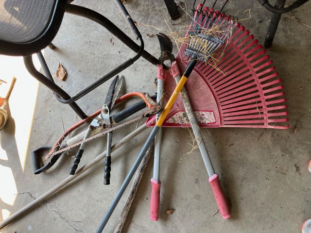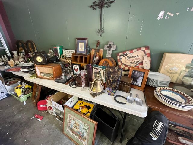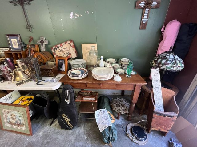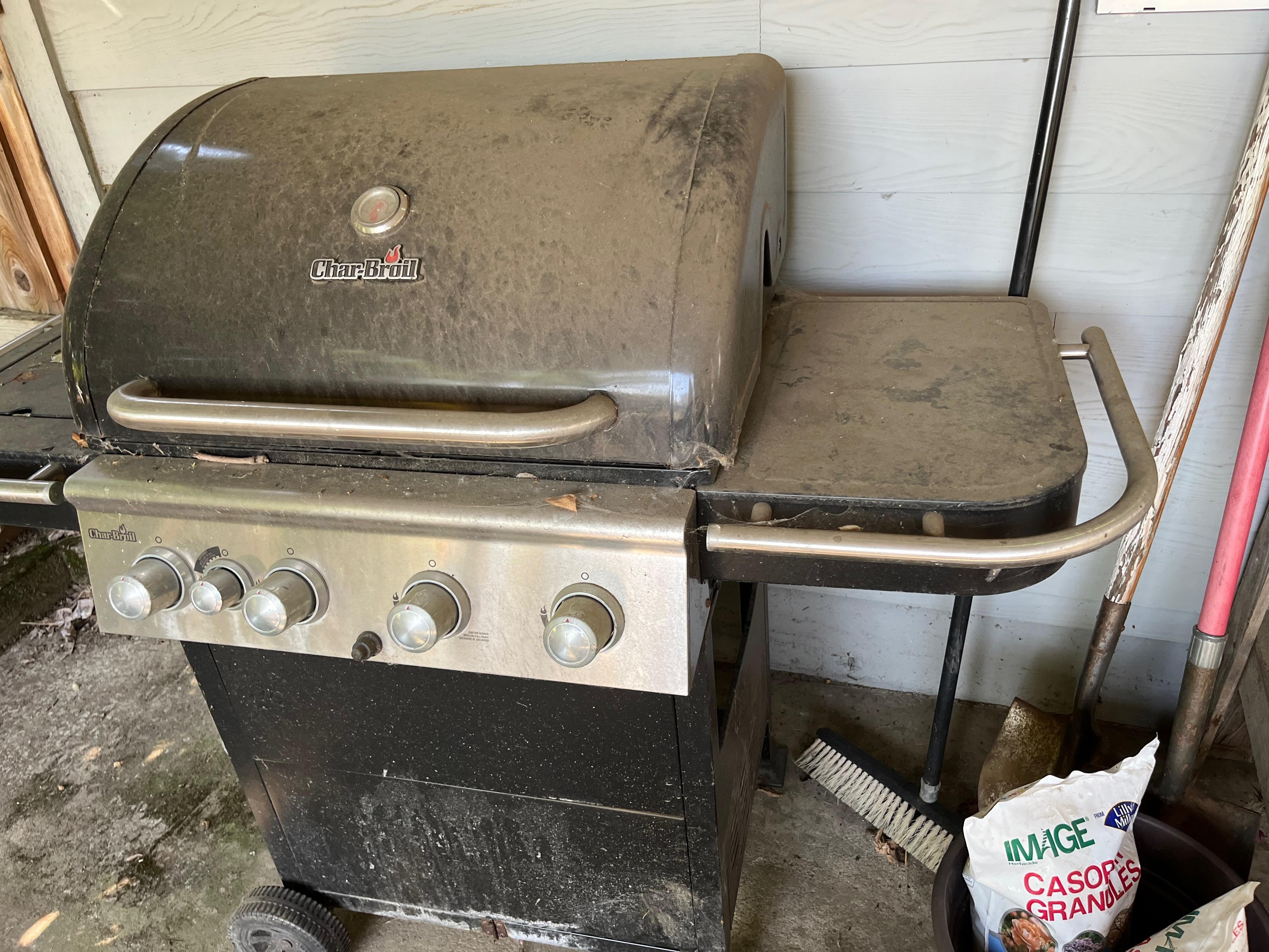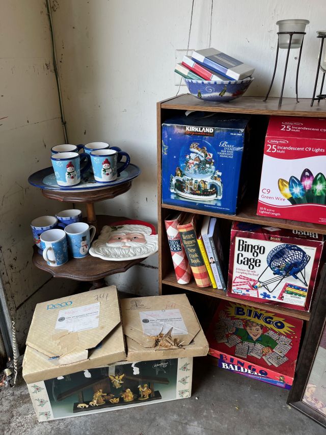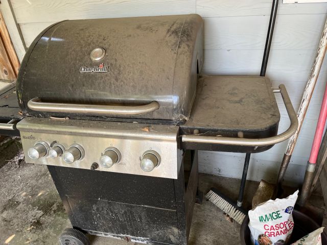 In addition, there are some tools, new BBQ, lawn mower, yard decor, camping gear, a newer refrigerator, TV.