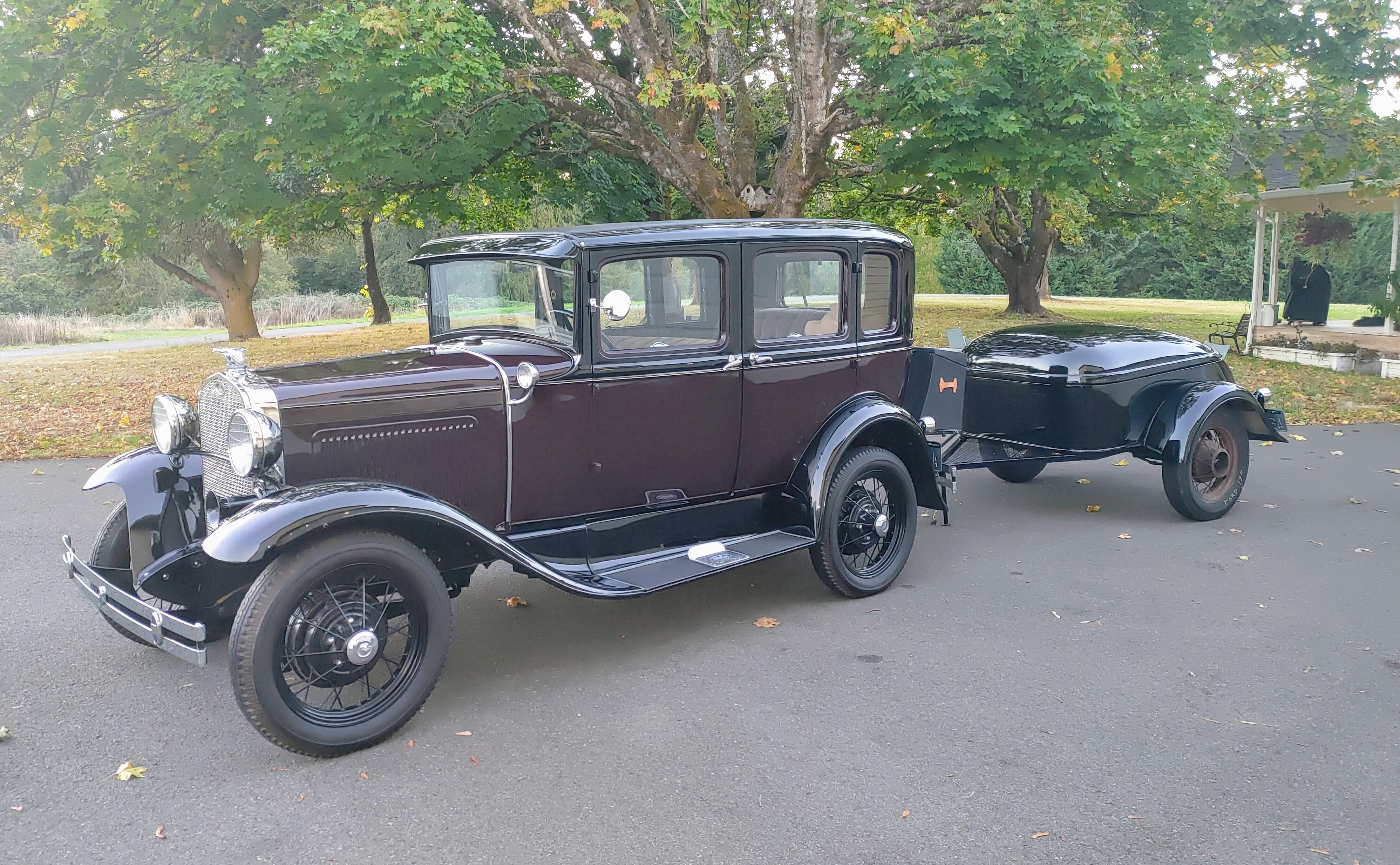 1930 Model A Ford 4 Door Town Sedan: new rebuilt H&H engine with inserted bearings, high compression head, new Mitchell synchromesh transmission, new Mitchell over drive, hydraulic brakes, tube socks, pressurized radiator, new exhaust, new Mallory distributor, mohair interior, and excellent paint. Also comes with many new and used parts. Includes a replica Mullins trailer. (Note: due to the forecasted rain, the Model A will not be at the sale. It will be shown to serious buyers by appointment only.)