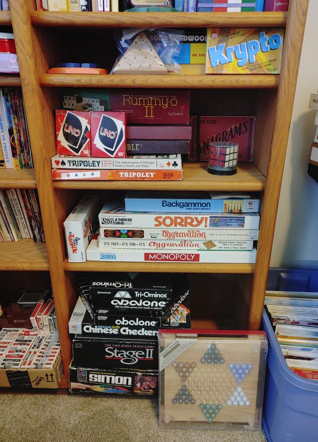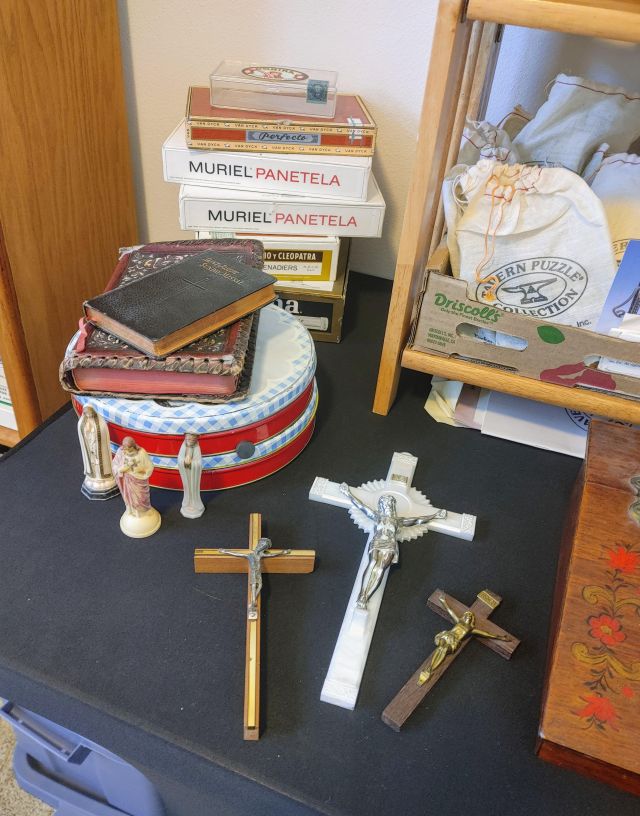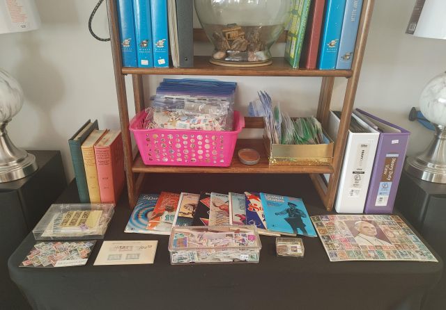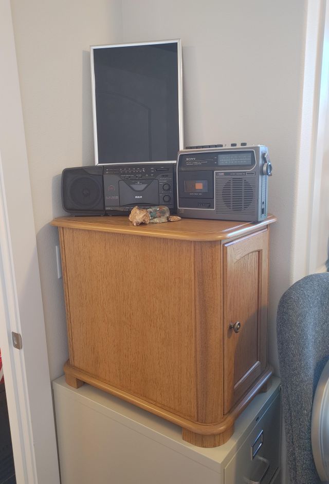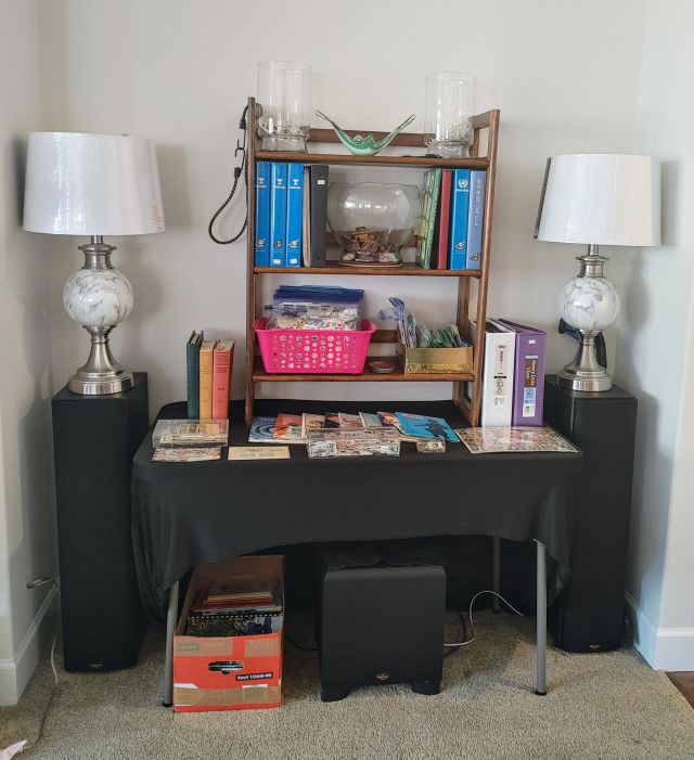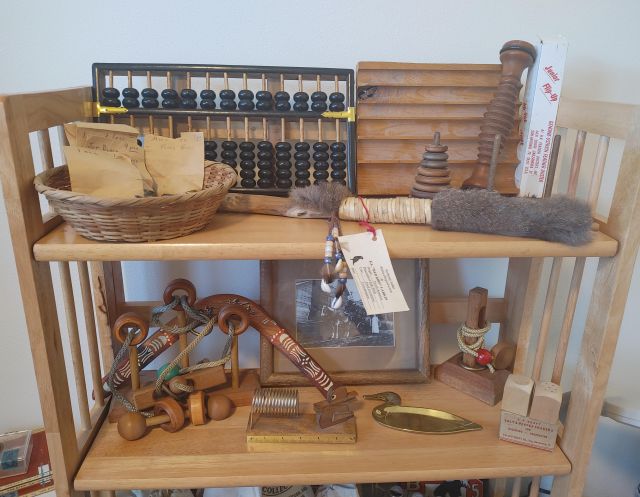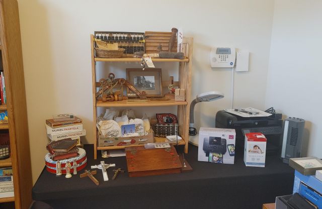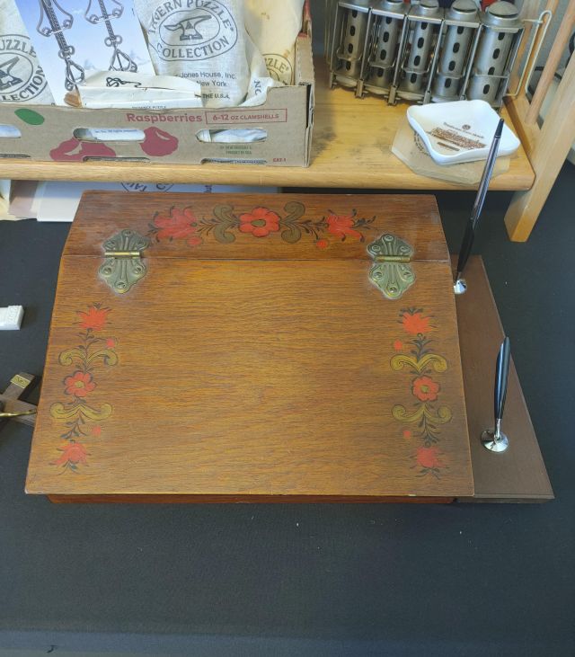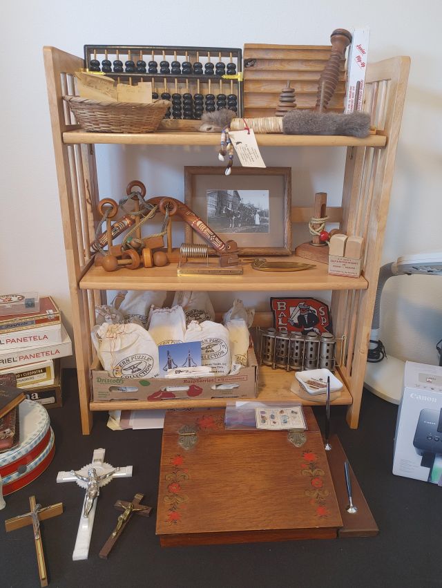Office: Packed with office supplies with vintage treasures mixed in, plus books.