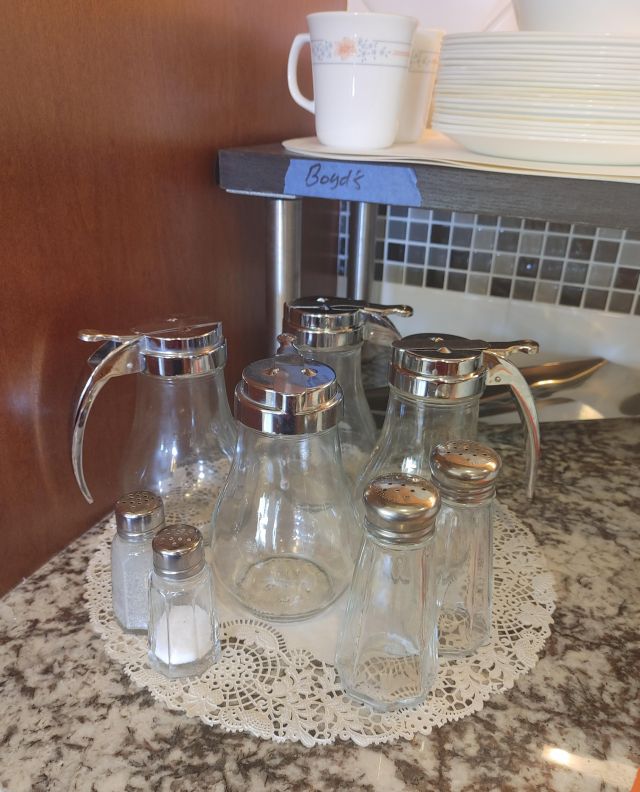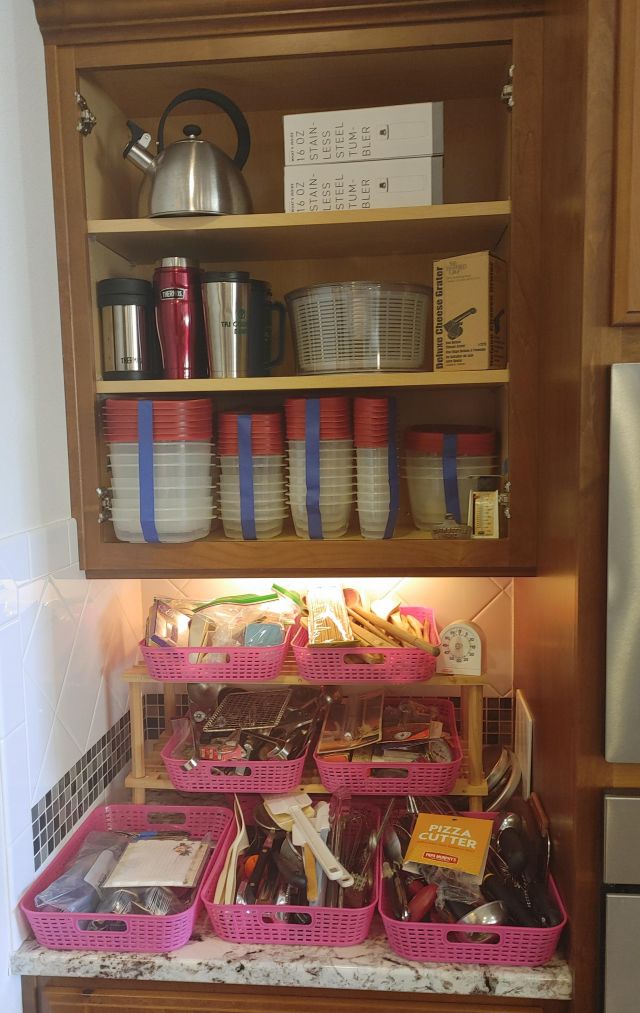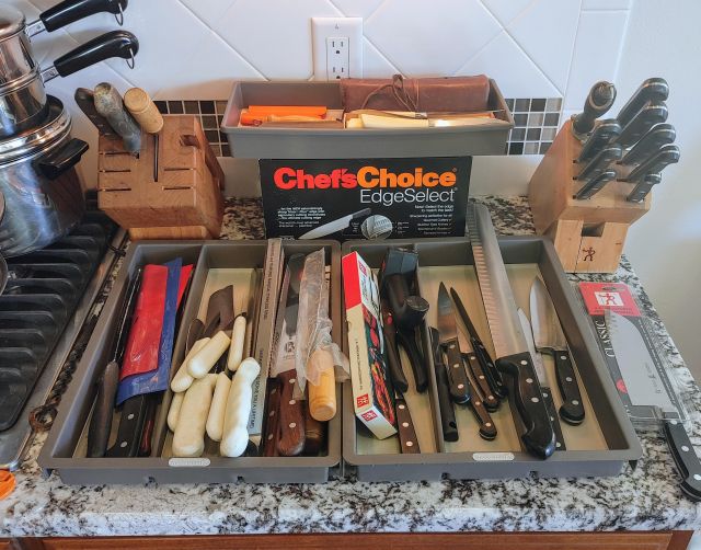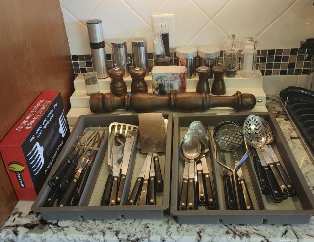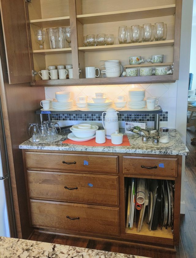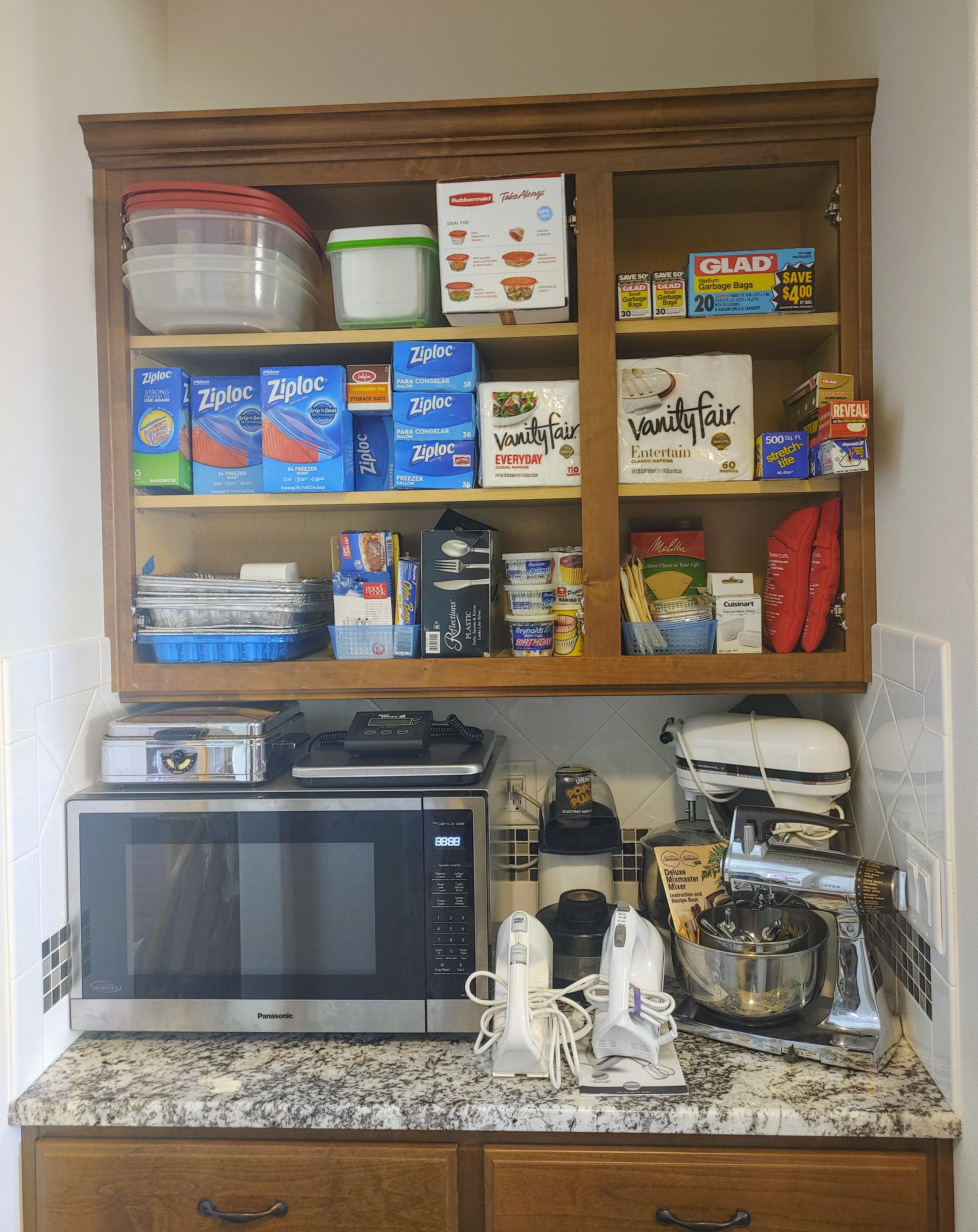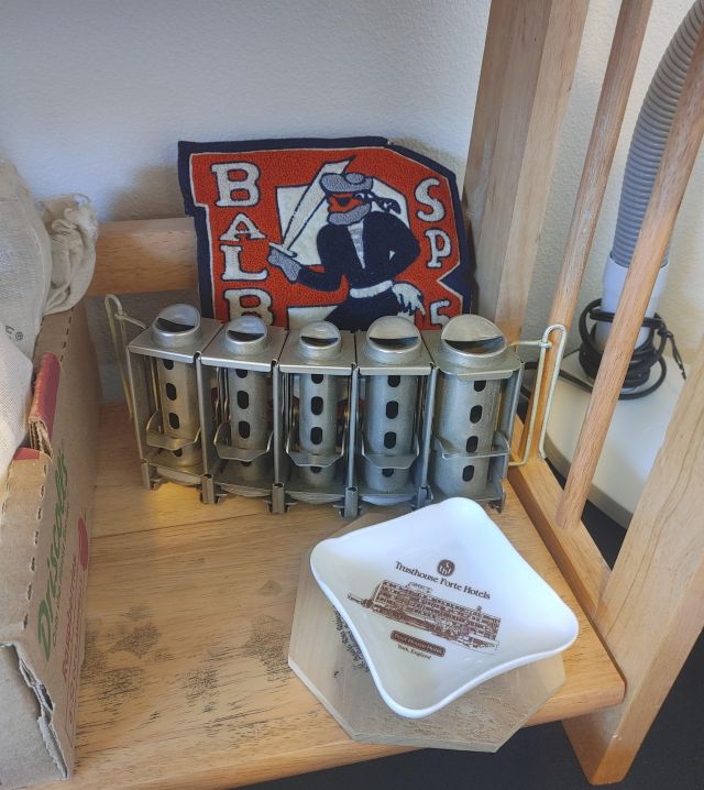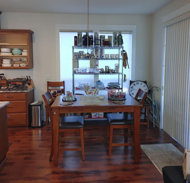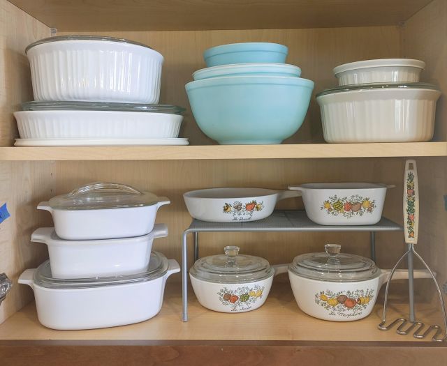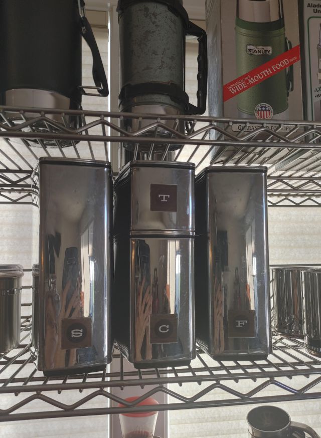 Kitchen: Lots of everyday basics, modern and vintage dishware, large collection of Stanley thermoses, large collection of J.A. Henckels knifes, pots and pans in every size, plus several cast iron pans in various sizes. We converted the pantry into a small appliance closet, includes a KitchenAid mixer, Food Saver, and many more modern and vintage appliances.