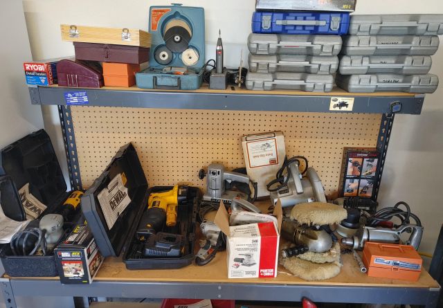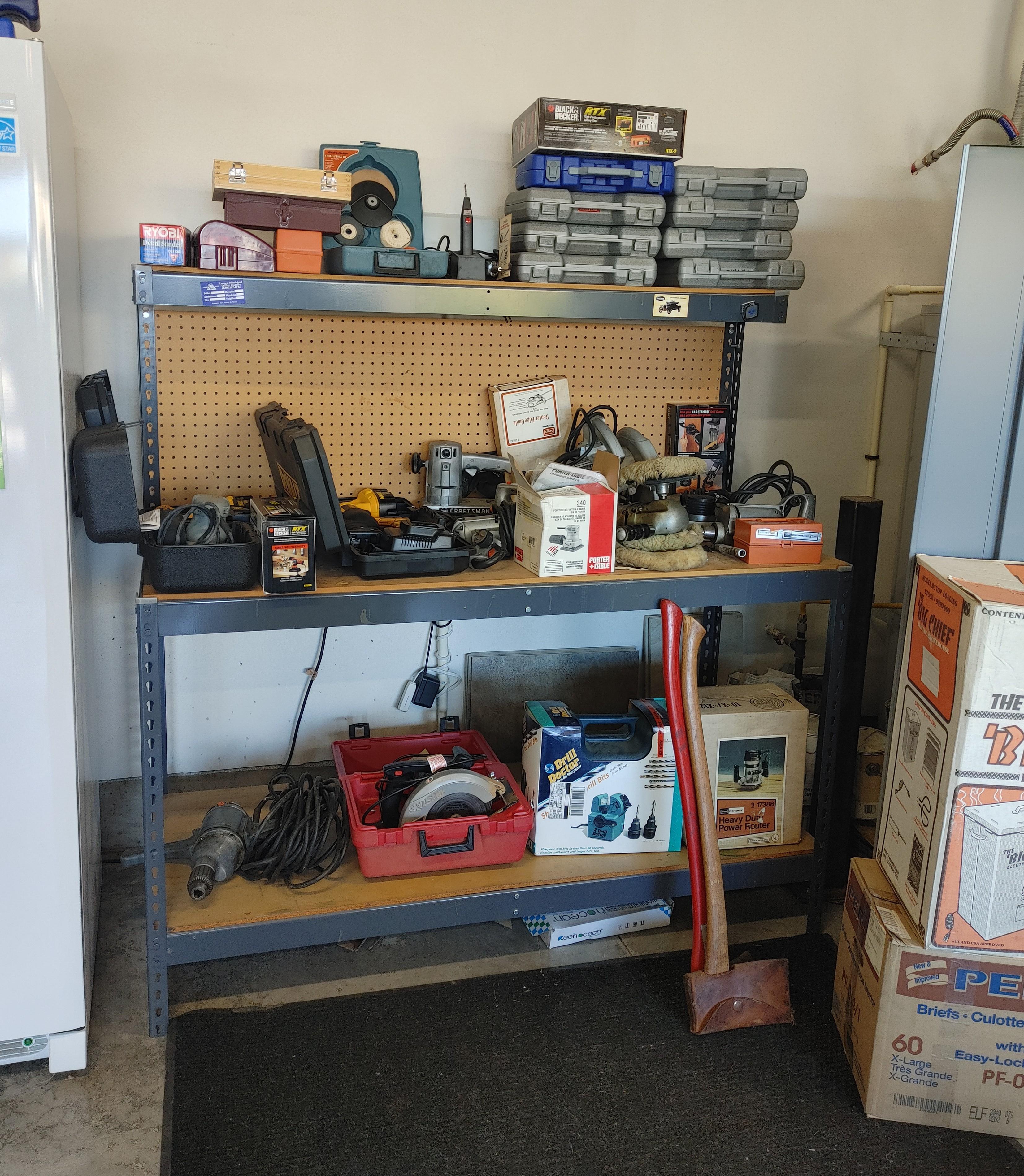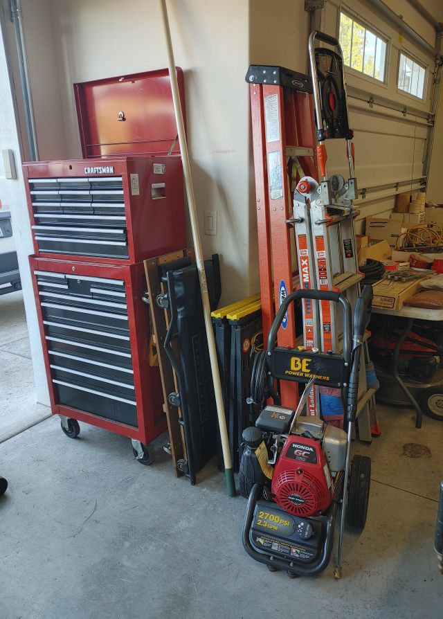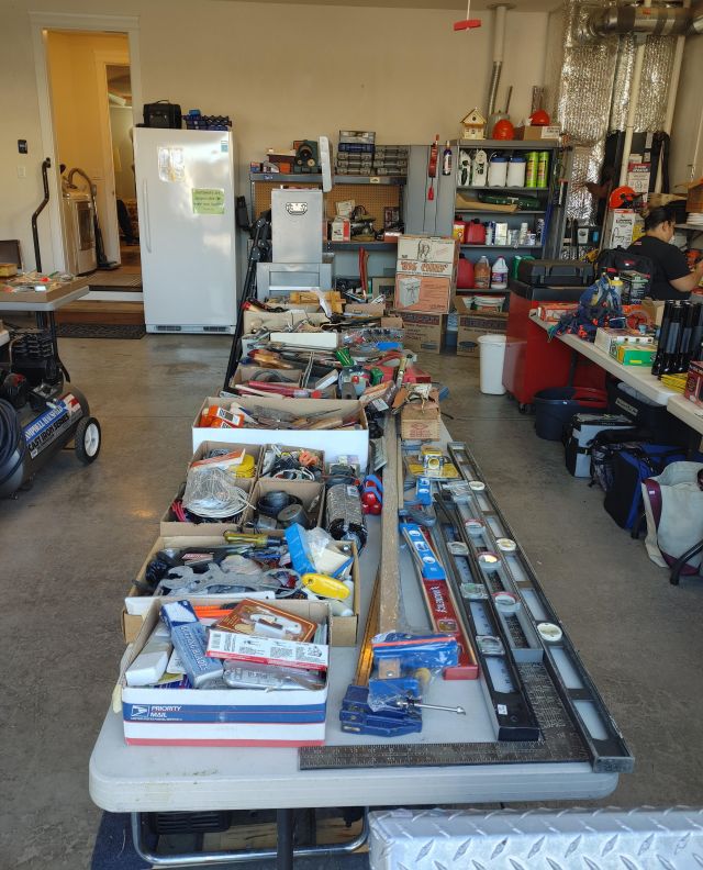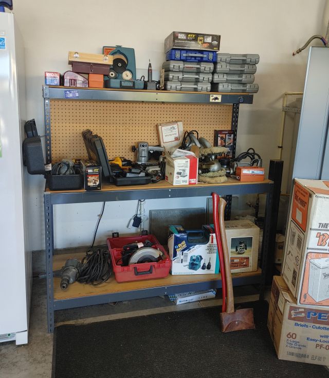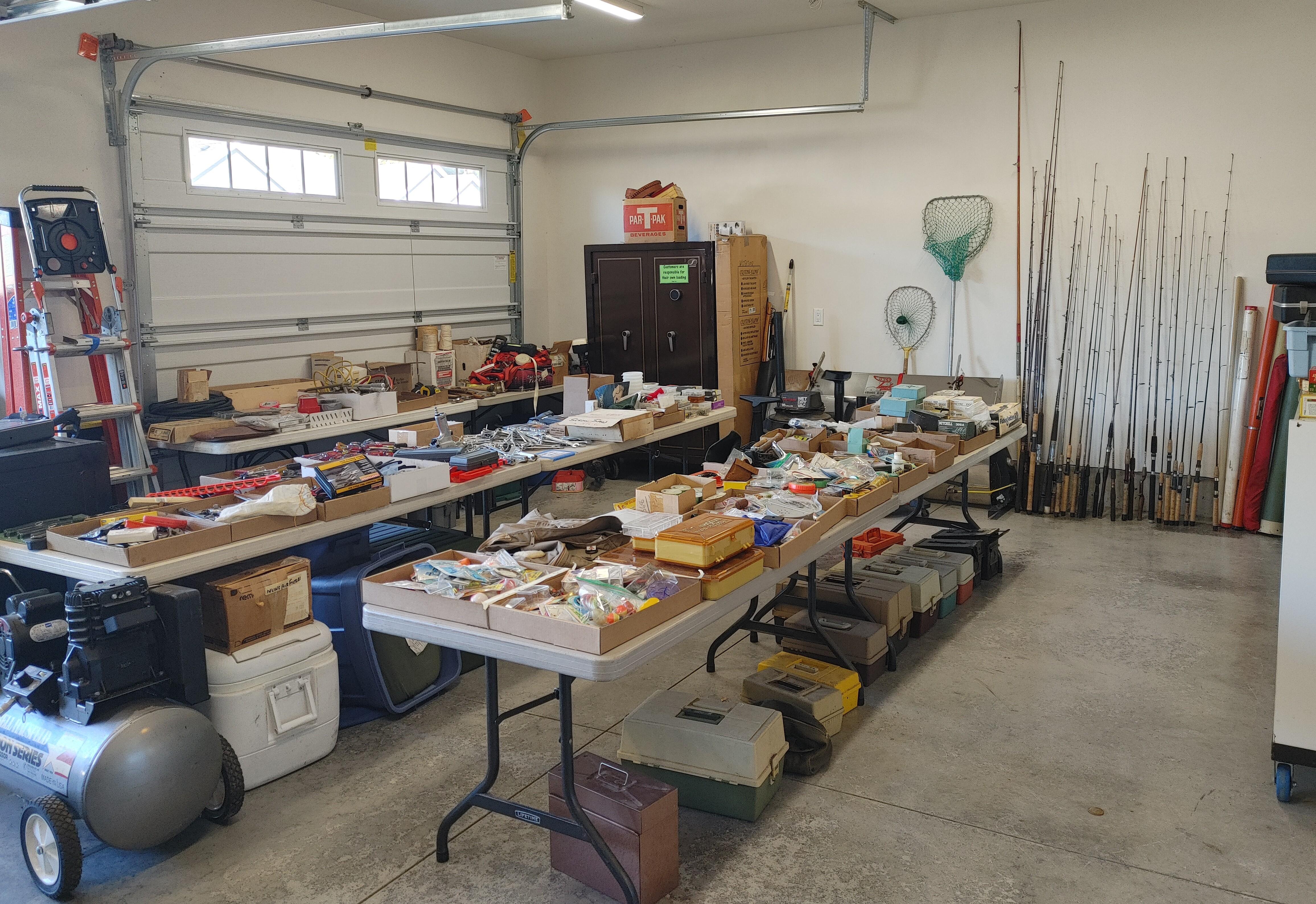 Garage: Lots and lots of tools, several Craftsman rolling tool chests, Honda generator, Honda lawn mower, BE Power washer with Honda engine, Campbell Hausfeld air compressor, fishing poles and multiple tables of tack, large Electrolux upright freezer, 2 safes, firearms (see list below), and coins. (Note: the firearms and coins are not and will not be stored onsite other than during sale hours)