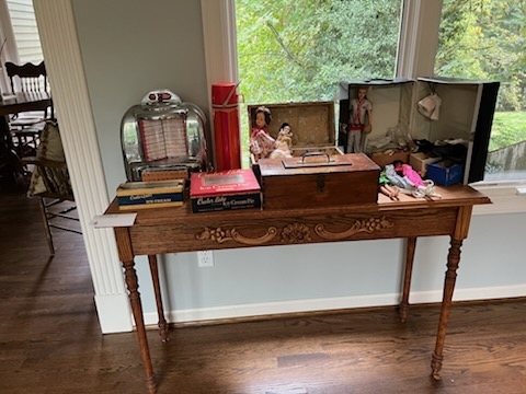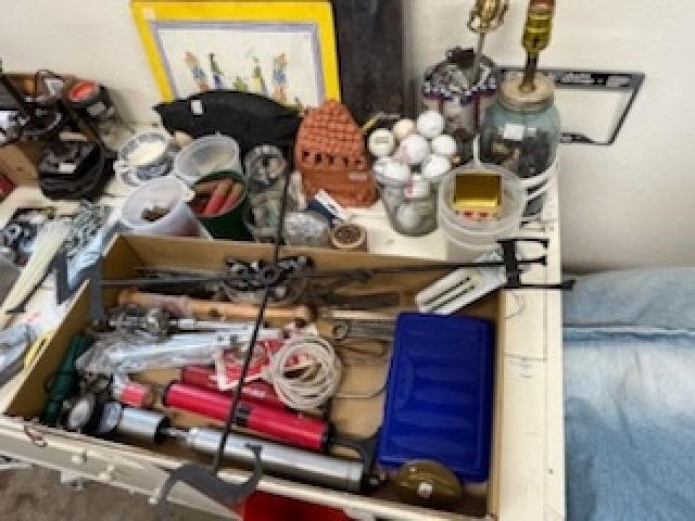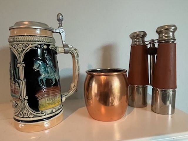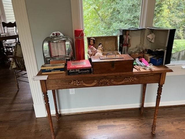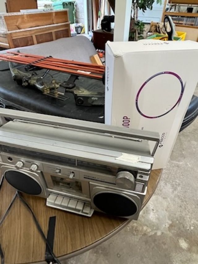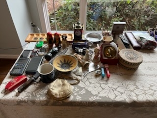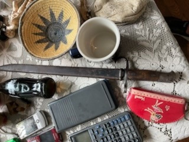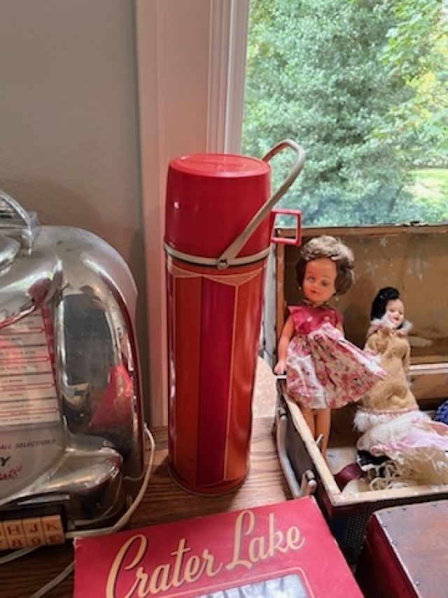2 Guitars, Hurricane Lamps, 2 Bayonets, Ammo, Antique Old Photos, Barbie Doll Collection, Antique Cloisonne Mantle Clock, Billiard Pool Table, Doll Bassinet, World Globe, 2 Sony Speakers, Stereo Equipment, Lots of Cameras and Accessories, Art, Architectural Pieces, Vintage Selecto-Matic, Vintage Brunswick Bowling Ball, Antique Remington Typewriter, Vintage Royal Typewriter, Vintage Binoculars, German Stein, Teddy Ruxpin, Vintage Copper Measuring Cups, Meissen Teapot, Clyde Drexler Full Coke Bottle, Lots of Jewelry, Lots of Jeans and Levi Jeans, Old Thermos, Old Ice Cream Boxes, Vintage Crates, Vtg Pez, Calculators, 48 Star Flag,