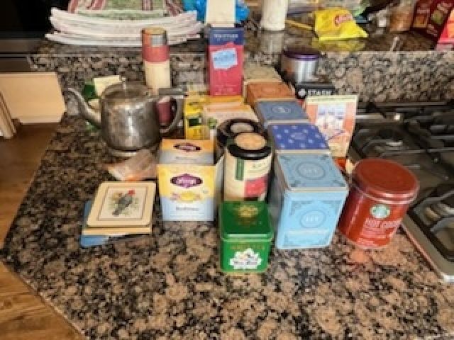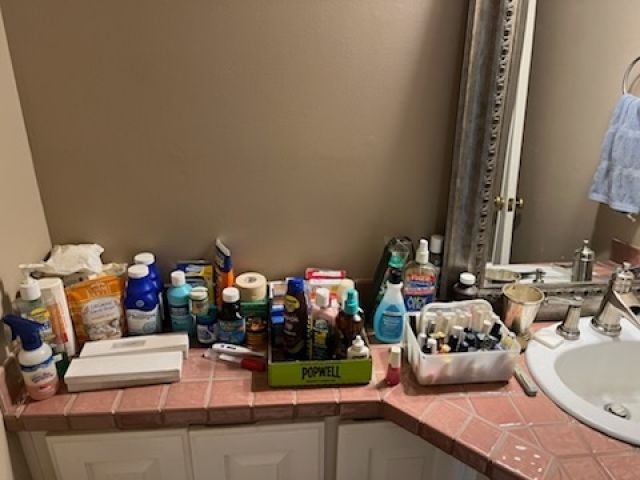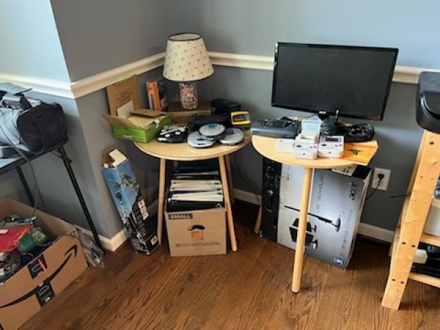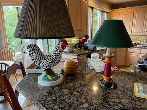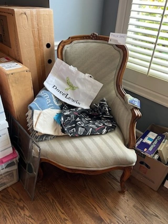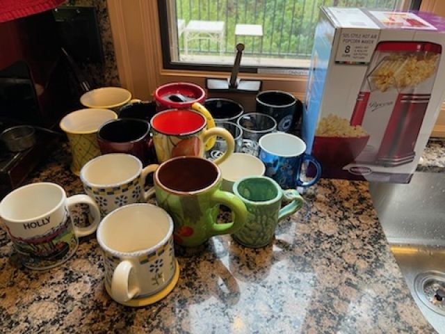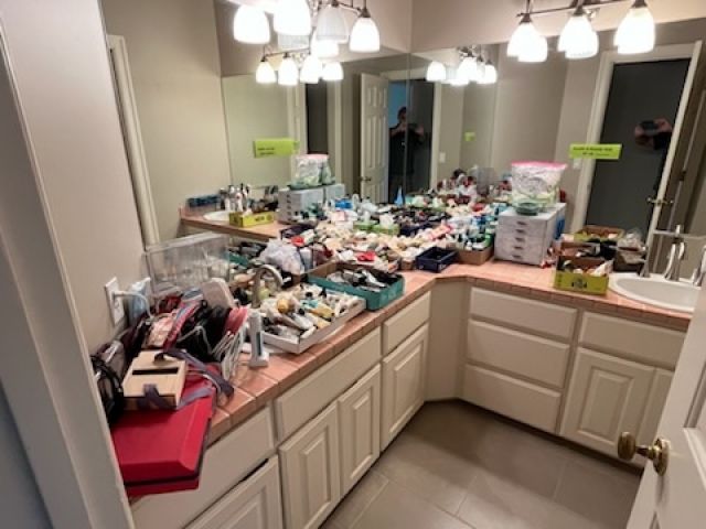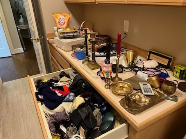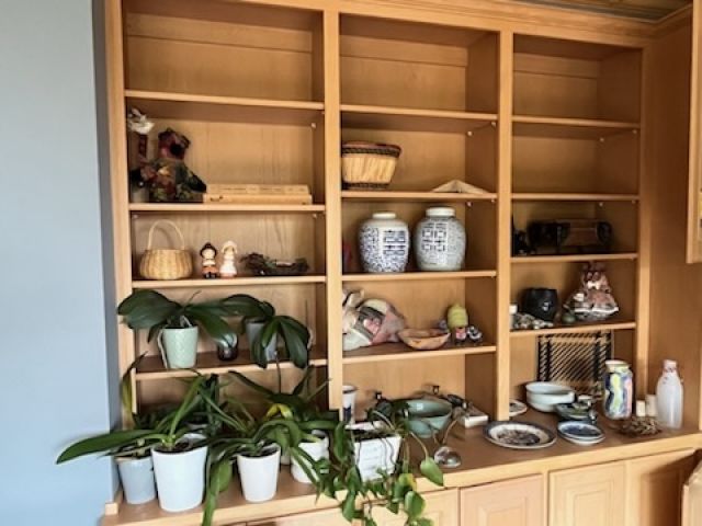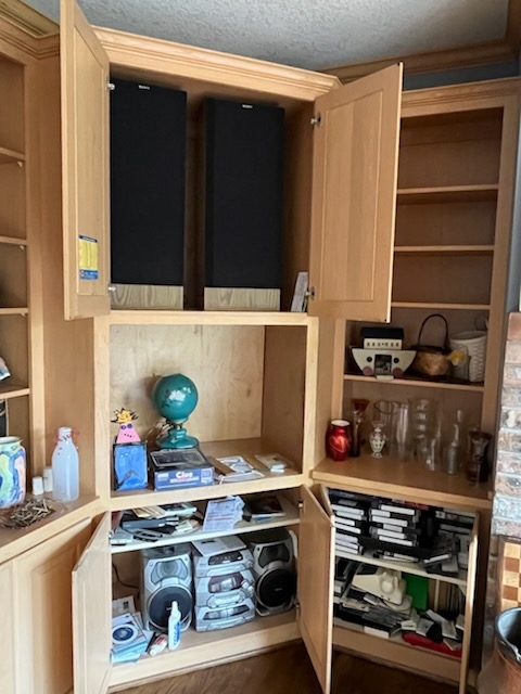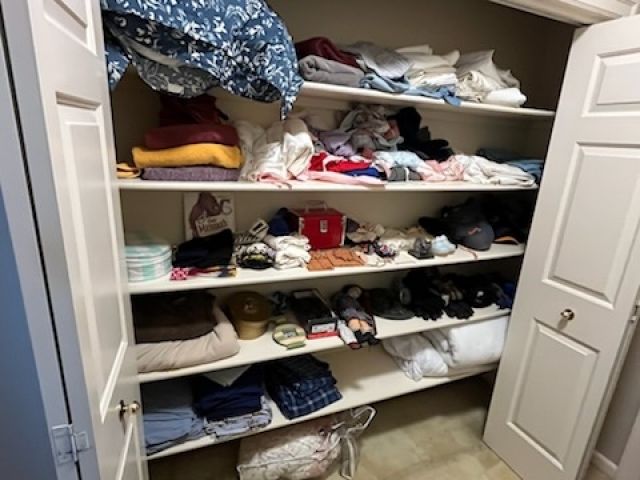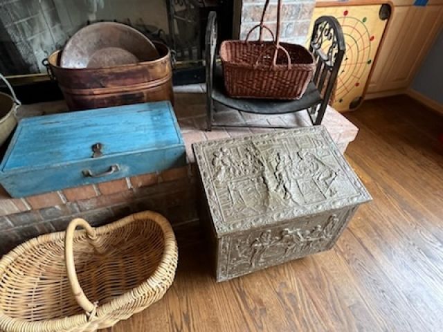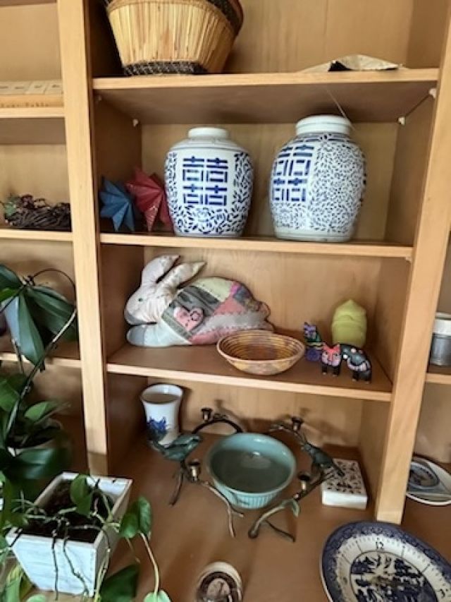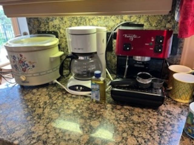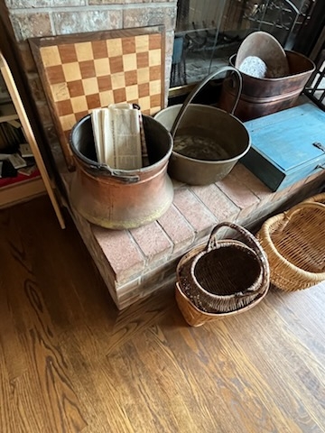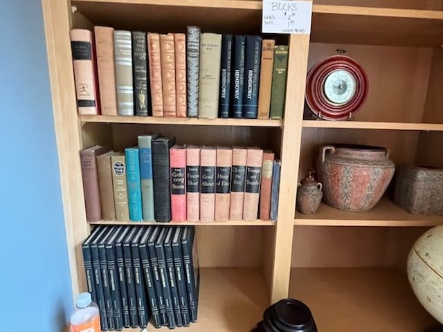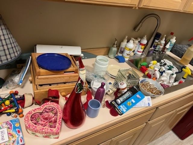 Cleansers, Linens, Lots of Books, Shoes, Clothes, Hats, Lots of Health and Beauty Aids, Umbrellas, Candles, Ornaments, Food, Dishes, Window Drapes, Luggage, Office Supplies, Painting Supplies, Lots of Canning, Vacuum, Holmes Air Purifier, CDs, Christmas Wrap, Bags, Andirons, Wagner Cast Iron,