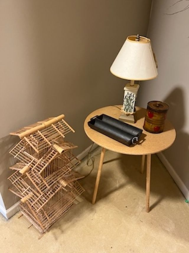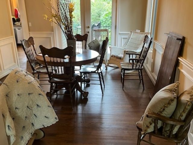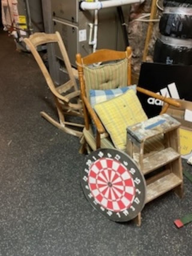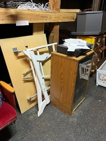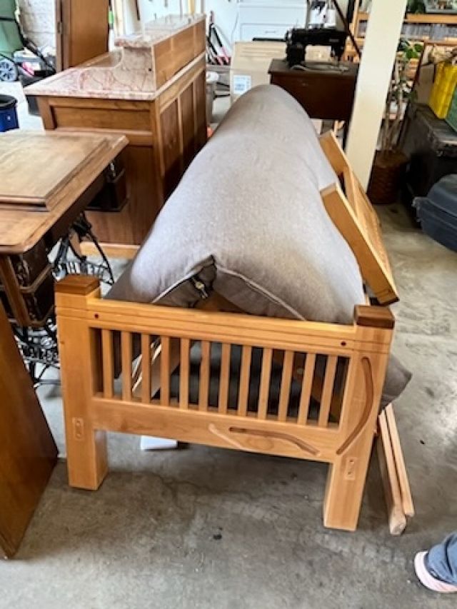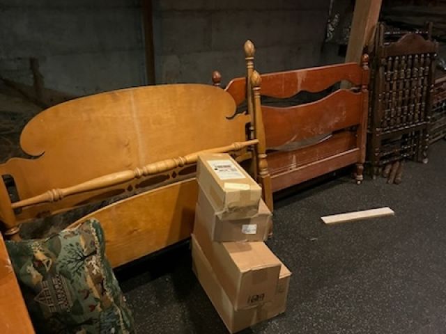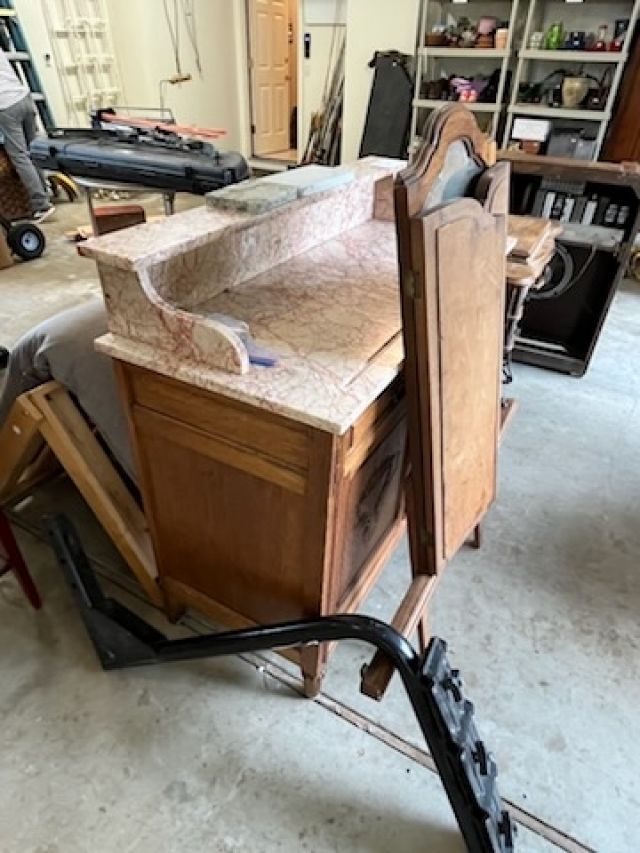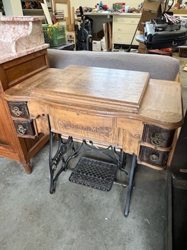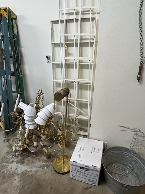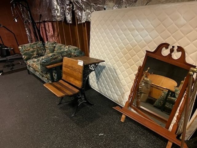 Chandeliers, Hall Tree, Wardrobe, Armoire, TVs, Parlor Chair, Antique Rolltop French Secretary Desk, Oak Dining Set, Dinette, 4 Chest of Drawers, Country Cupboard, Bar Stools, End Tables, 6 Different Bed Frames Headboard and Footboards, Sofa and Love Sofa, Futon, LG Red Washer/Dryer Set, 2 Antique Sewing Machines, Marbletop Desk, Racks, Trunks, Chairs, White Wicker Chair and Rocker, Sofa Table, Antique Student Desk, Vintage Theater Seat, Bench, Lots of Lamps, Sofa Table,