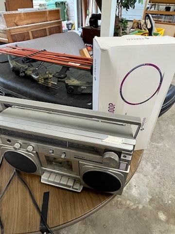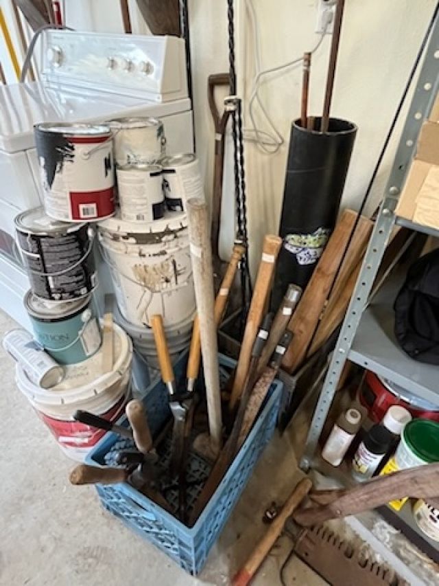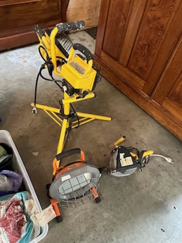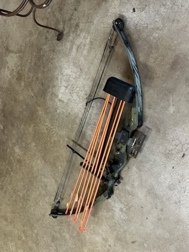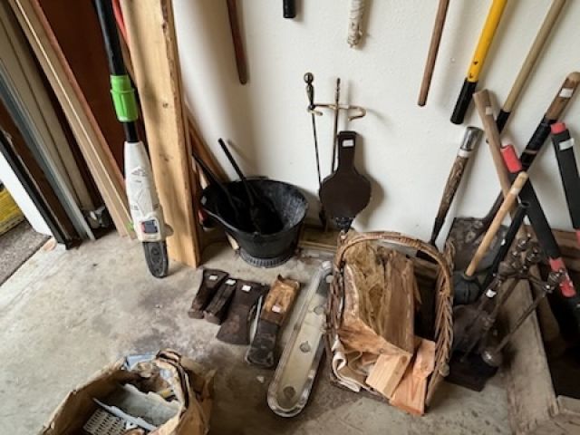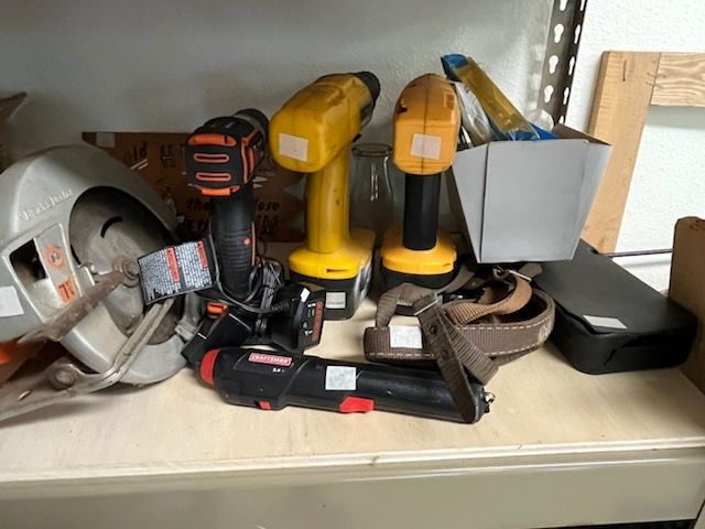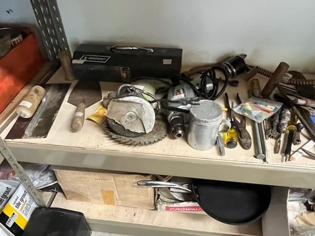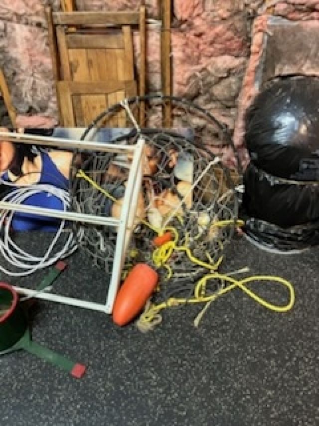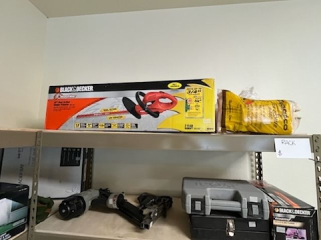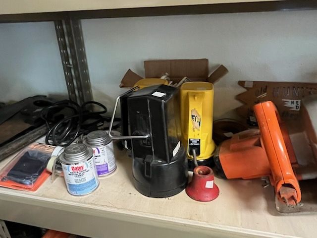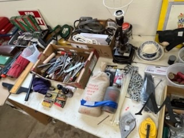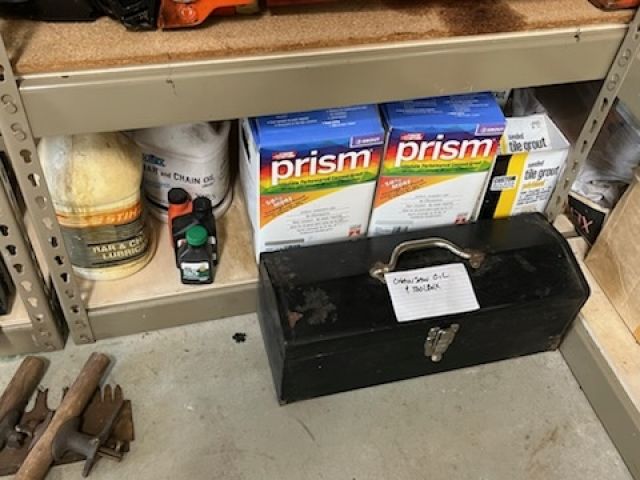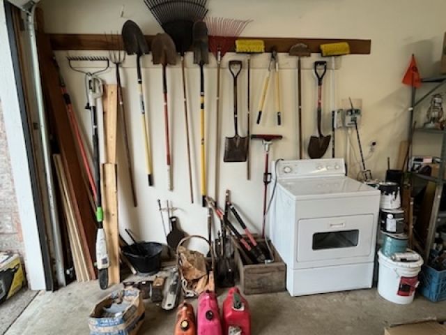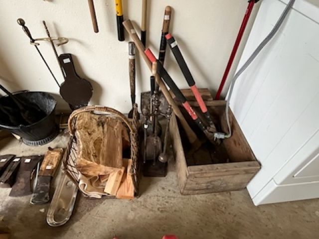 Lots of Fishing Rods, 2 Recurve Archery Bows, Compound Archer Box, Arrows, Loom, Lots of Tools, Ladders, Lawn Mower, Lawn and Garden Tools, Exercise Equipment, Bowflex, Lots of Hardware, Primitives, Snowboarding Helmet, Dart Board, Crab Pots, Kerosene Heater, Bear Rugs, Chainsaws, Pneumatic Tools, Vtg Tennis, Old Saws,