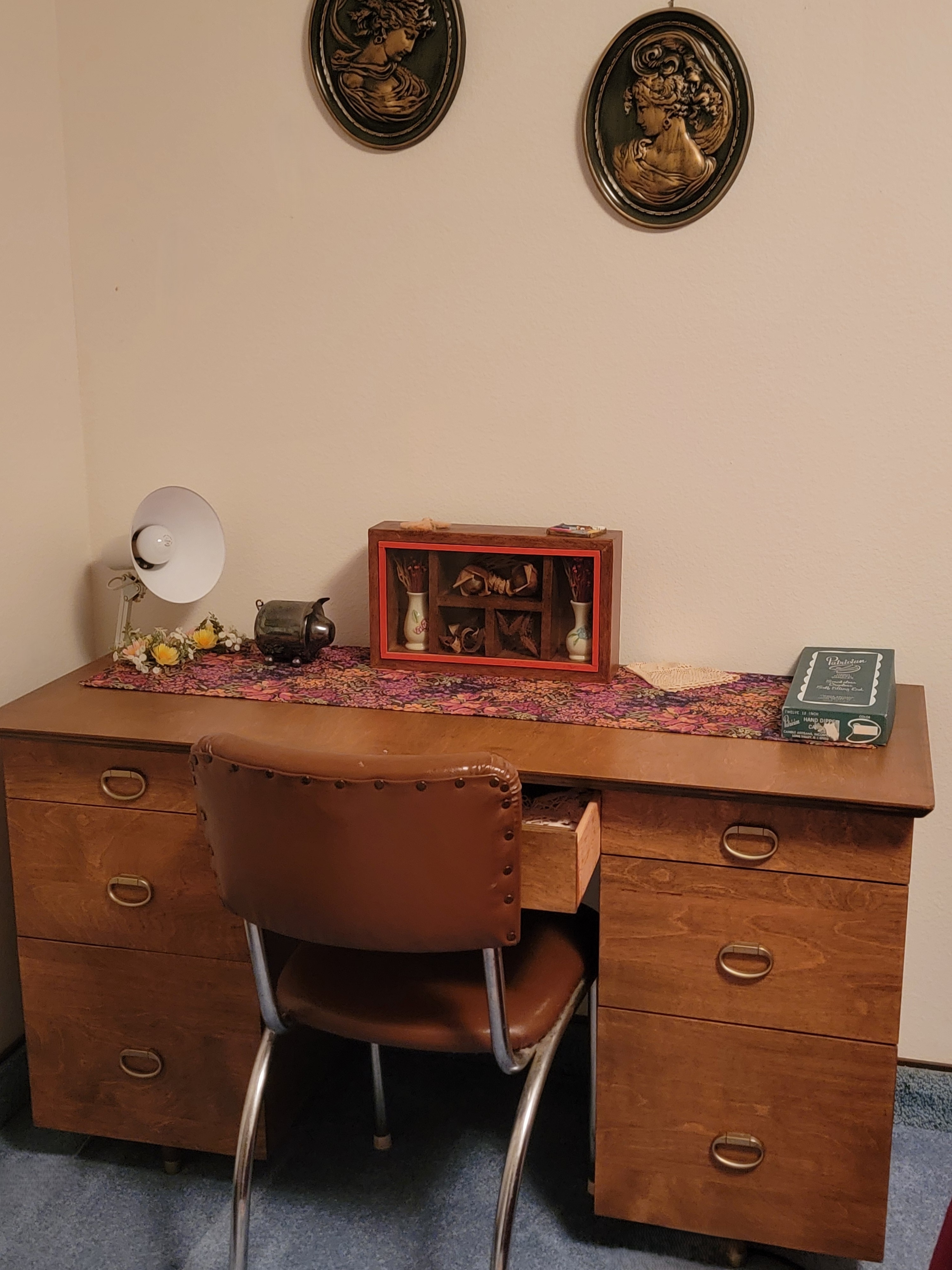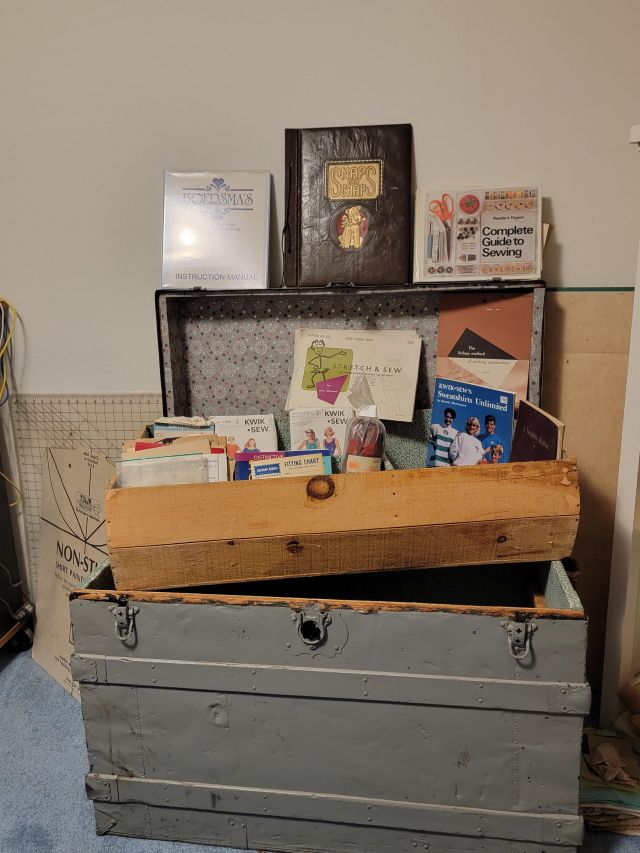 Sewing & Craft supplies - singer sewing machine, sewing table, lots of nice vintage fabrics, & too many other items to list!