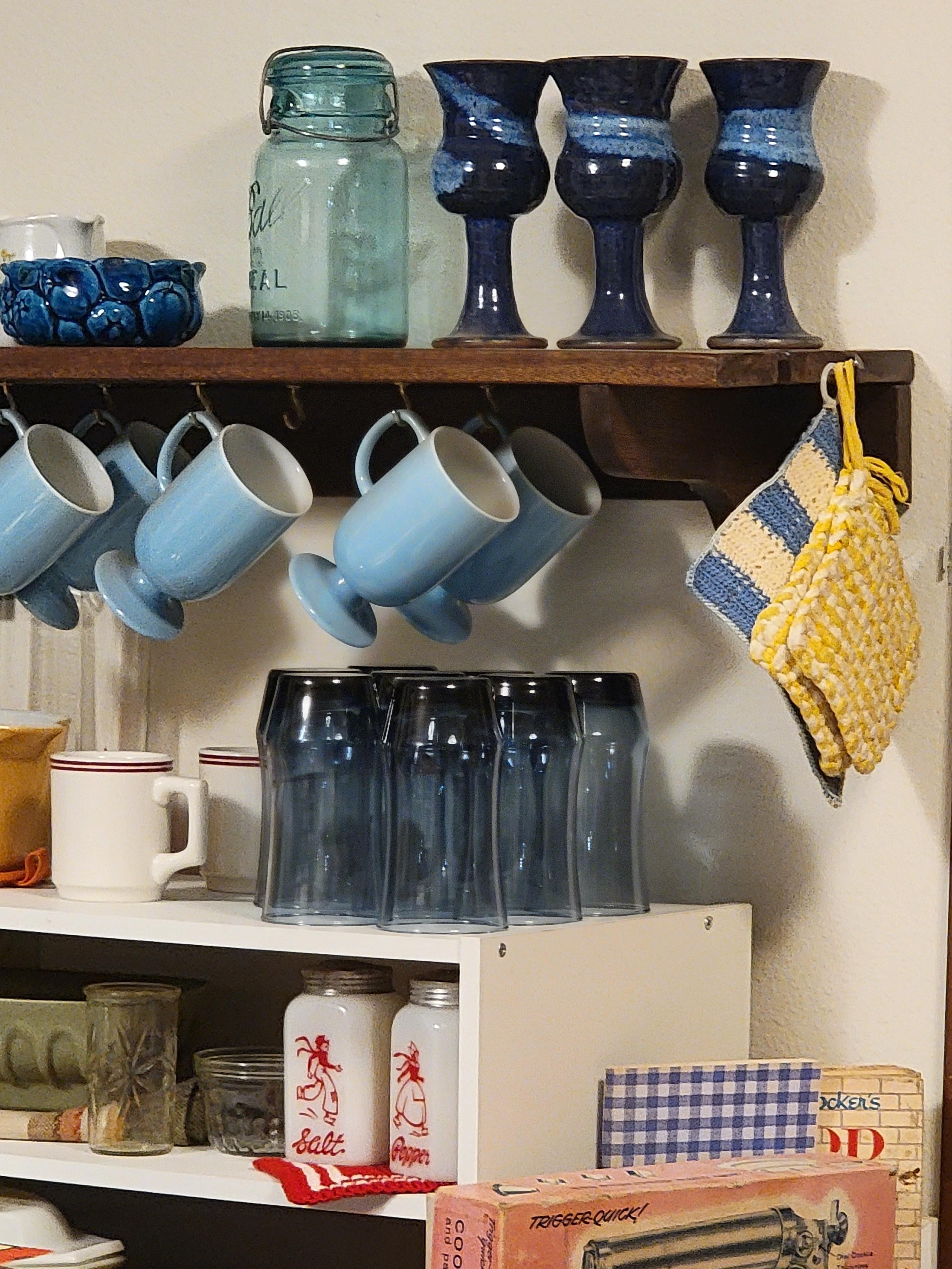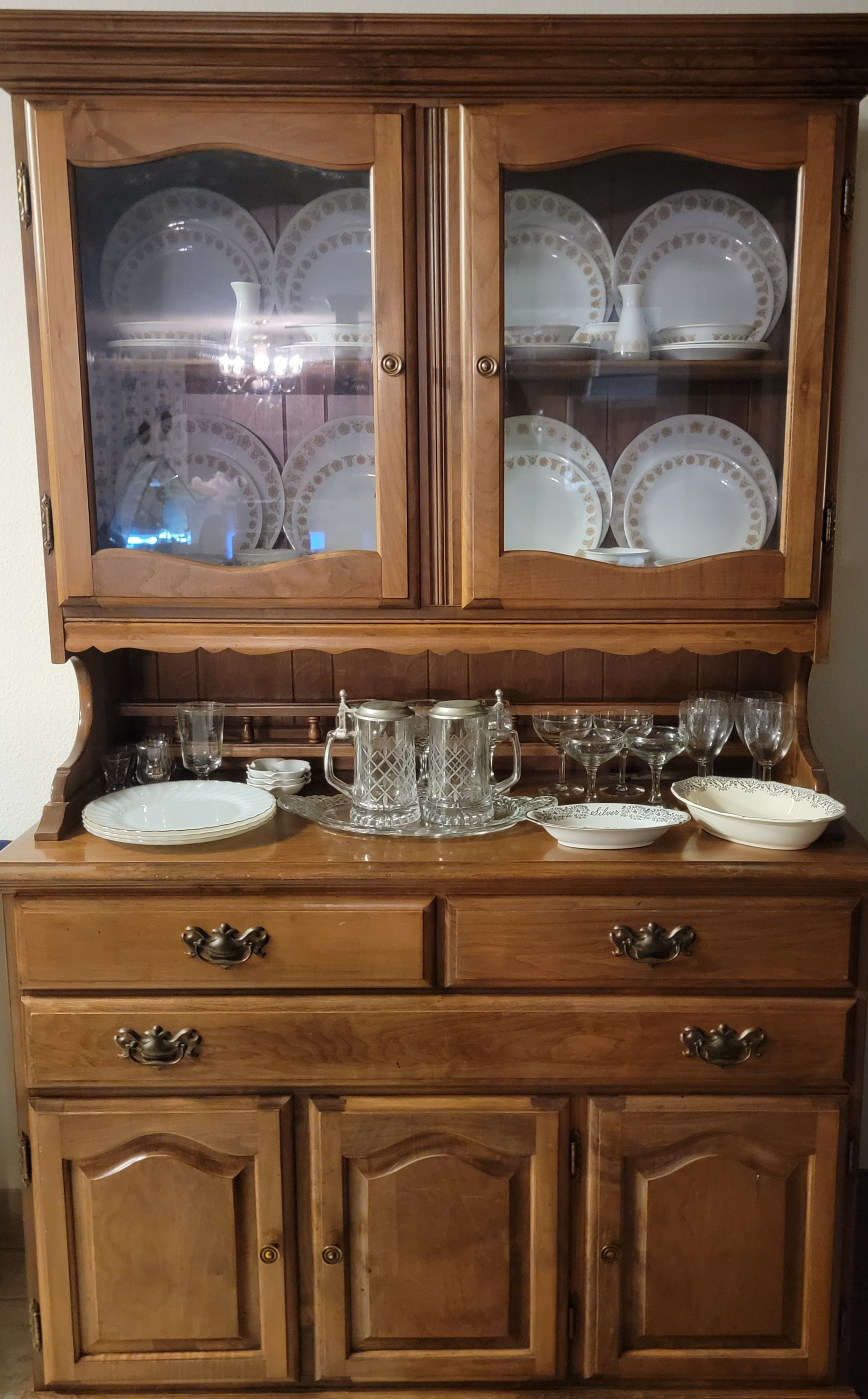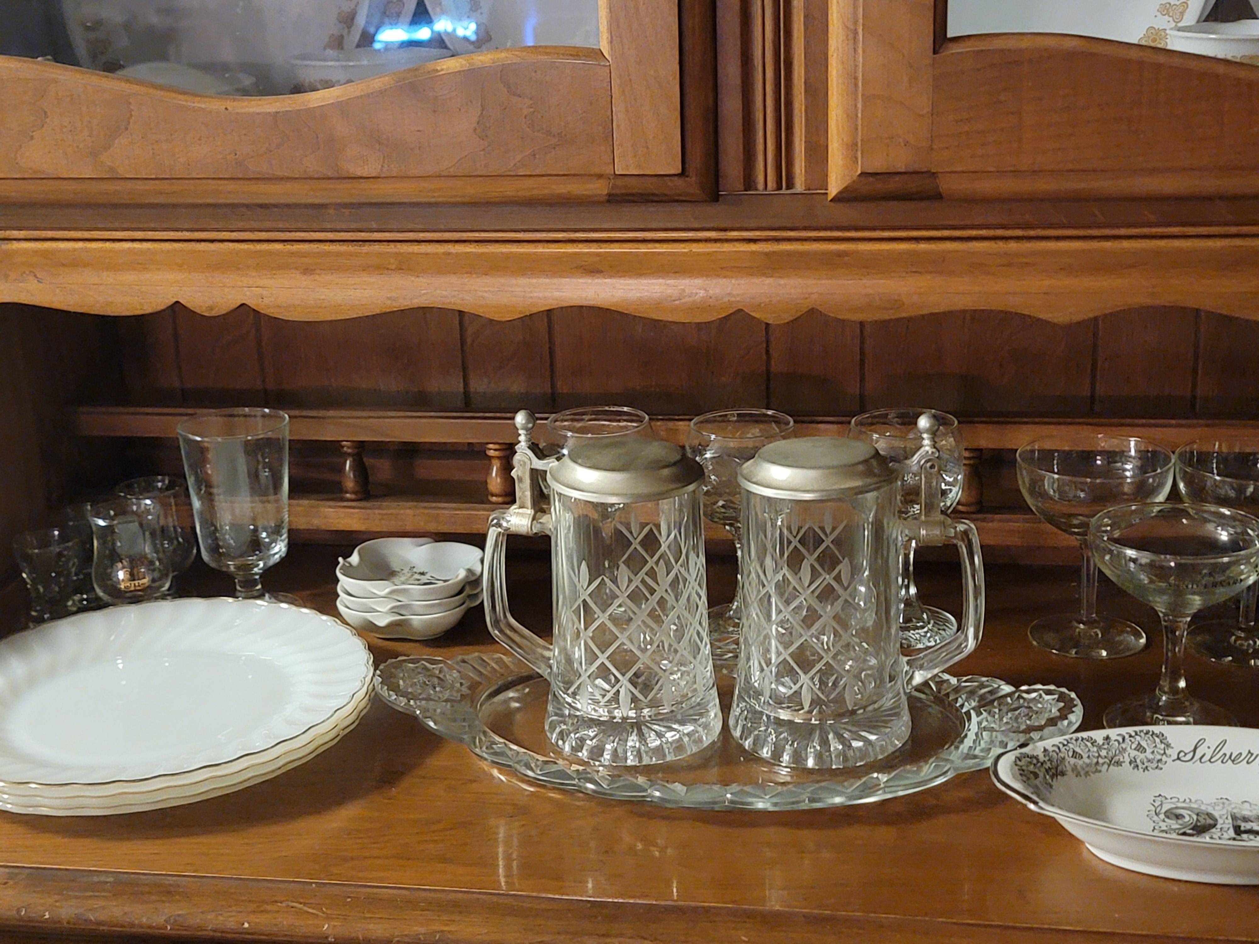 Kitchen items: Small appliances including a KitchenAid mixer, microwave, toaster, pressure cooker, & more. Tableware, Flatware, cutlery, baking items, mixing bowls, Cookware/pots & pans, Fine china, Vintage Corelle Set, PYREX, Dinking glasses/mugs, Vintage crock, Utensils, Gadgets/Gizmos, Table linens, Cookbooks, Tupperware, Coffee Pot, Teapots, Canning, & lots of Decor.