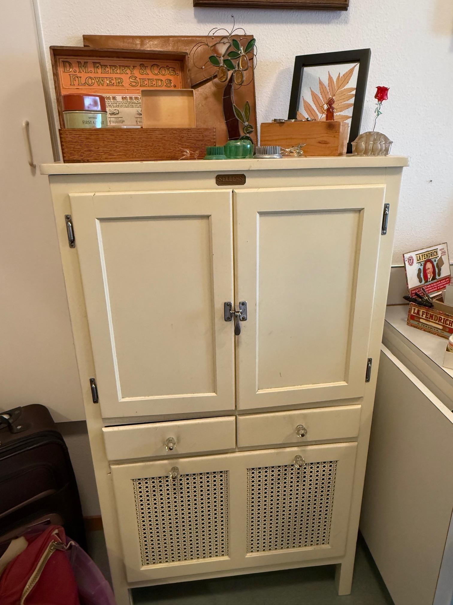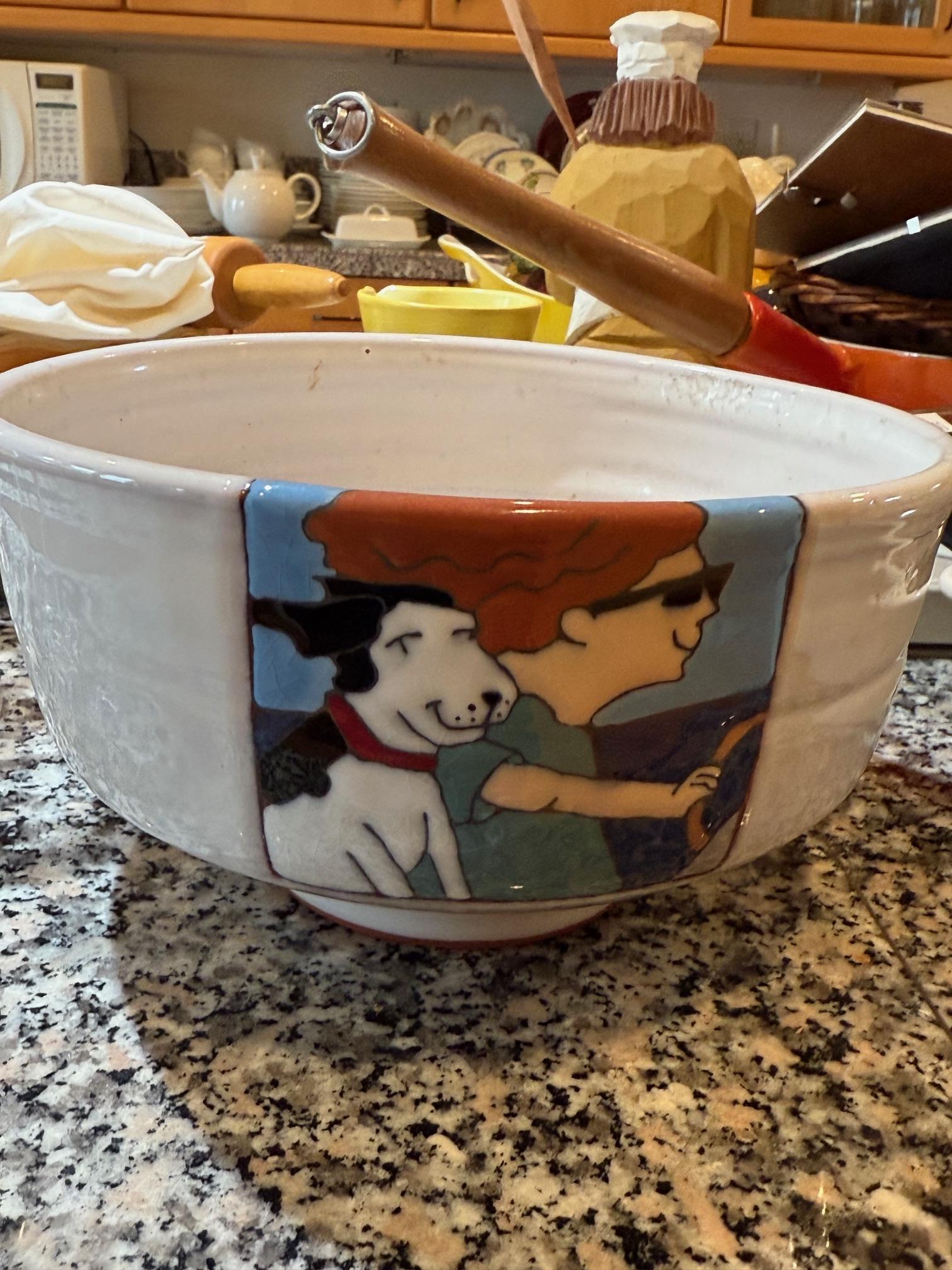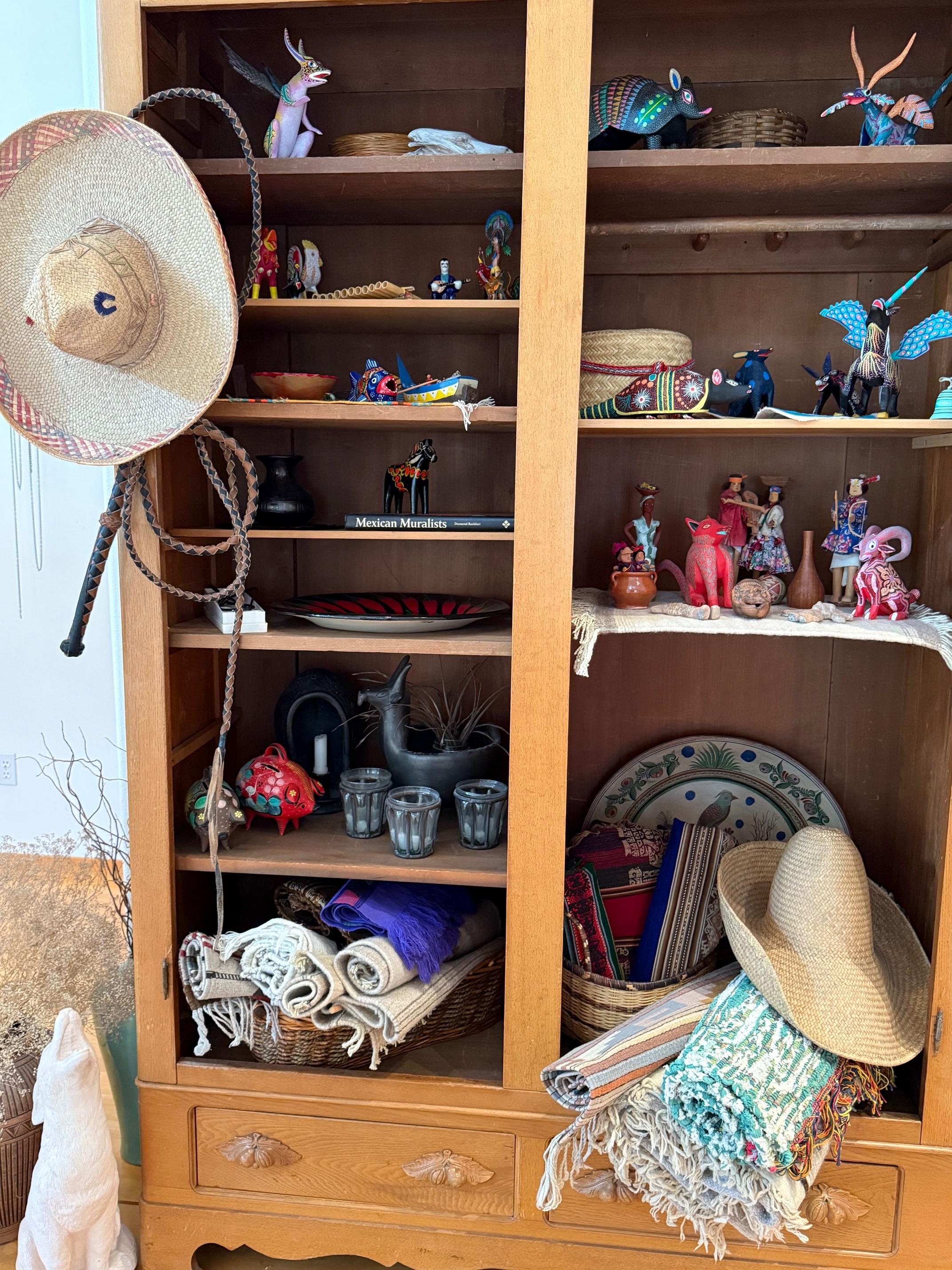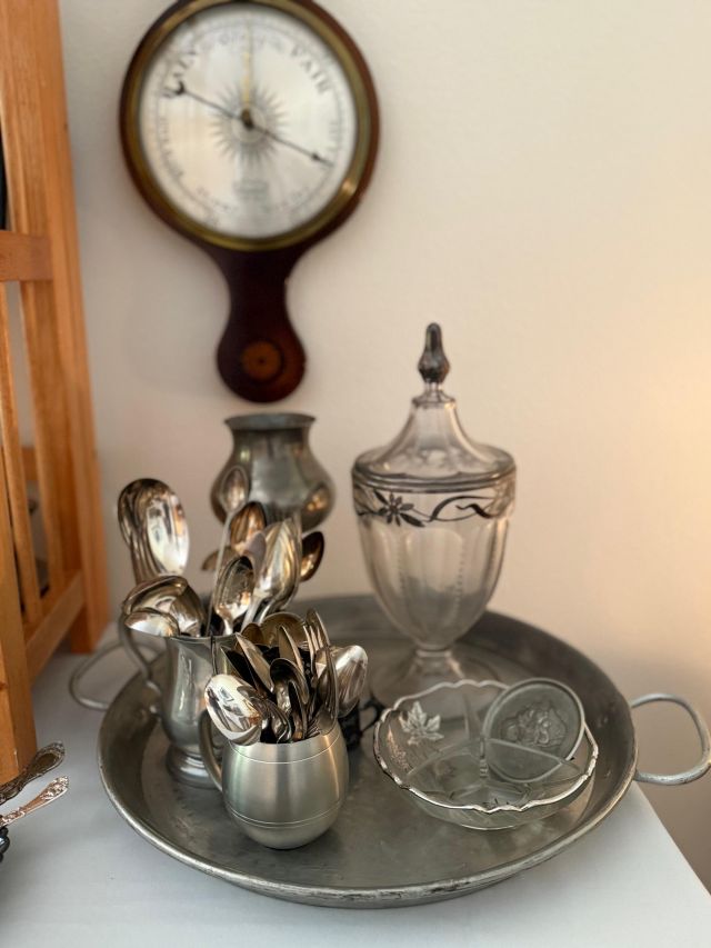 Kitchen is an entertainers dream, pottery, atomic Corning ware. Chopping block.