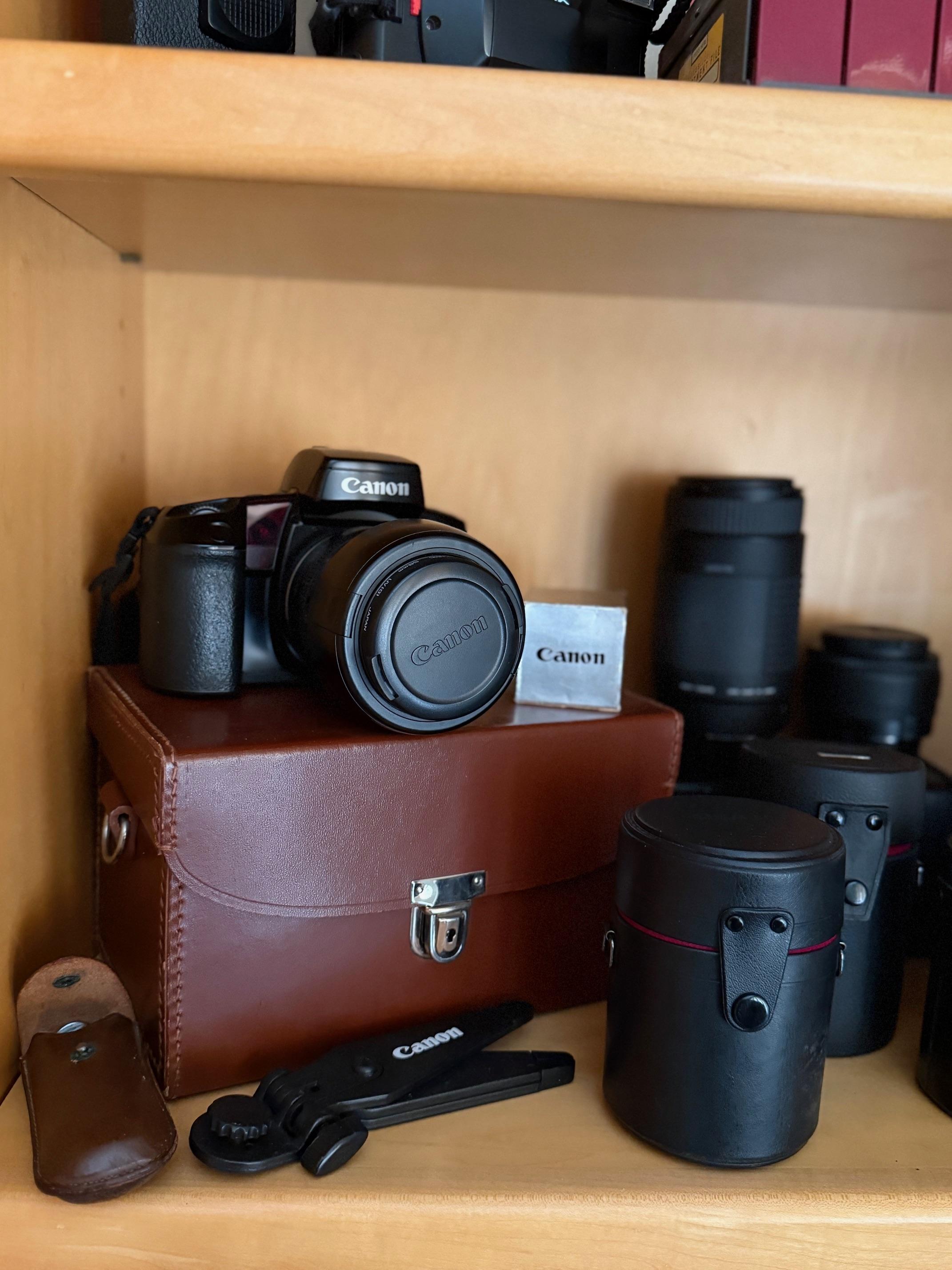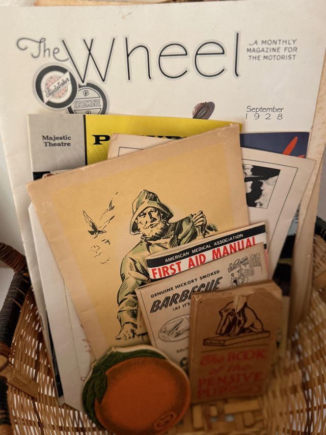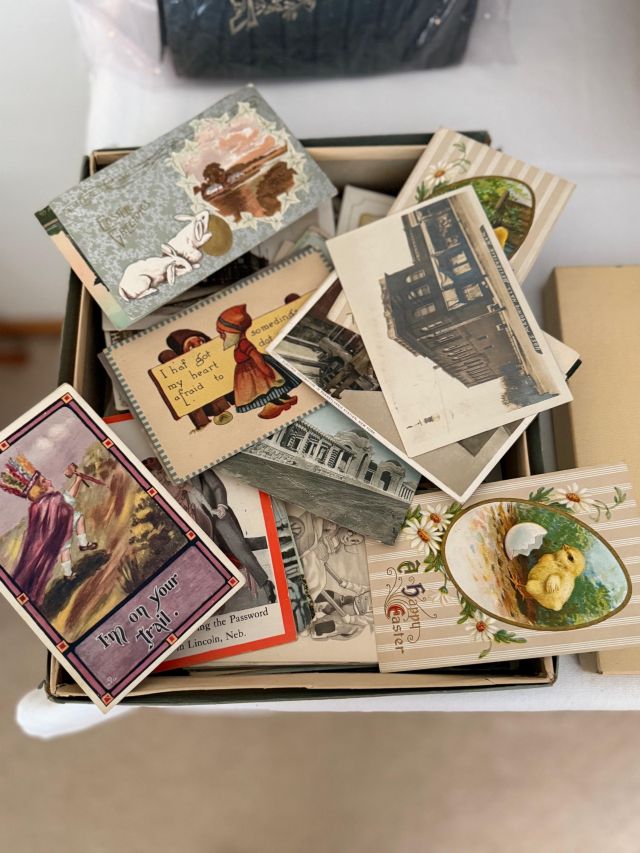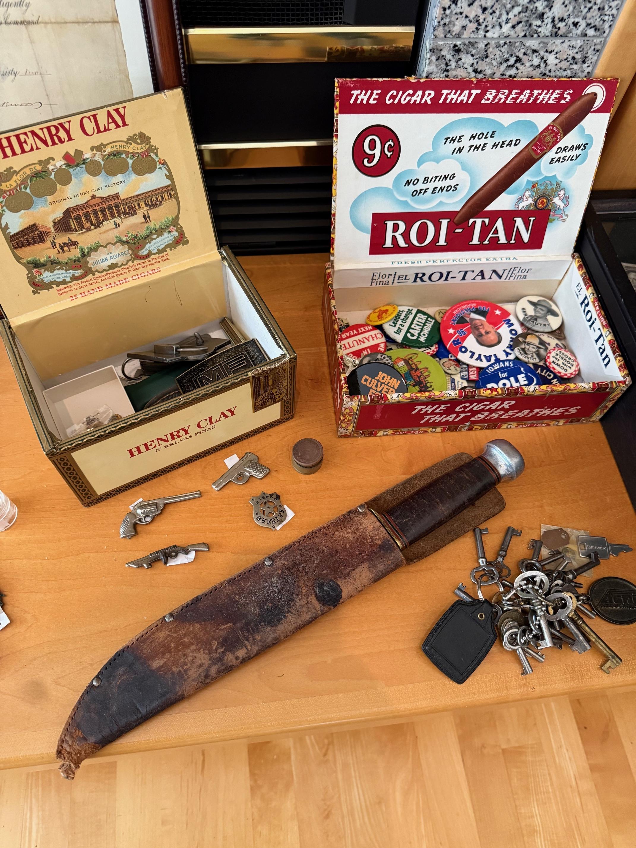 Cameras, Xbox, clocks, ephemera, vintage postcards and advertising. Great knife