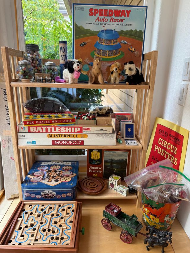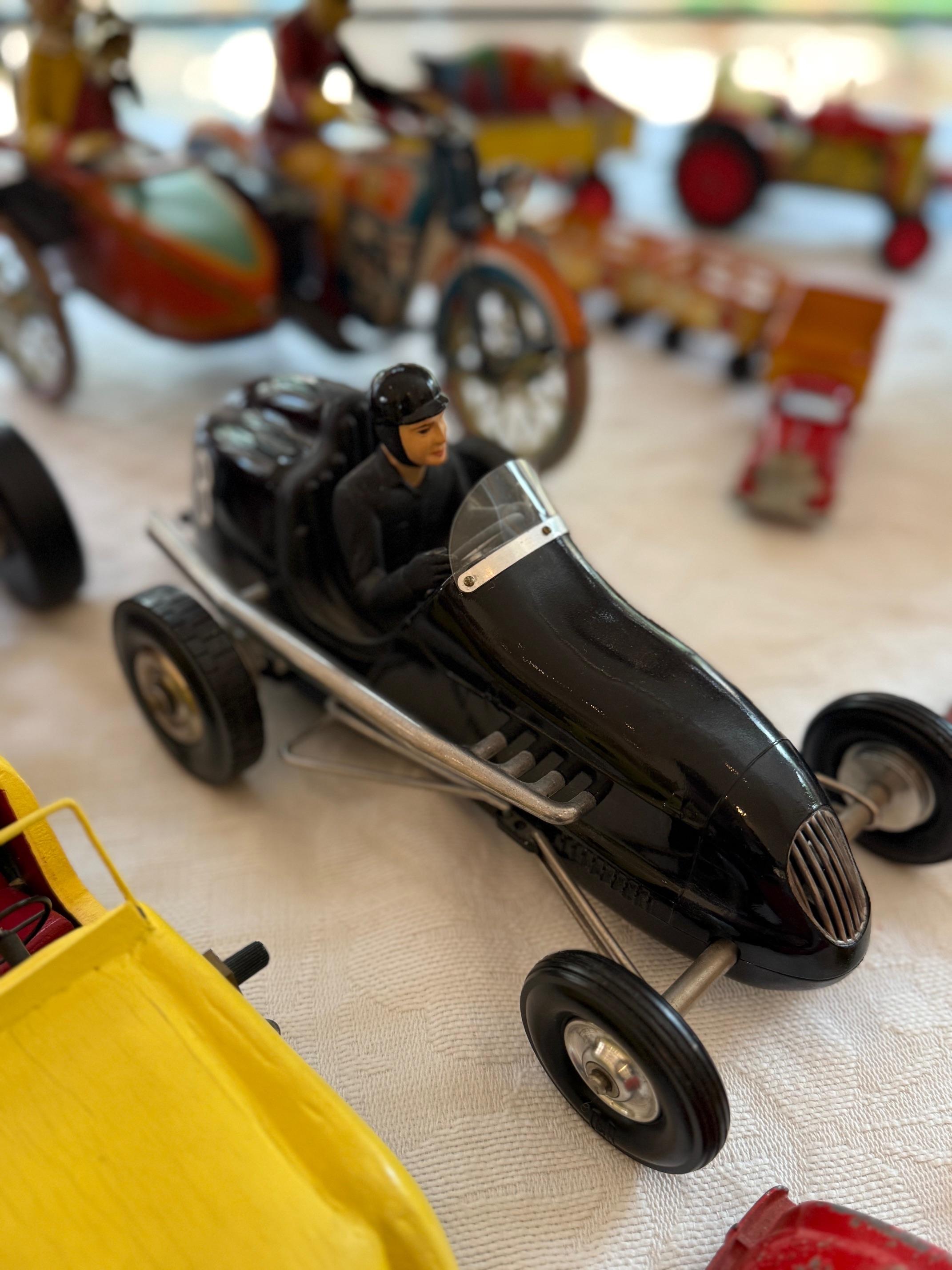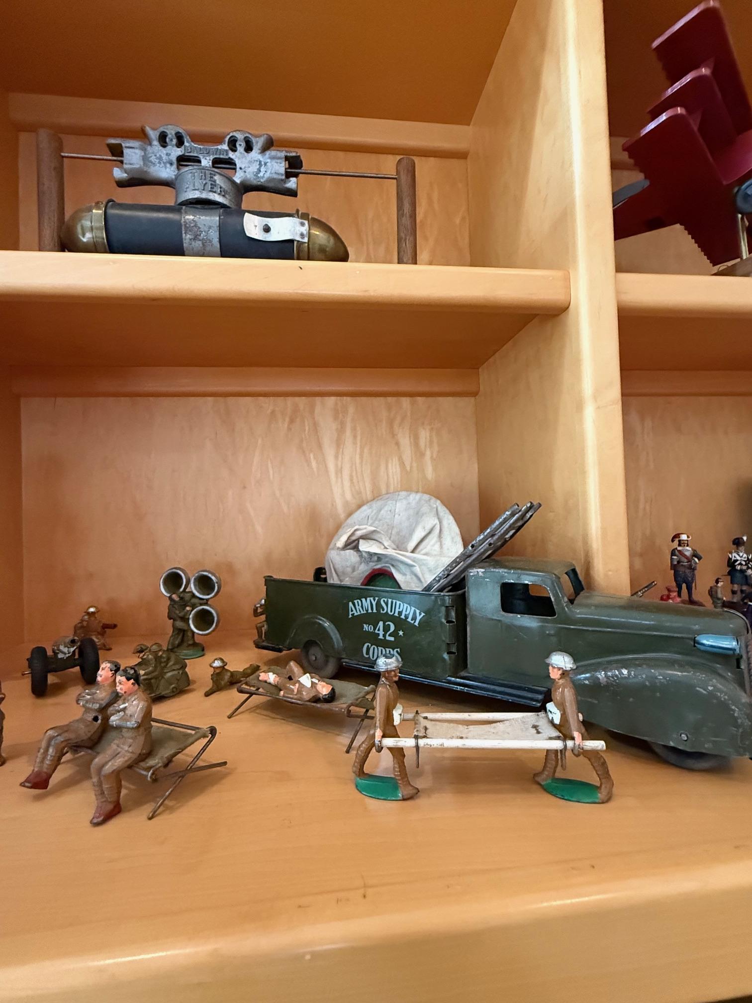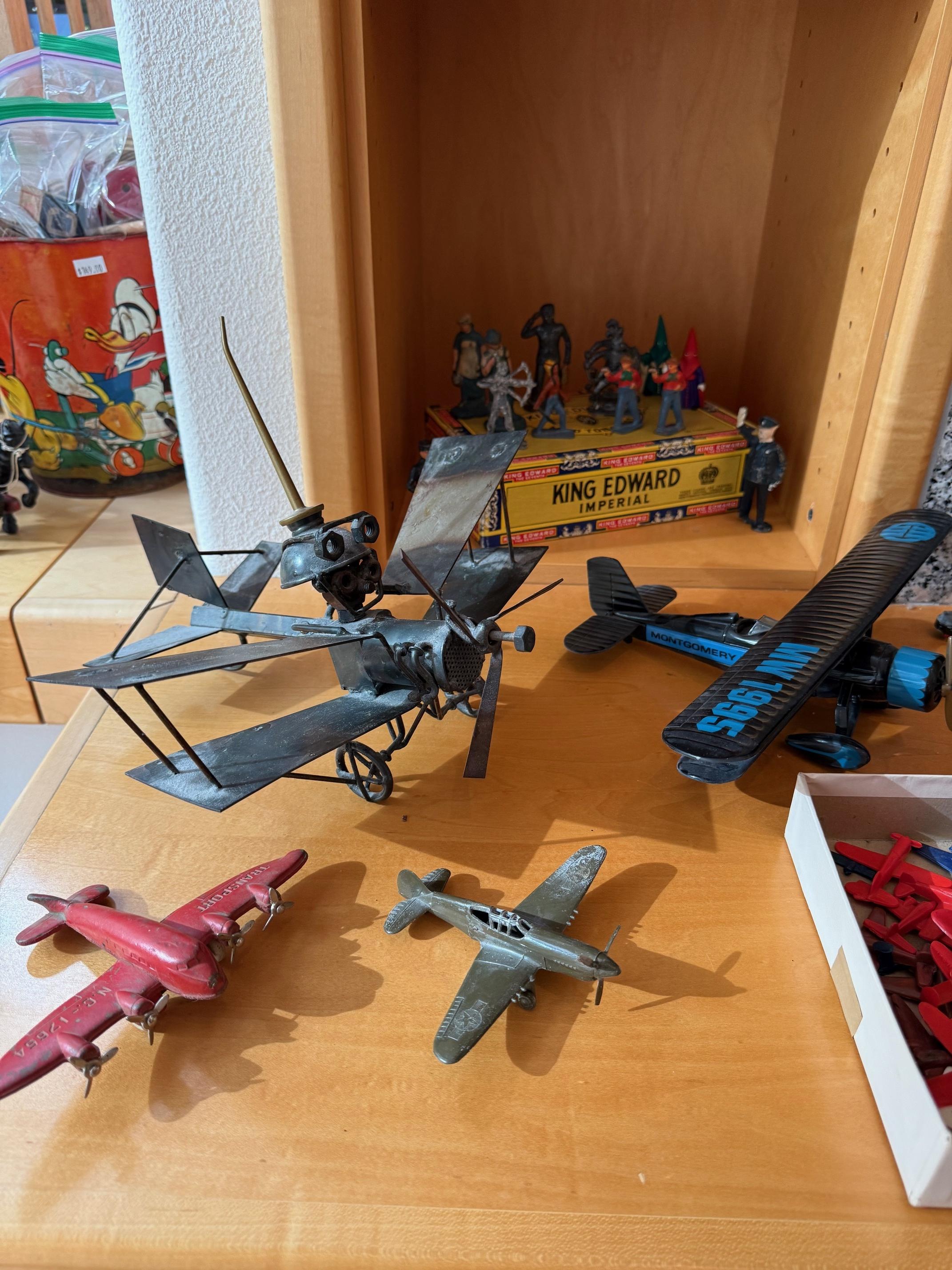 The toys…Cars, planes, models, more cars, Early Disney, tractors and trailers, Massey-Ferguson and John Deere. Gas powered Motors, Original Thimble drome cars!!! Gas powered. Vintage tin, Corgi, Schuco, tin vintage toys.