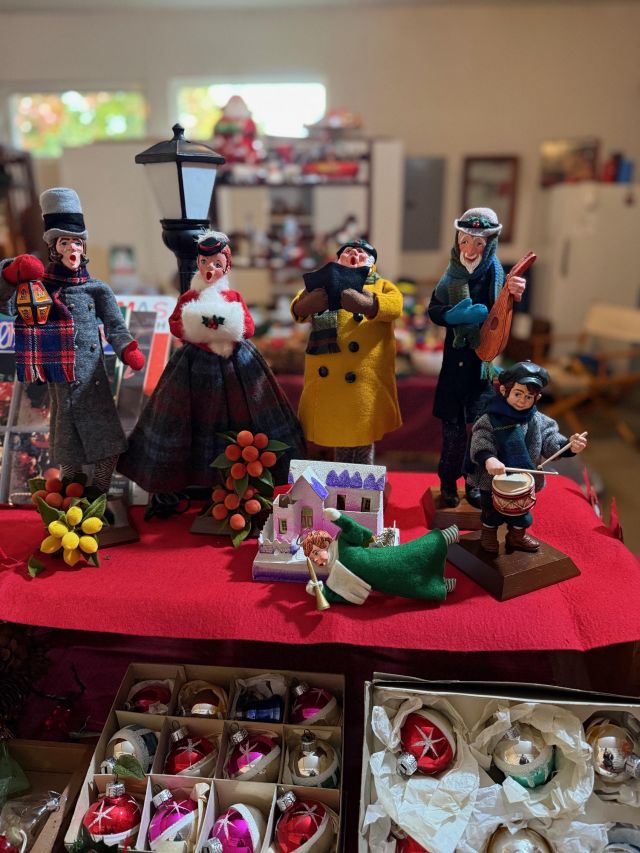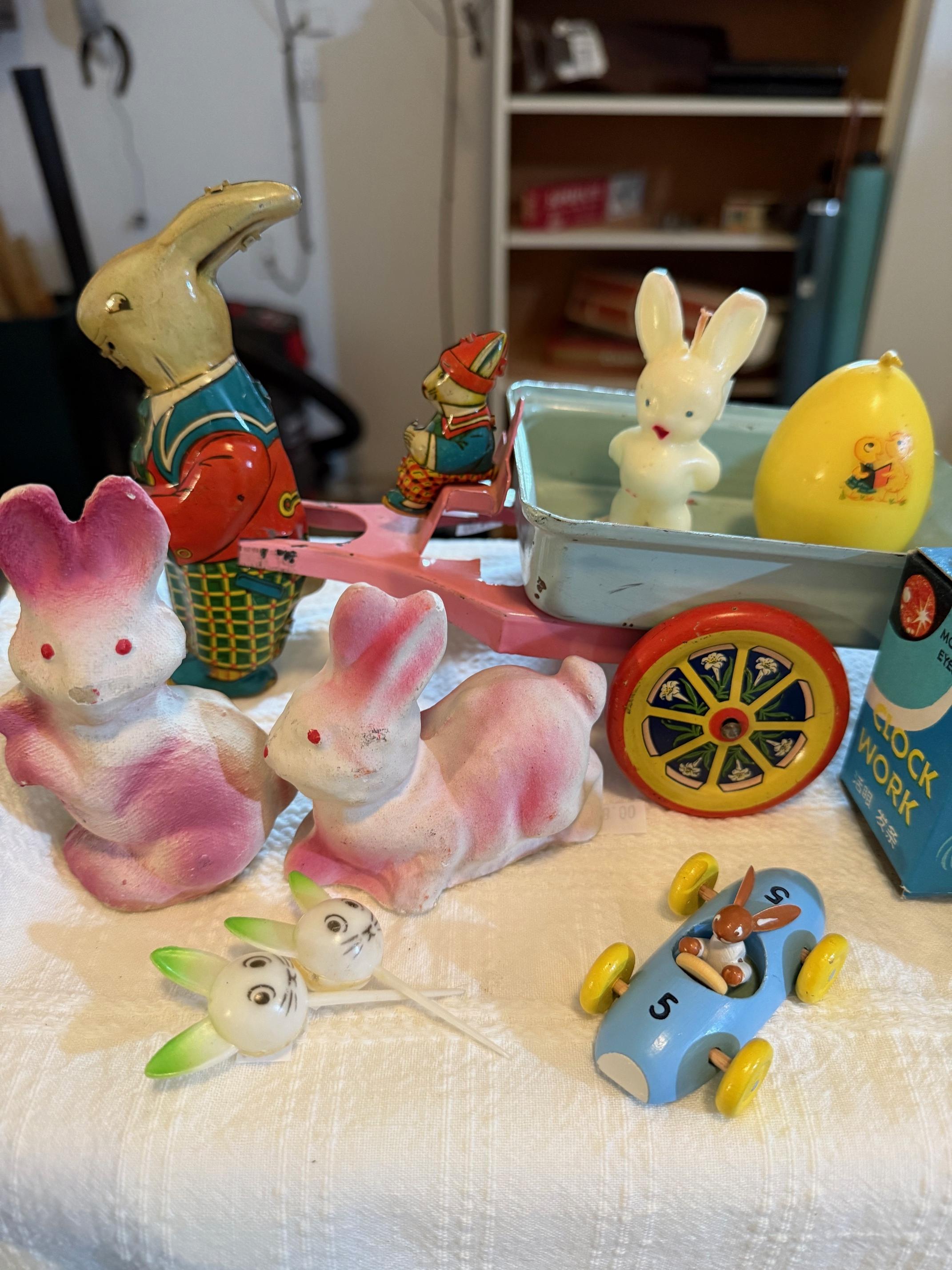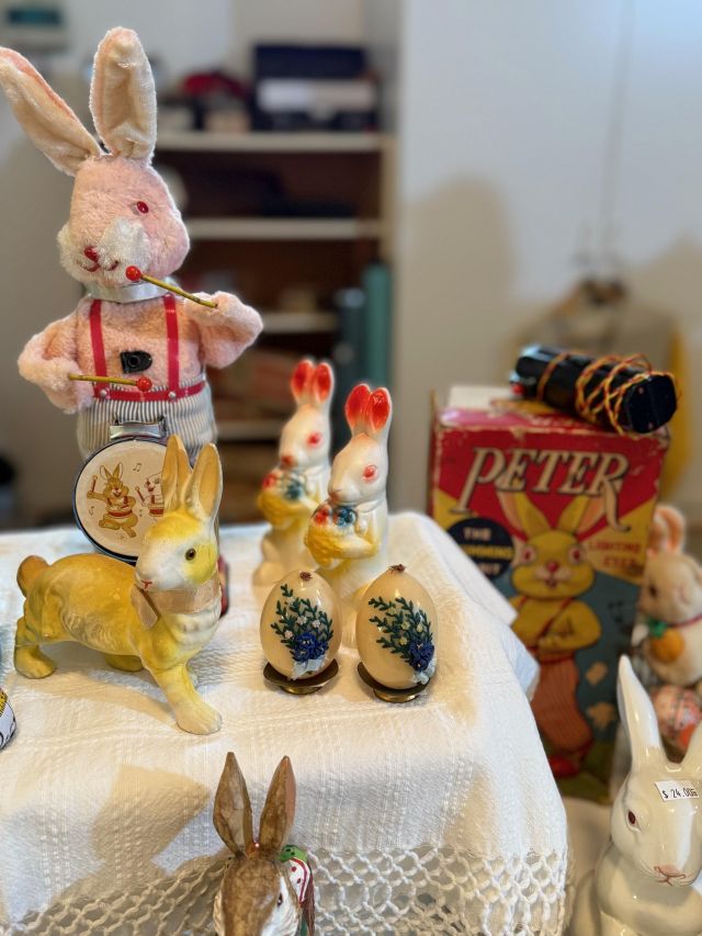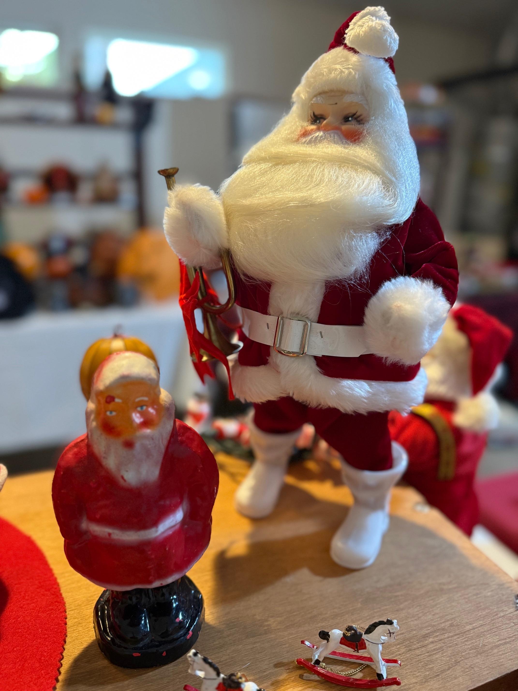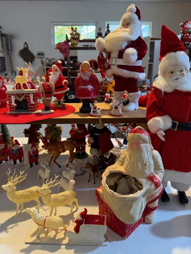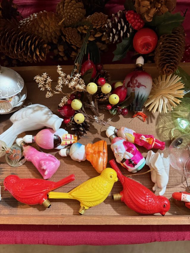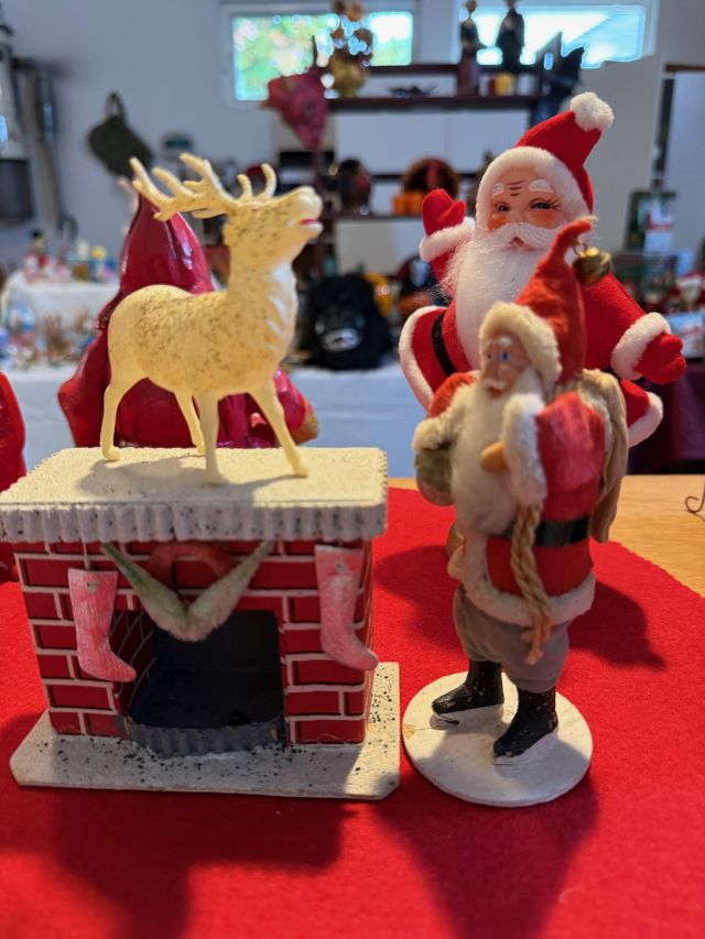 Vintage holiday!! Christmas and Easter. Nutcrackers, smokers, German wooden ornaments, celluloid, shiny brights, zeppelin ornaments.