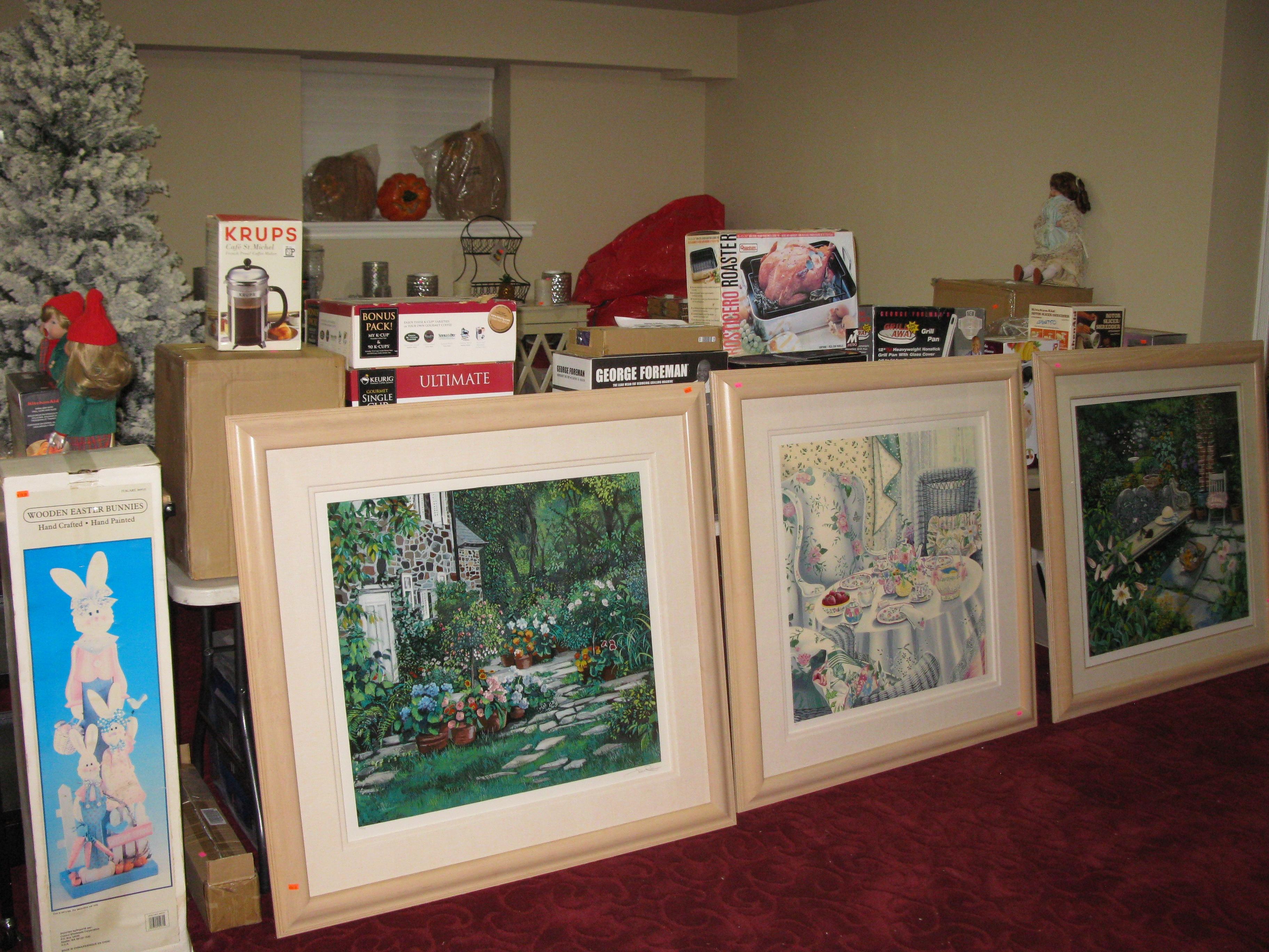 ITEMS INCLUDED IN THIS SALE, 3 HAND GUNS, AMMO, CHRISTMAS ITEMS, BED & BATH ITEMS, KITCHEN ITEMS, PATIO FURNITURE, BED ROOM FURNITURE, ART, STORAGE ITEMS, CLOTHING, SHOES, COATS, HAND BAGS DOONEY & BOURKE PLUS MORE, LIVING ROOM FURNITURE, STERLING SILVER RINGS, TOOLS, TEMPTATIONS KITCHEN ITEMS, ANTIQUES AND COLLECTIBLES AND MORE!
