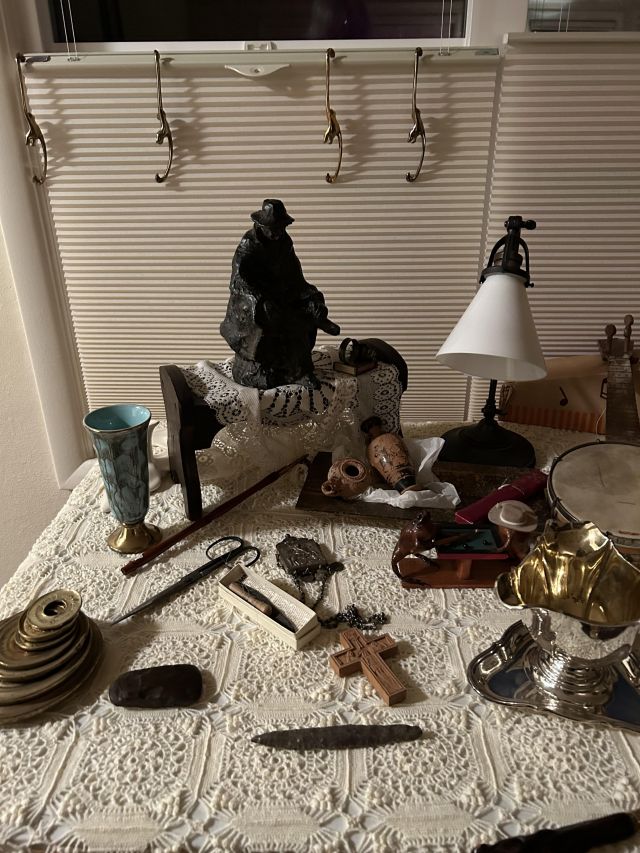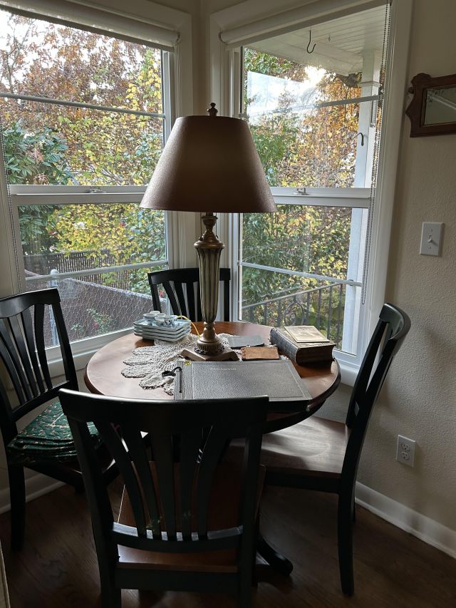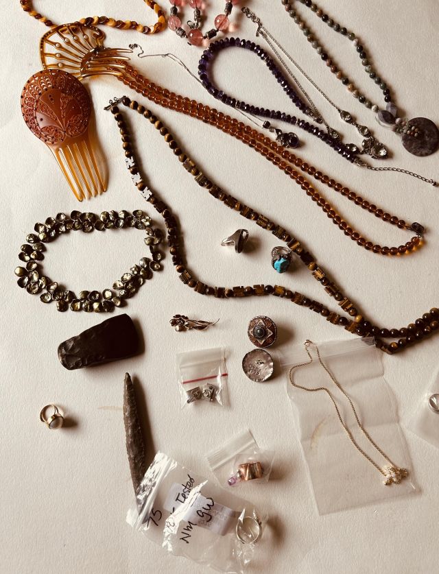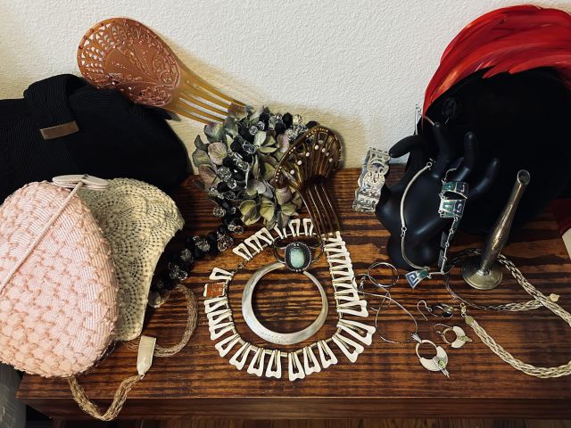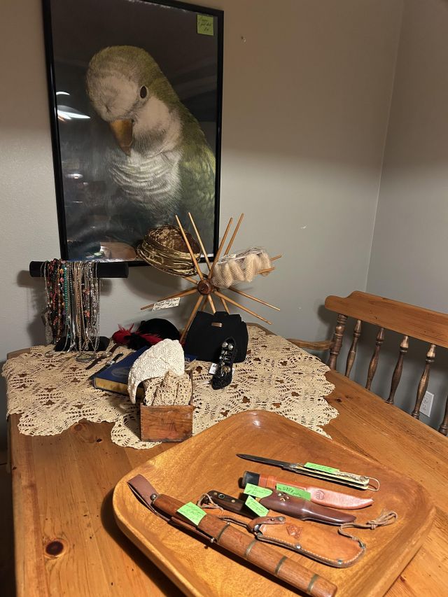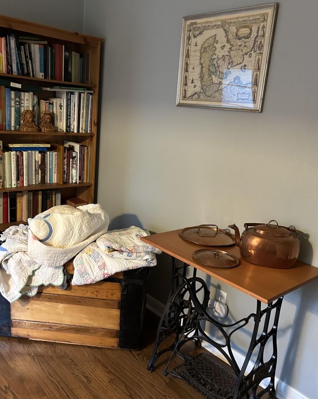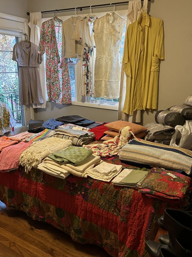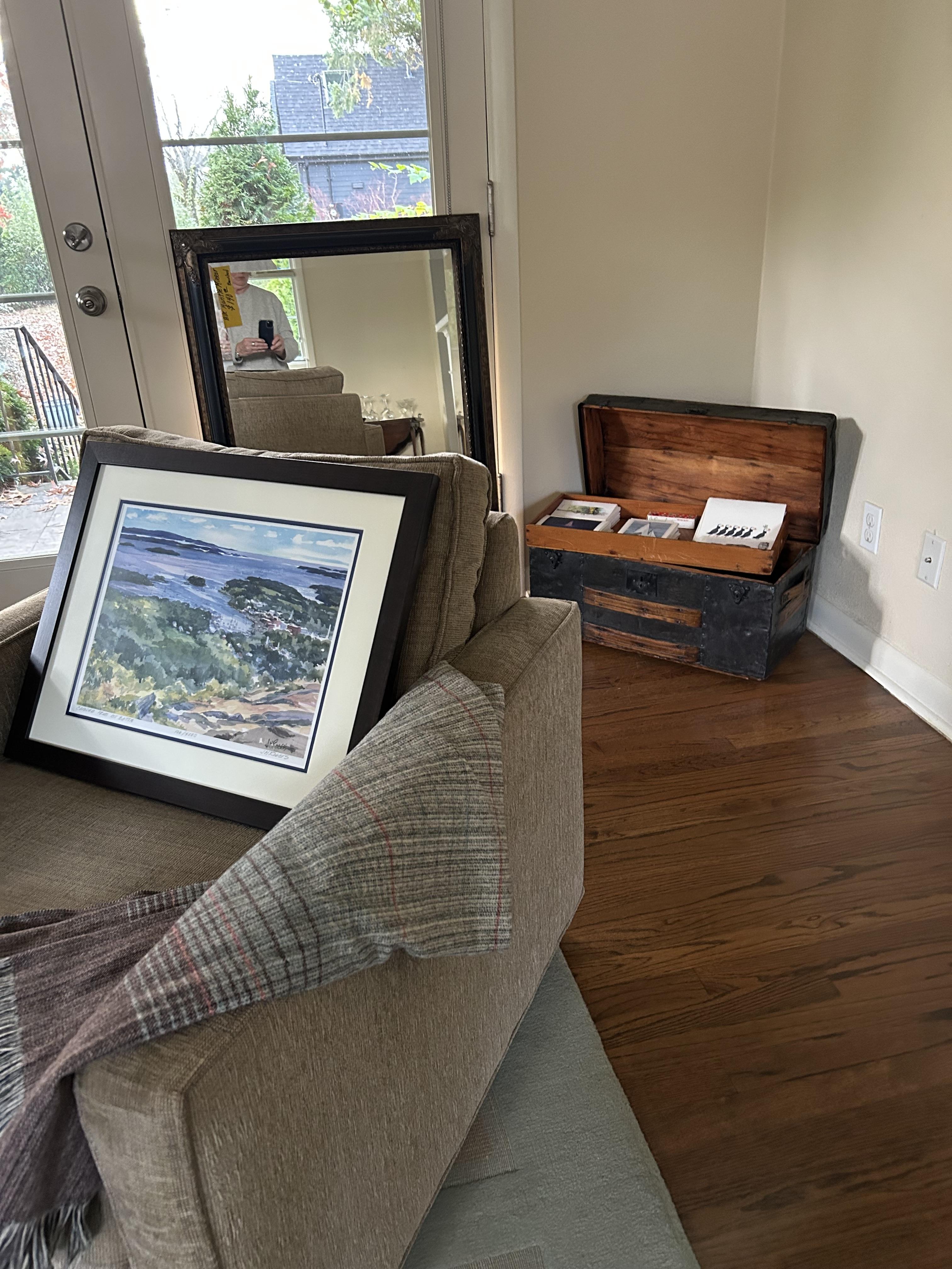 The cottage is tucked away holding its treasures that include MCM delights. The ephemeral is fabulous but must be shown carefully- truly fragile ship's menus, ( owners owned a fabulous restaurant and were well travelled ) Many items and art from Sweden including the old Royal Maritime 9' flag. Books include colorful collections, artifacts in cases flint knife, Greek artifacts, lovely vintage clothing and art galore. Of course there are great items for everyday - LG washer and dryer, nice smaller micro wave and like new lawn mower, lasers and tools.