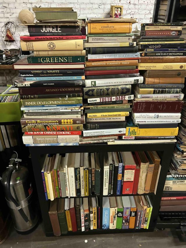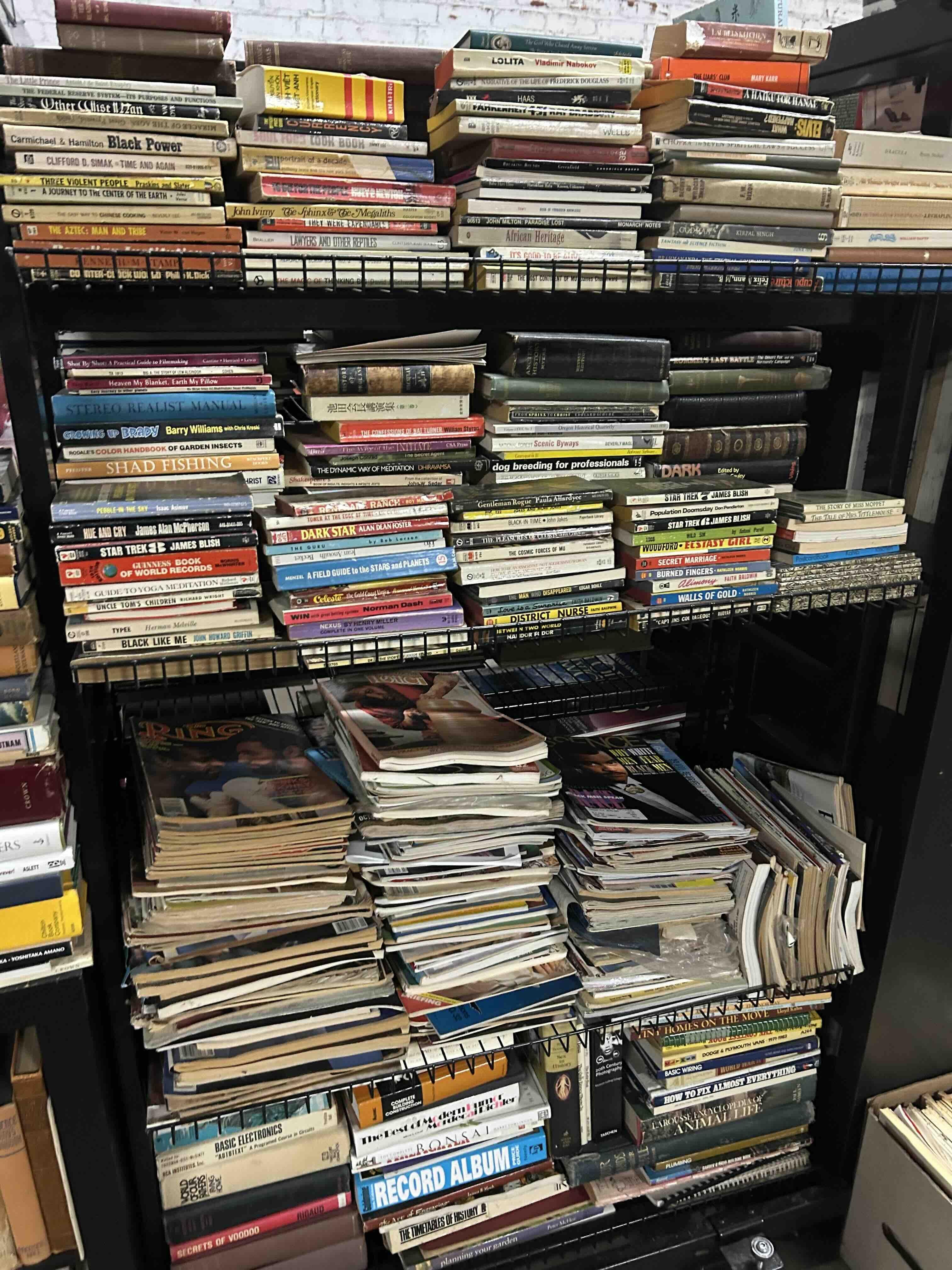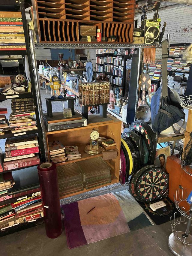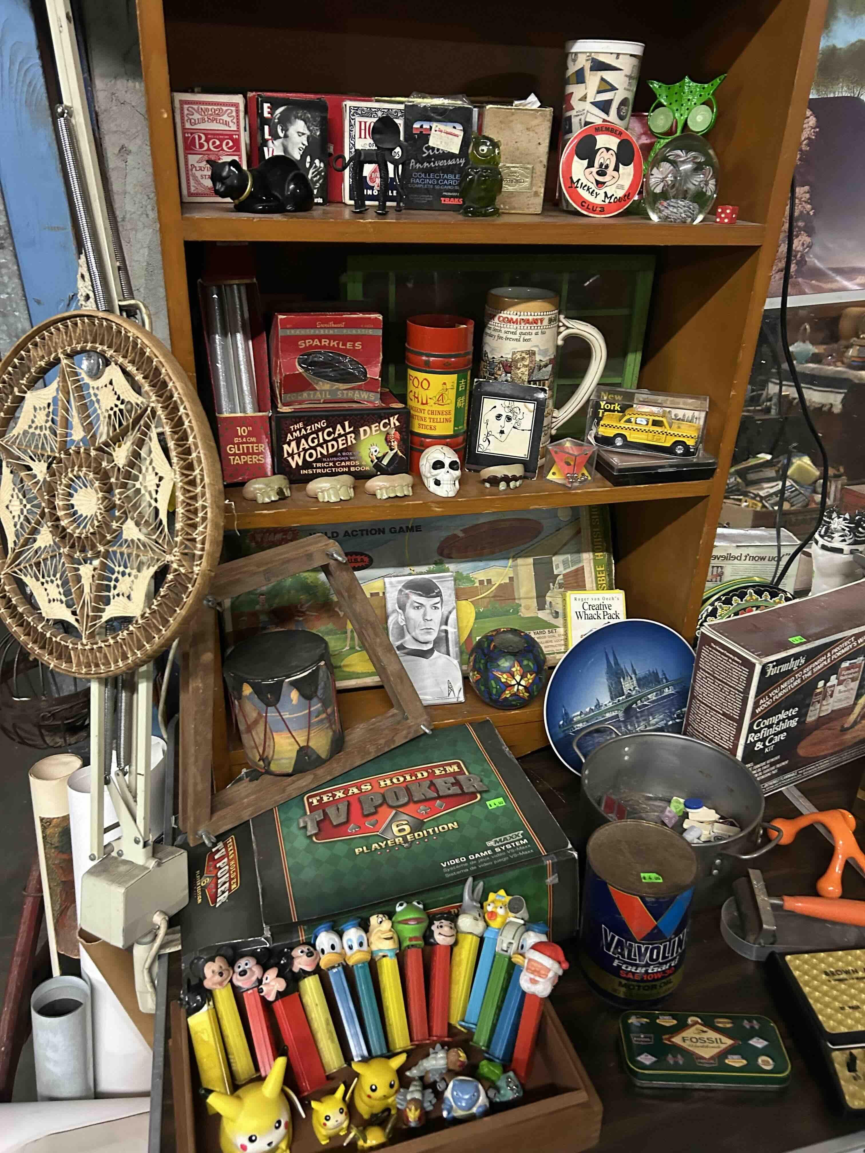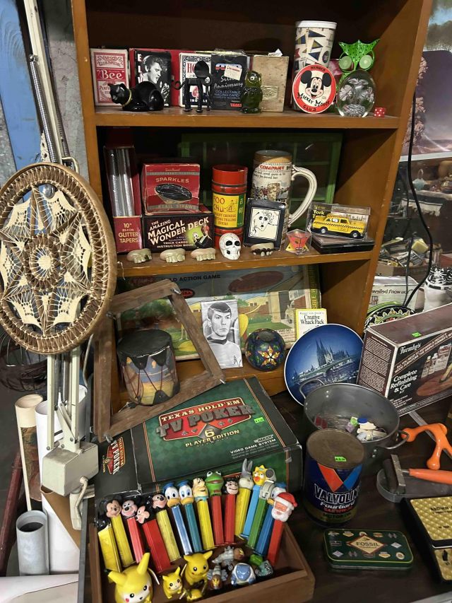 VINTAGE FURNITURE, CHAIRS, ANTIQUES, FRAMED ART, POSTERS, SPORTS MEMORABILIA + EQUIPMENT, FRISBEES, VINTAGE POSTCARDS, VINTAGE TOYS + BARBIES, THOUSANDS OF BOOKS + MAGAZINES (MANY RARE AND COLLECTABLE) + VINTAGE EROTICA.