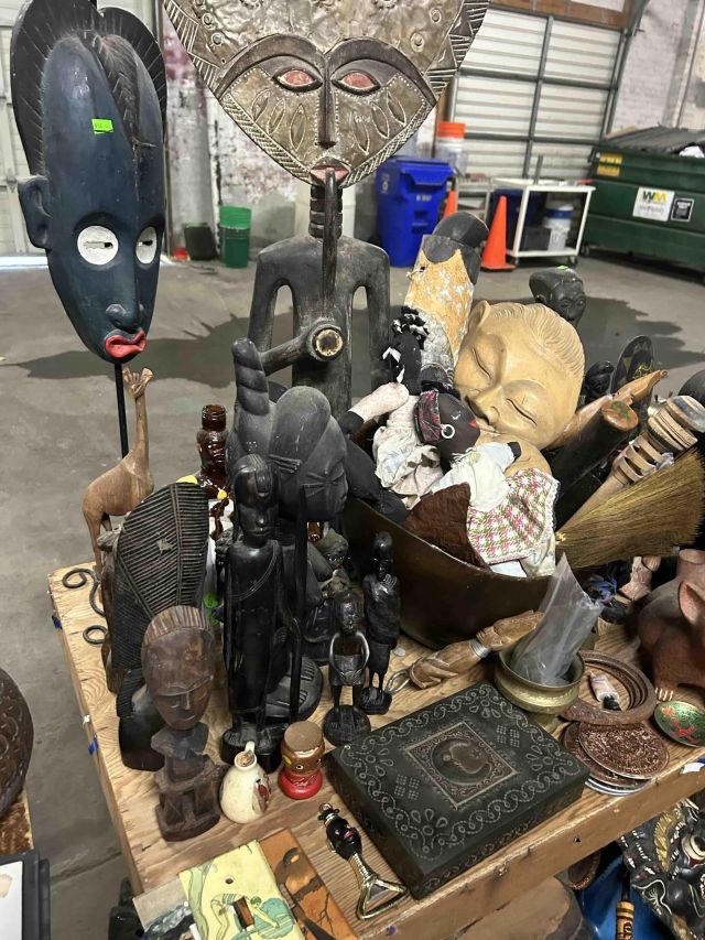 AFRICAN + ETHNIC ART + MASKS, VINTAGE HOUSEWARES, LIGHTING, LAMPS, ARCITECTURAL FIXTURES, GEMSTONES, JEWELRY, AND KITCHEN EQUIPMENT.
