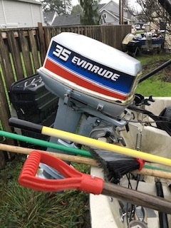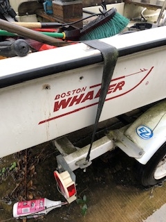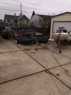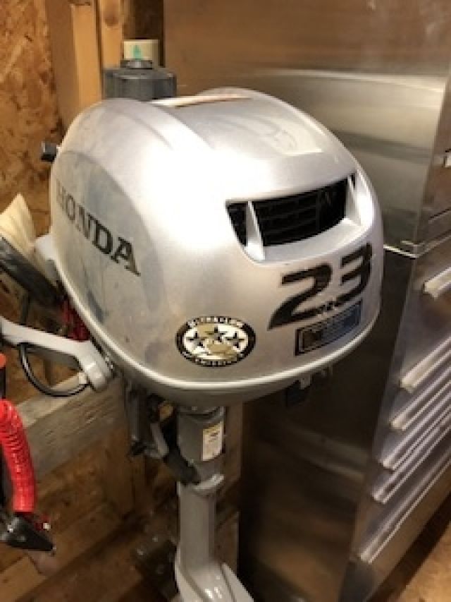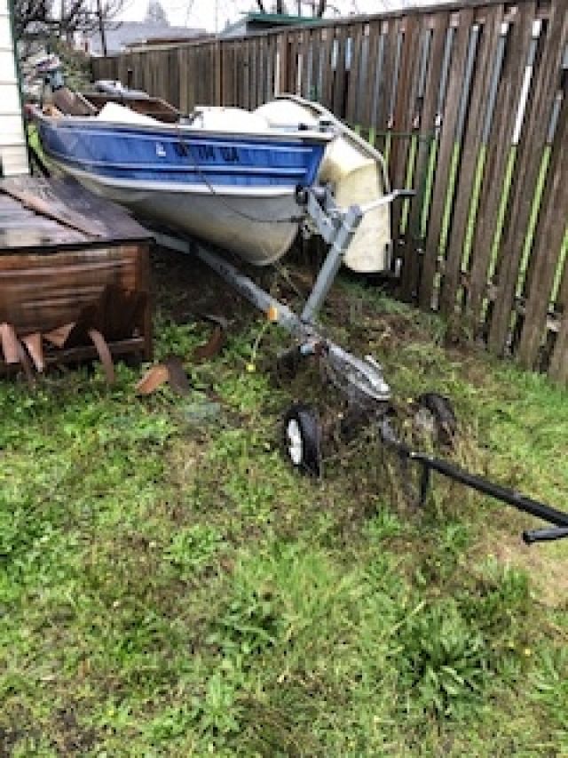 FLATBED TRAILER, LEHR 5 PROPANE BOAT MOTOR, HONDA 2.3 MOTOR