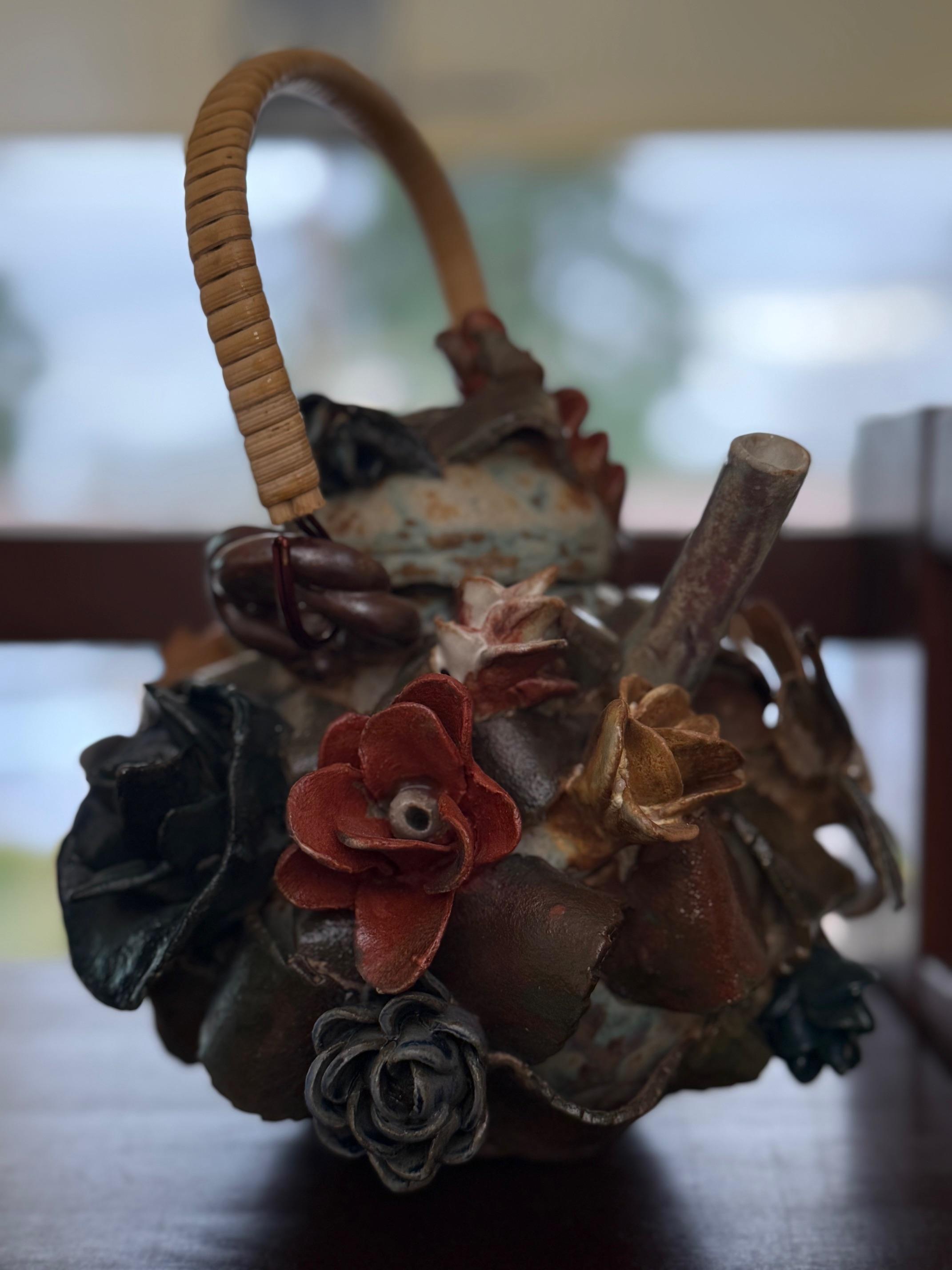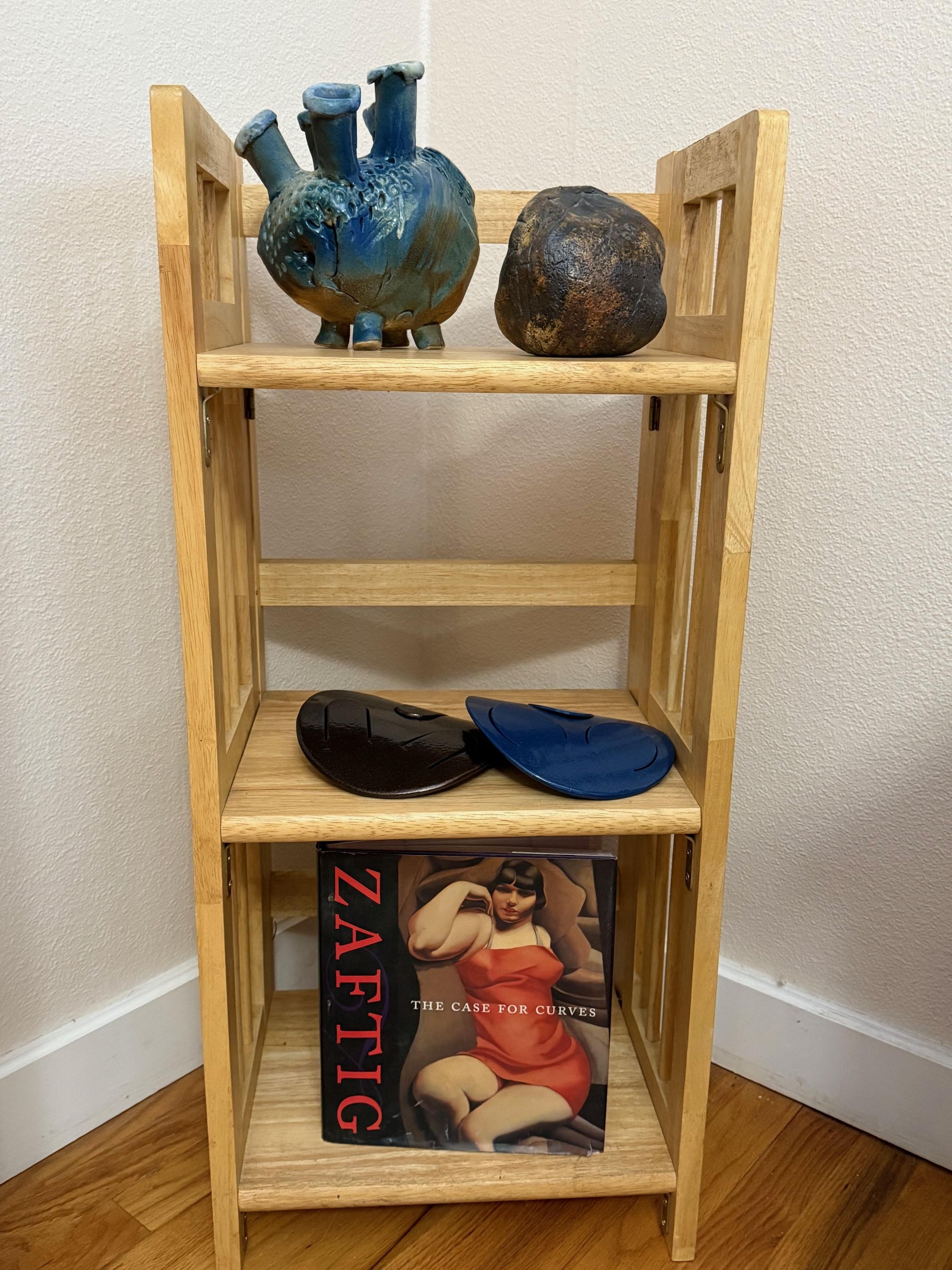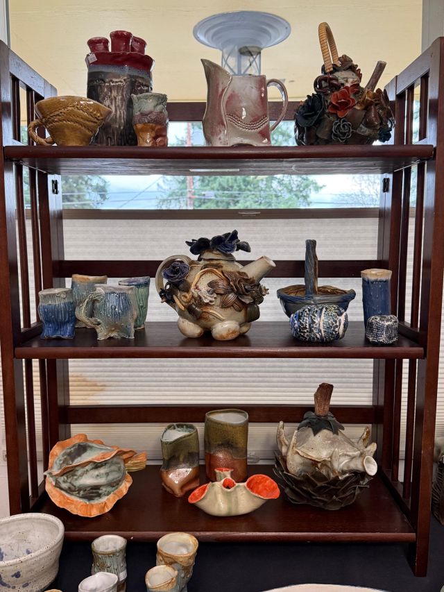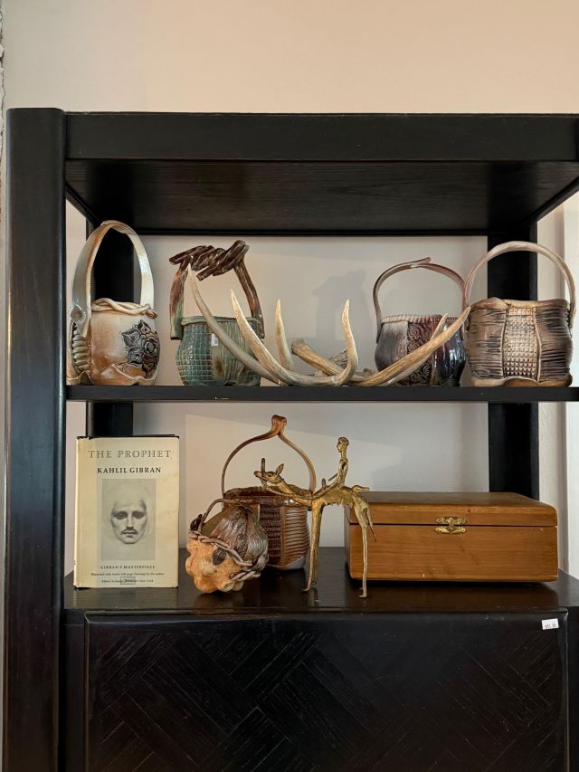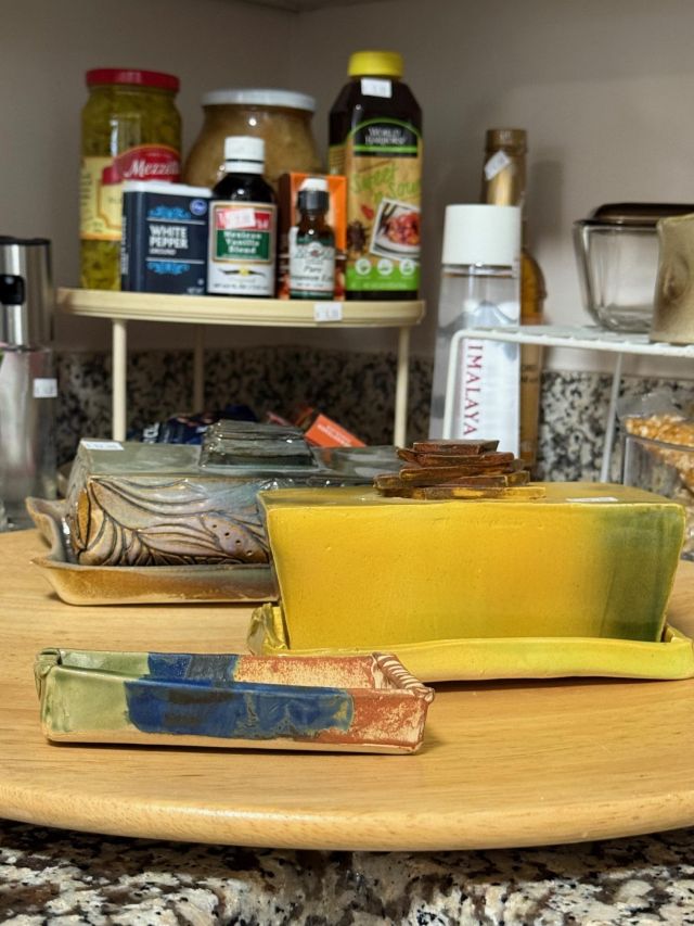 Tongue drum collection. Colorful and the sounds are amazing. Large and small. Stunning xylophone …with stand. Pottery to surround it all. Accomplished potter left loads of pieces and variety.