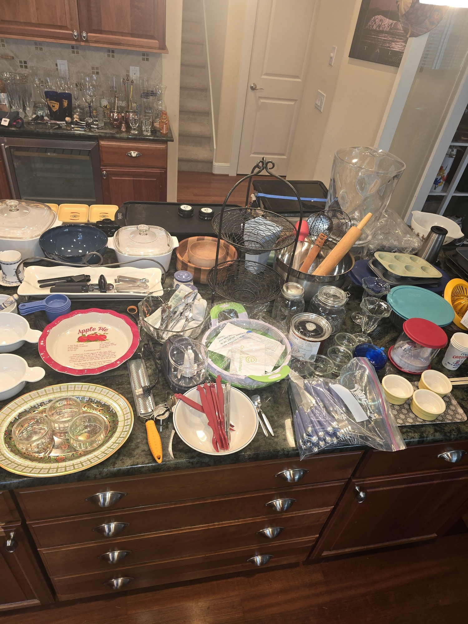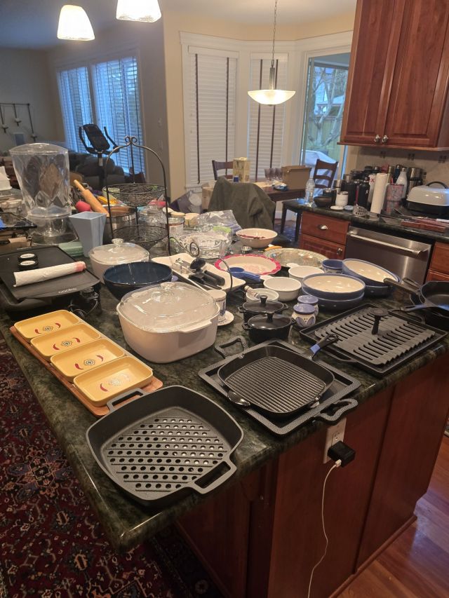 pressure cookers, cast iron, PYREX, barware, pots and pans