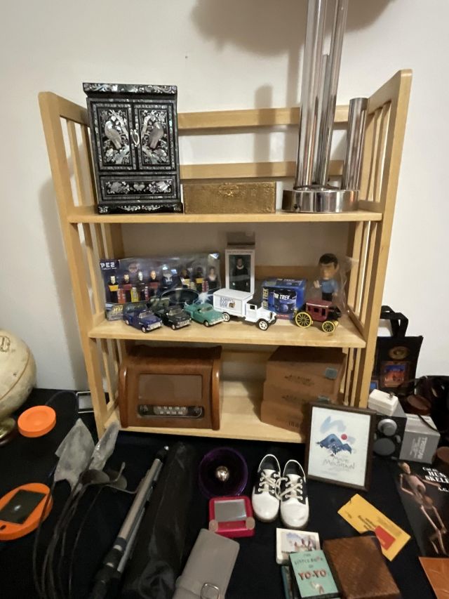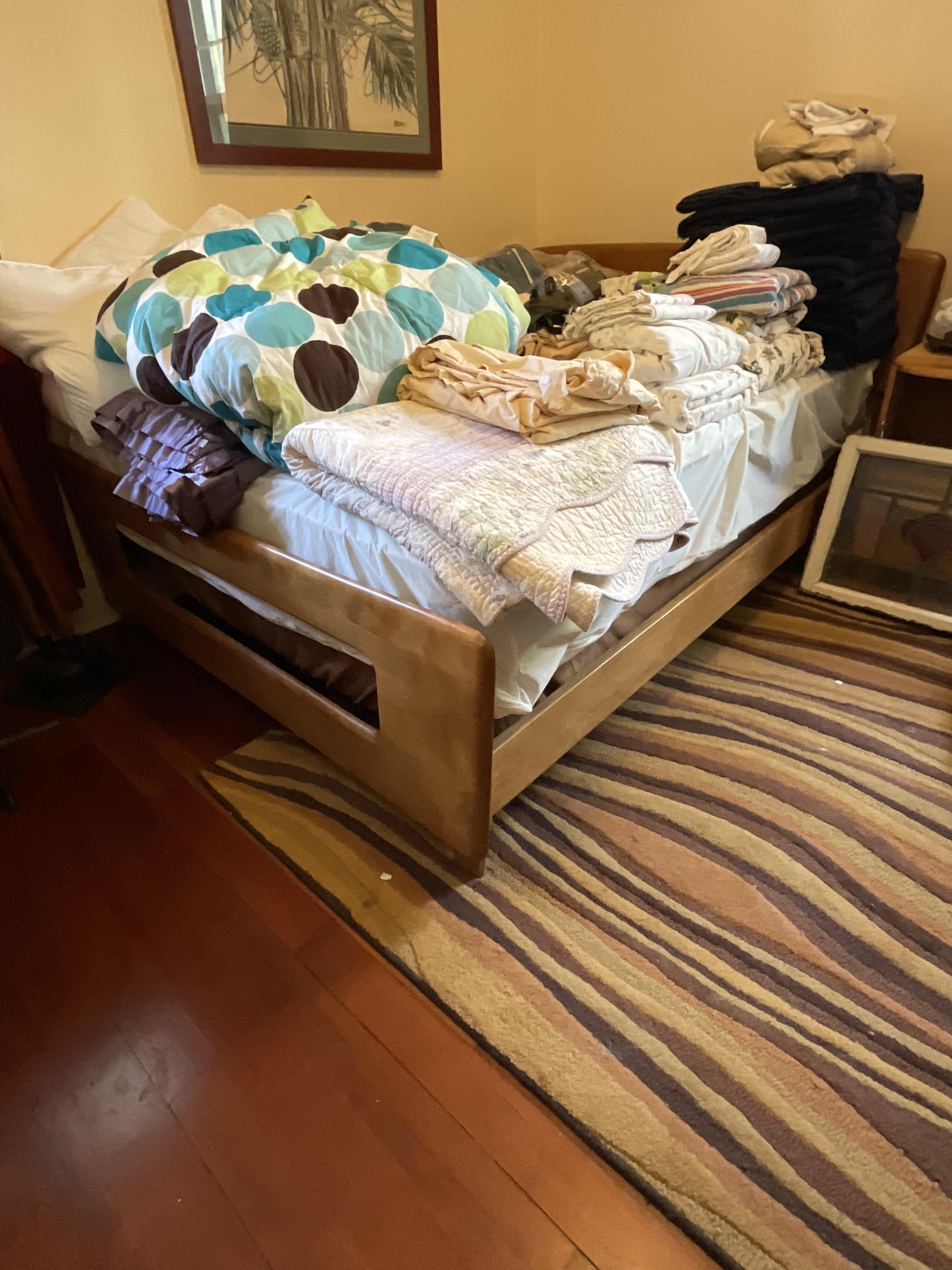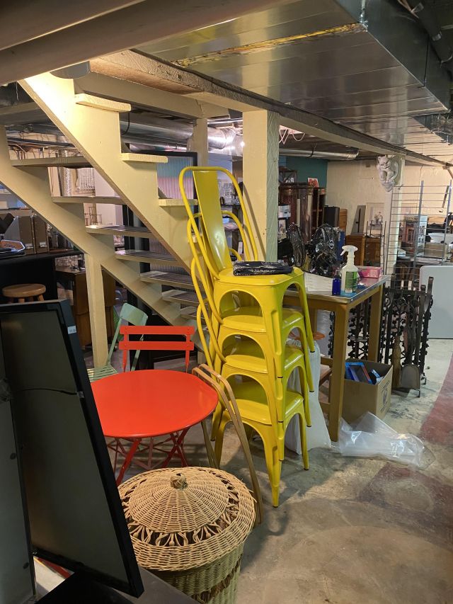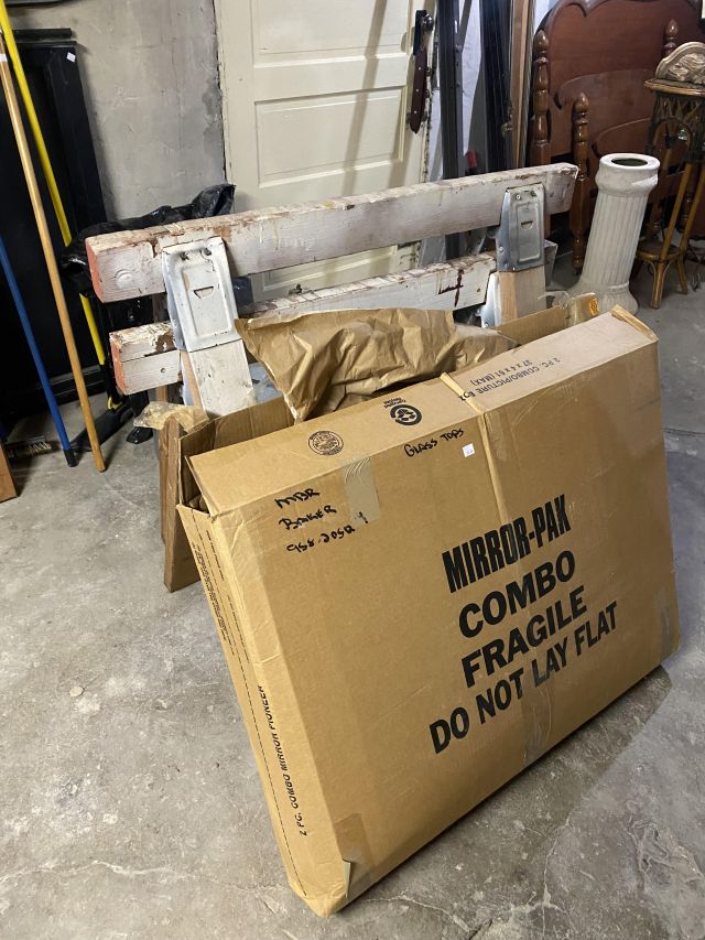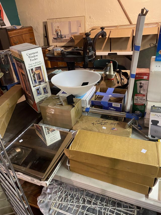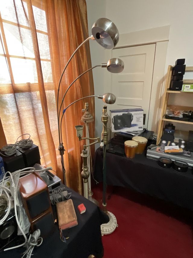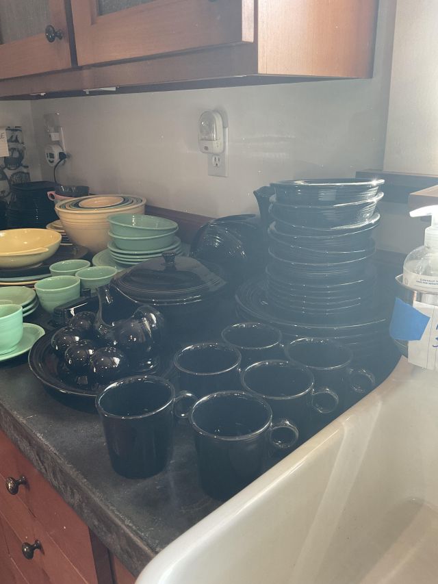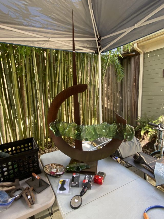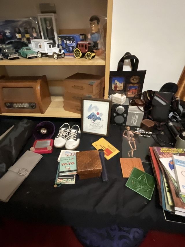 This week’s sale is a collector’s dream and located in a beautiful NE Portland craftsman home. As you can see from the photos provided, this house is packed with treasures. There is a very nice collection of furniture including a BRAND NEW CUSTOM BILTWELL couch, a Haywood Wakefield bedroom set, a beautiful five piece bookcase, antique telephone gossip chairs, a nice Duncan Phyfe style dining table with six chairs, leather chairs, occasional chairs, a queen size bed with side tables and matching dressers, a butcher block rolling cart, a beautiful mid-century serving cart, tons of lamps, rugs, home decor and so much more. There are a variety of kitchen appliances, pots and pans, cast iron pieces, two sets of Fiesta Ware, Ruby depression glass, a large collection of cream and sugar bowls, Haviland porcelain pieces, framed Limoges cameos, a Tigris Cat Vase by Anneleise Beckh, mid-century wall clocks and a variety of other collectable pieces, There is an extremely large collection of art pieces in this sale including pieces by Portland artist Chris Haberman, Navajo artist Ben Halwood, Samyak Yamauchi, Joe Zingaro and a monumental painting of the Statue of Liberty by Jean Francois (see his videos on You Tube). We also have one of the largest collection of albums that we have ever had in a sale. If you collect vinyl you need to come check out this collection. There is also a very nice selection of modern and vintage books. Also included in the sale is one of the nicest collections of women’s clothes (both casual and business attire), shoes, scarves, purses etc as well as a number of designer eye glass frames. Outside you will find some nice outdoor furniture, lawn care items, items for your pet, a very large unique concrete statue, and several bikes, including a vintage Schwinn (Peewee Herman style bike).