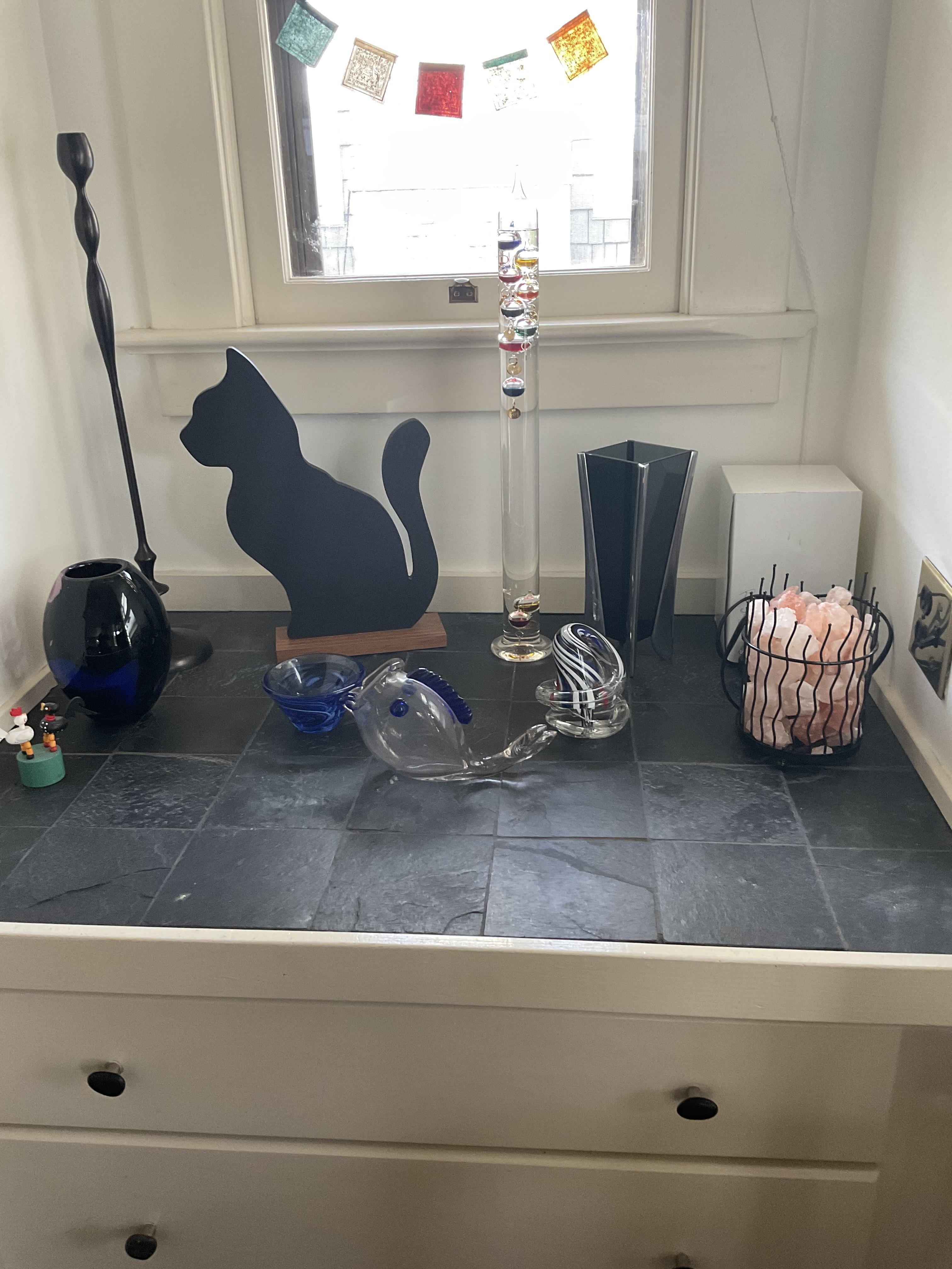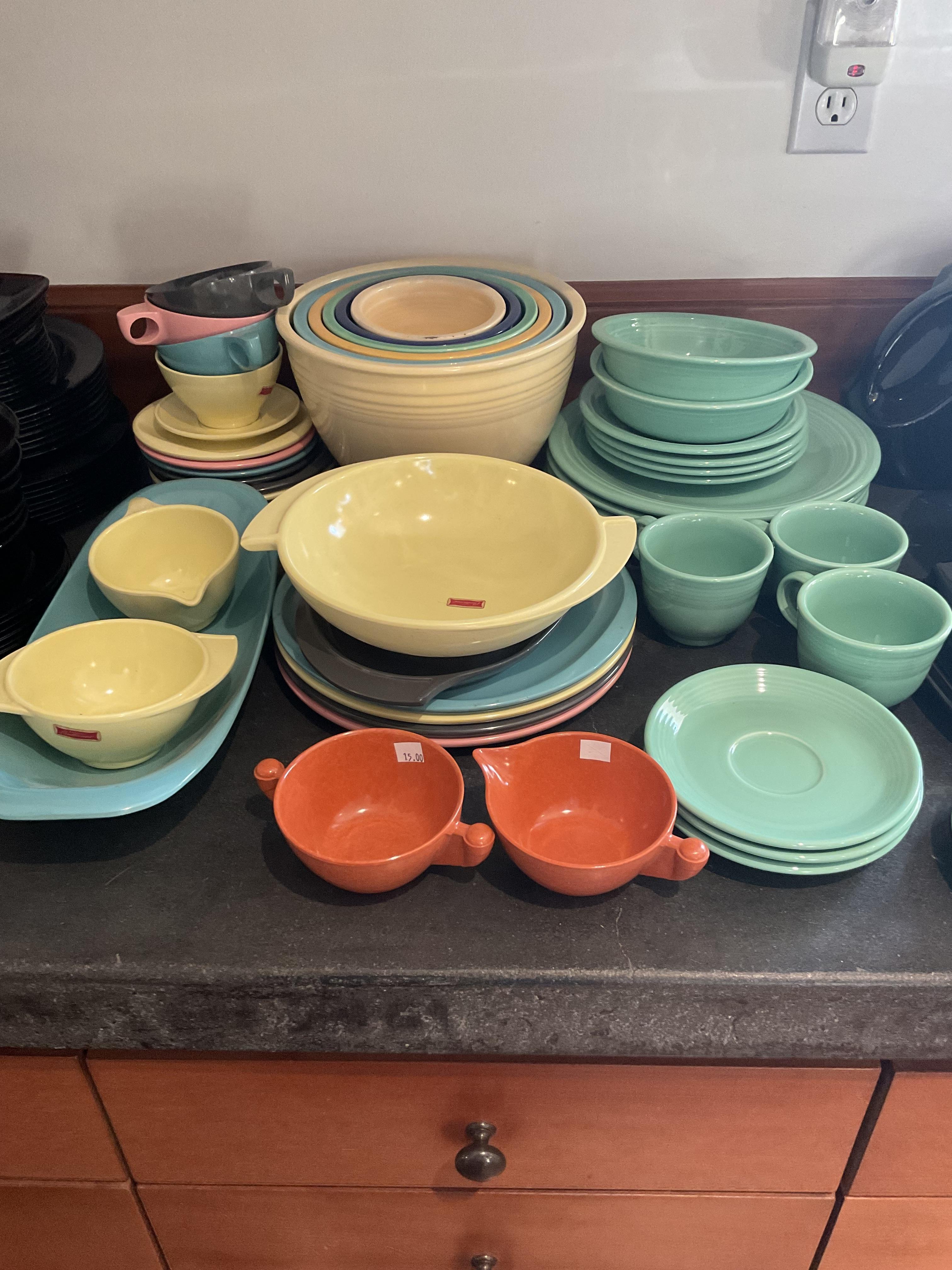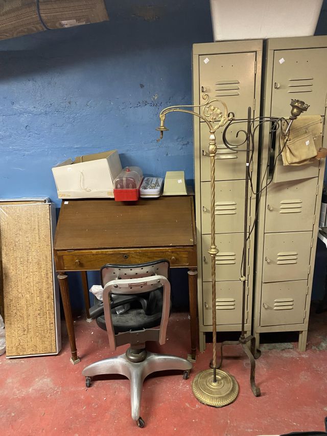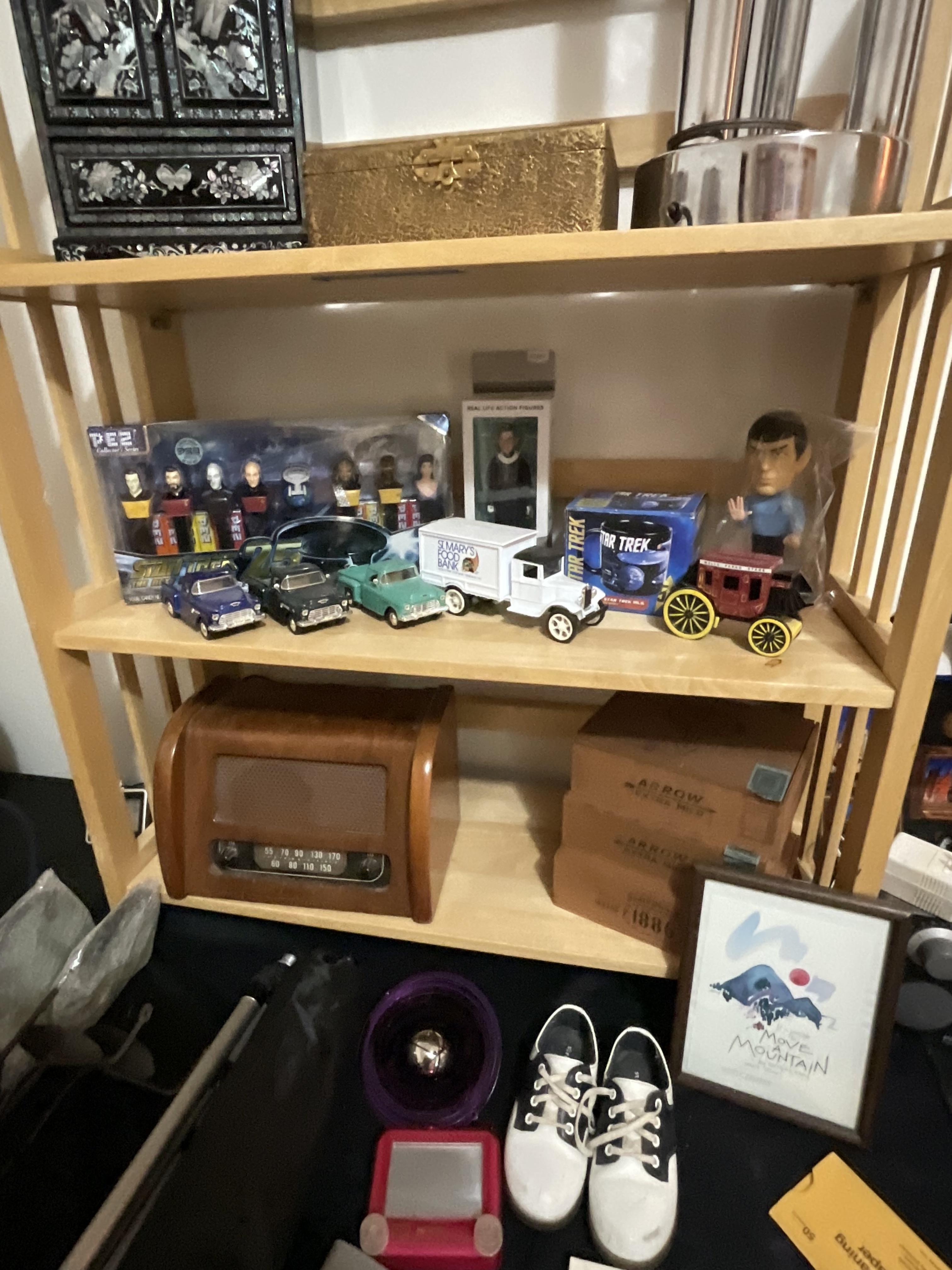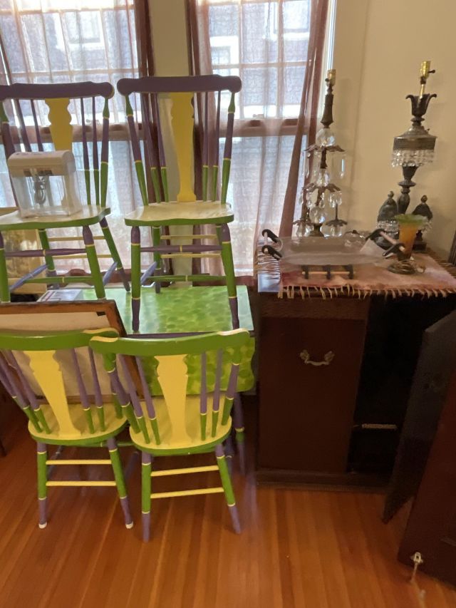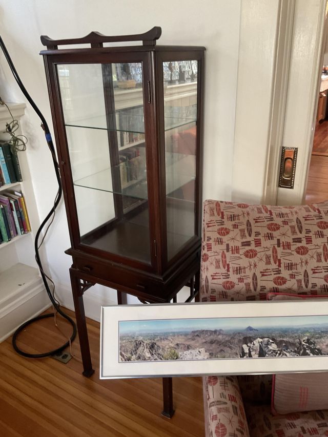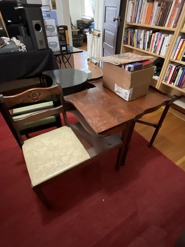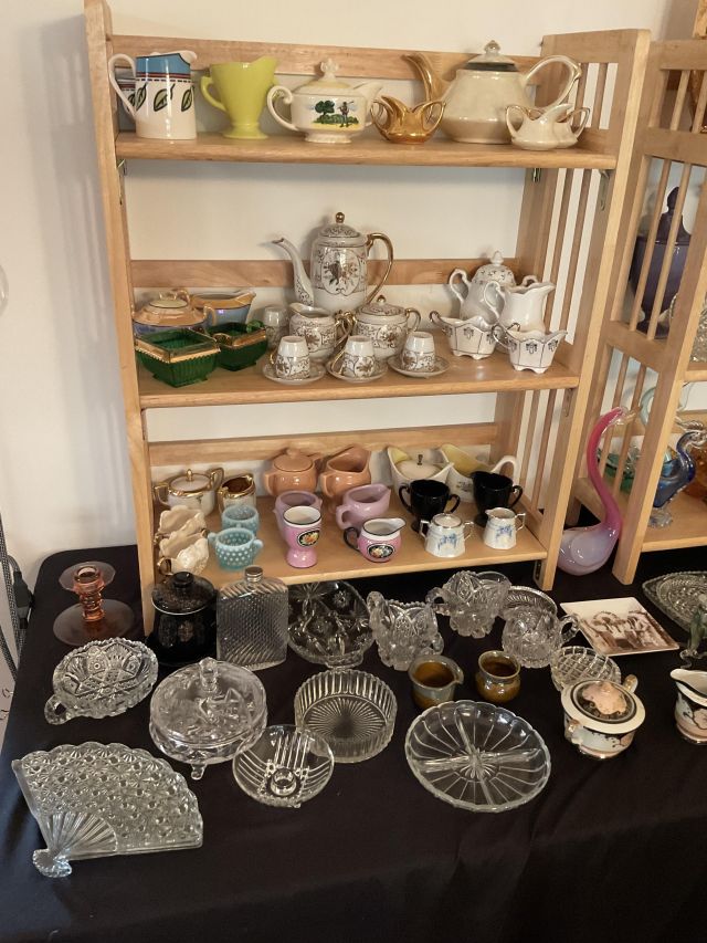 This week’s sale is a collector’s dream and located in a beautiful NE Portland craftsman home. As you can see from the photos provided, this house is packed with treasures. There is a very nice collection of furniture including a BRAND NEW CUSTOM BILTWELL couch, a Haywood Wakefield bedroom set, a beautiful five piece bookcase, antique telephone gossip chairs, a nice Duncan Phyfe style dining table with six chairs, leather chairs, occasional chairs, a queen size bed with side tables and matching dressers, a butcher block rolling cart, a beautiful mid-century serving cart, tons of lamps, rugs, home decor and so much more. There are a variety of kitchen appliances, pots and pans, cast iron pieces, two sets of Fiesta Ware, Ruby depression glass, a large collection of cream and sugar bowls, Haviland porcelain pieces, framed Limoges cameos, a Tigris Cat Vase by Anneleise Beckh, mid-century wall clocks and a variety of other collectable pieces, There is an extremely large collection of art pieces in this sale including pieces by Portland artist Chris Haberman, Navajo artist Ben Halwood, Samyak Yamauchi, Joe Zingaro and a monumental painting of the Statue of Liberty by Jean Francois (see his videos on You Tube). We also have one of the largest collection of albums that we have ever had in a sale. If you collect vinyl you need to come check out this collection. There is also a very nice selection of modern and vintage books. Also included in the sale is one of the nicest collections of women’s clothes (both casual and business attire), shoes, scarves, purses etc as well as a number of designer eye glass frames. Outside you will find some nice outdoor furniture, lawn care items, items for your pet, a very large unique concrete statue, and several bikes, including a vintage Schwinn (Peewee Herman style bike).