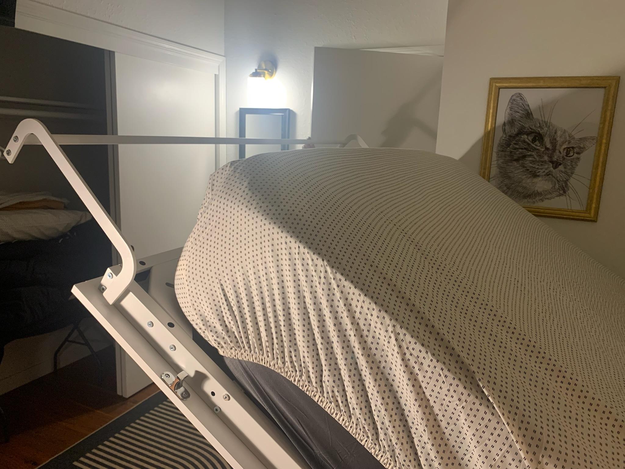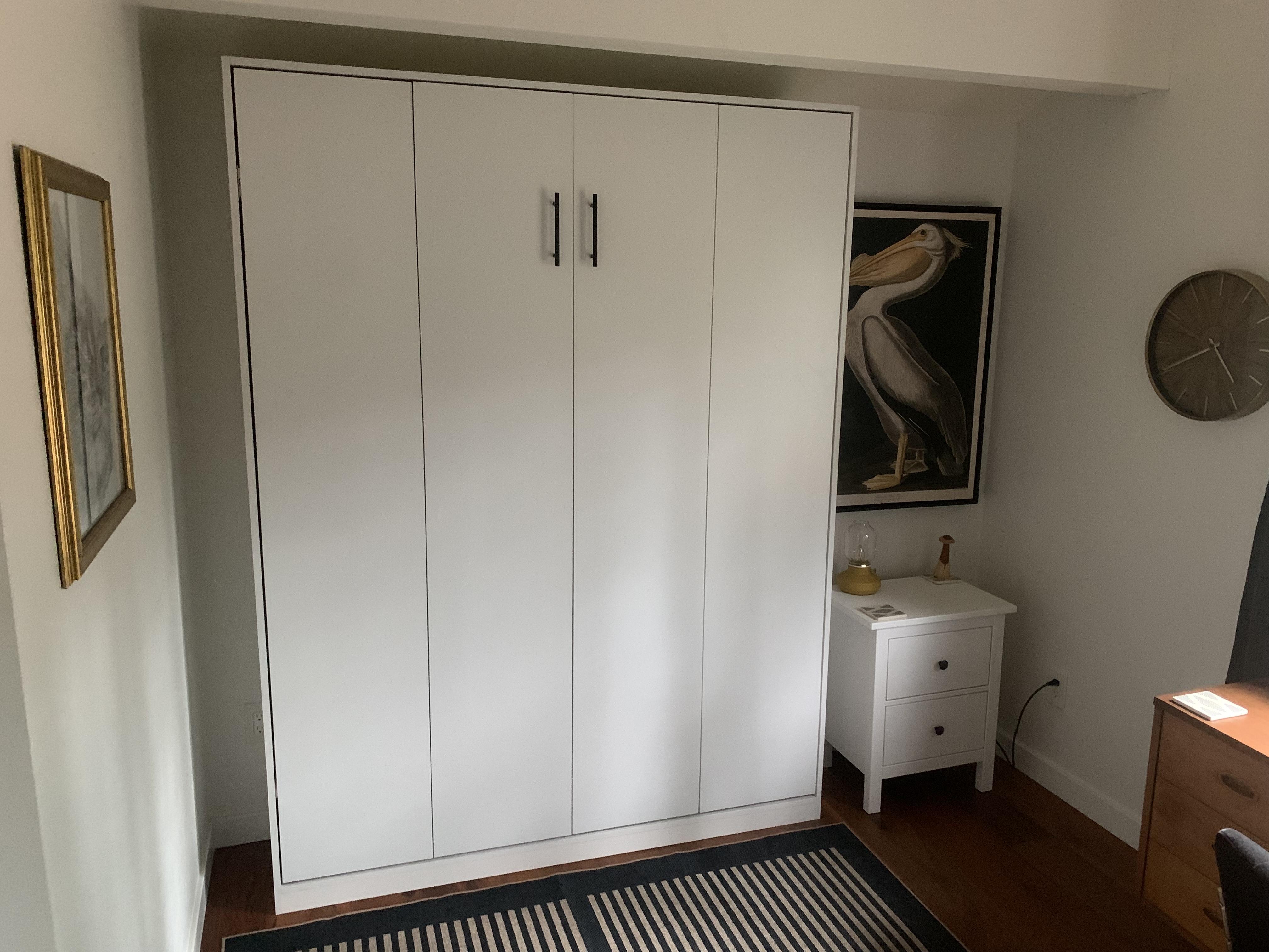 Queen Murphy Bed–White Dresser: 64.75" W × 85.5" H × 16" D (closed) / 86" in use