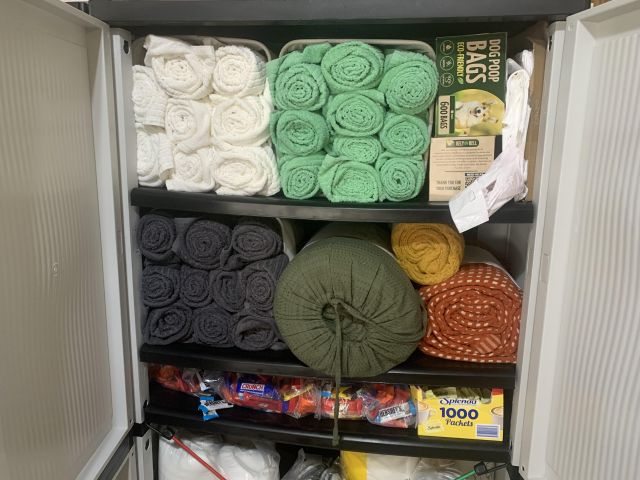 AirBnb-Inventory includes: King & Queen linen sets, new sets of linens, duvets, wash cloths, bathroom supplies and cleaning supplies