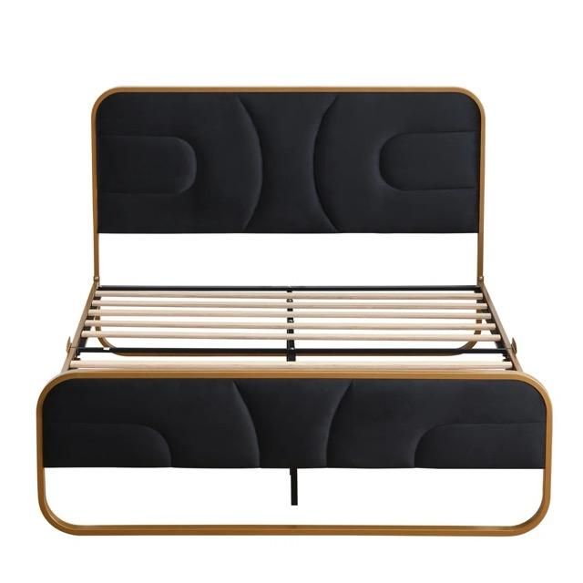 New King upholstered bedframe & King mattresses: 76" W × 42.5" H (headboard)