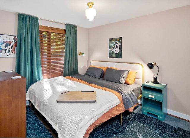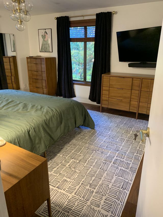 Update 2/9: Not all items in house remain for sale; we have done our best to photograph specifically the items that are for sale, about 50% remaining of fully furnished house. 1 King Bed, 1 Queen Dresser-Murphy Bed, Teak furniture including Dining set, teak dresser and teak tall boy, sleeper couch, MCM large area rugs, framed art work, new Airnbn inventory (linens, cleaning products, etc.) and outdoor furniture remain for sale!