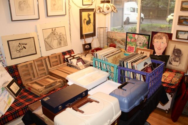 Vintage Original Artwork, Salvador Dali, Rie Munoz, Keith Llewellyn DeCarlo, Ronald Searle, Asian, MCM and Traditional Furniture (D-Scan, Willett), Sewing, Electronics, DVD's CD's, LP's, Books on Tape, Plethora of Christmas (Some Vintage), Rocking Horse Collection, Art Supplies, Tools, Lamps, Books, Baskets, Barware, Glassware, Kitchen, Office, Pressure Washer, Washer/Dryer, Refrigerator, Patio, Garage & Household Misc.