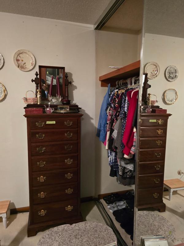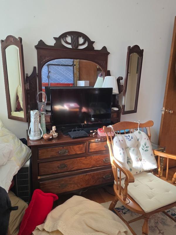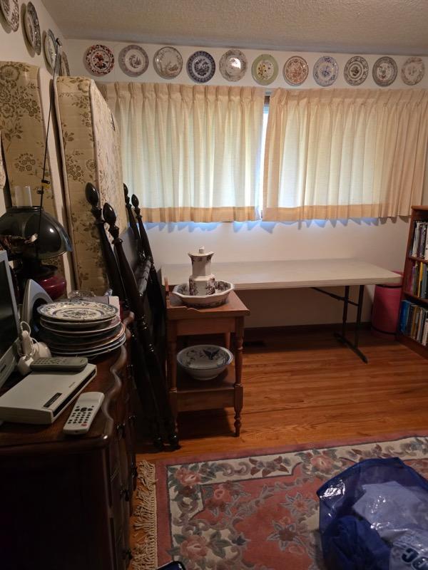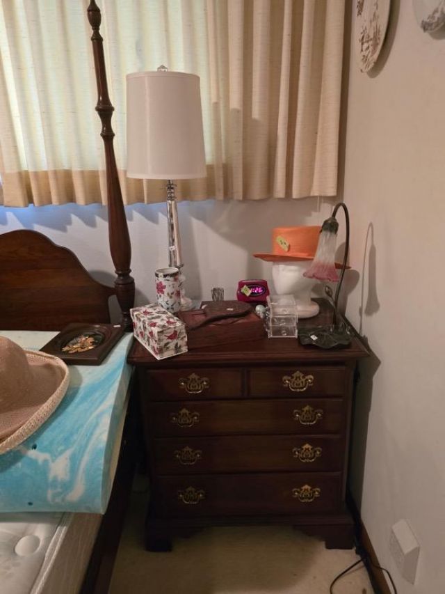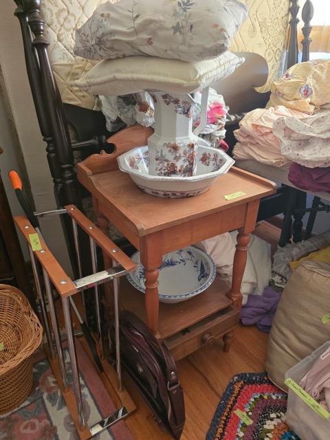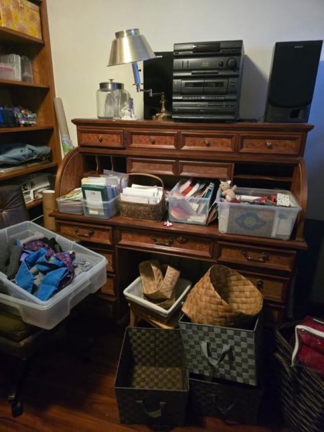 China & Display Cabinets (many), Roll Top Desk Vintage Drop Front Desk Sofas, End Tables & Wall Tables Beautiful Bedroom Set, Headboards Mattress Sets Bookcases & Many Dressers, Area Rugs, Baskets & Lamps, Wall Art & Quilts,