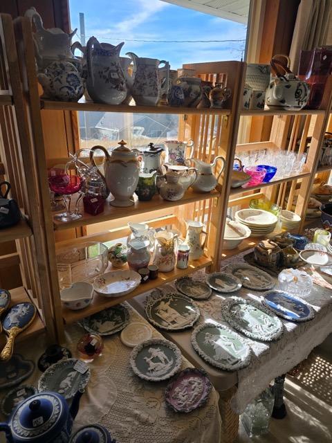 Large China Sets including Haviland, Spode & Wedgwood, Huge Collection of Tea Cups & Saucers, Porcelain Plates & Jasperware, Cut Glass & Art Glass,
