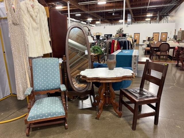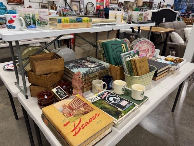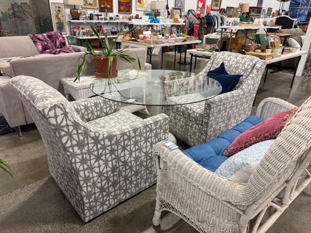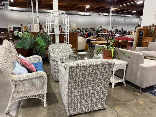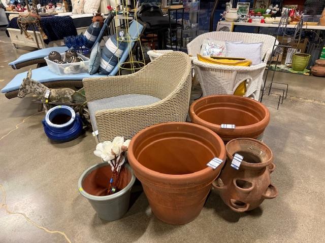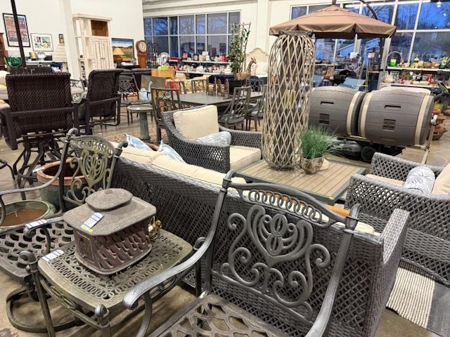 We have over 20 couches this month, a packed patio and garden department including seating, pots, garden decor, a patio firepit and a double compost barrel! Furniture is abundant but so is everything else. We have added multiple tables of small decor items that are interesting, unique and becoming more rare. We feel so honored to be the vehicle in which these items get recycled into other lives and homes.
