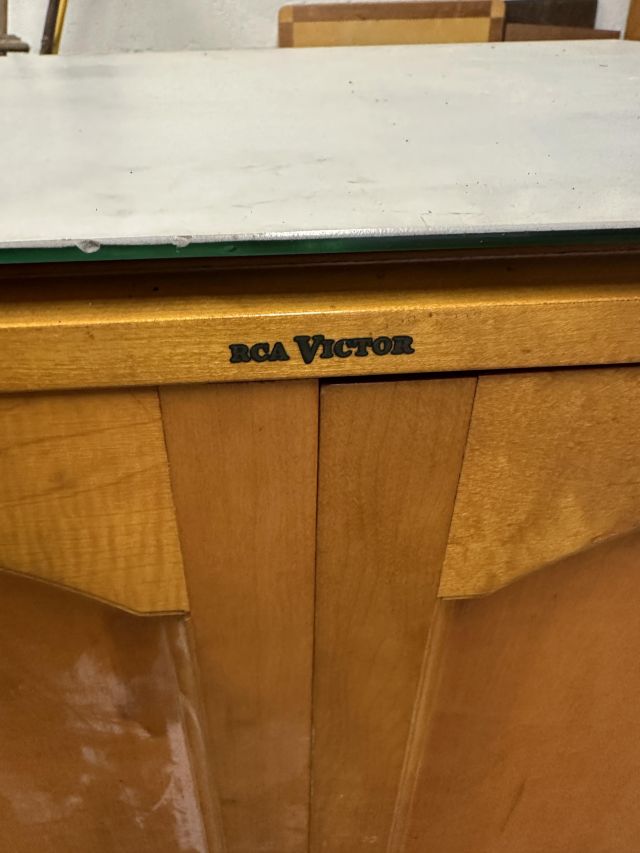 RCA Victor black-and-white TV in a cabinet,