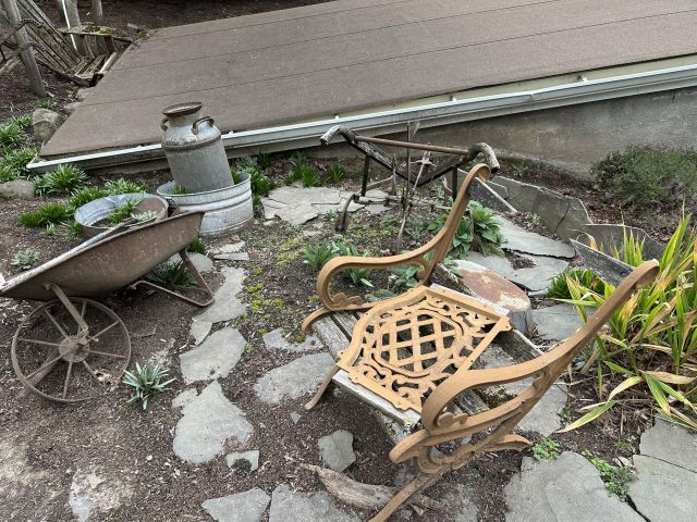 Yard Art antique yard tools plows