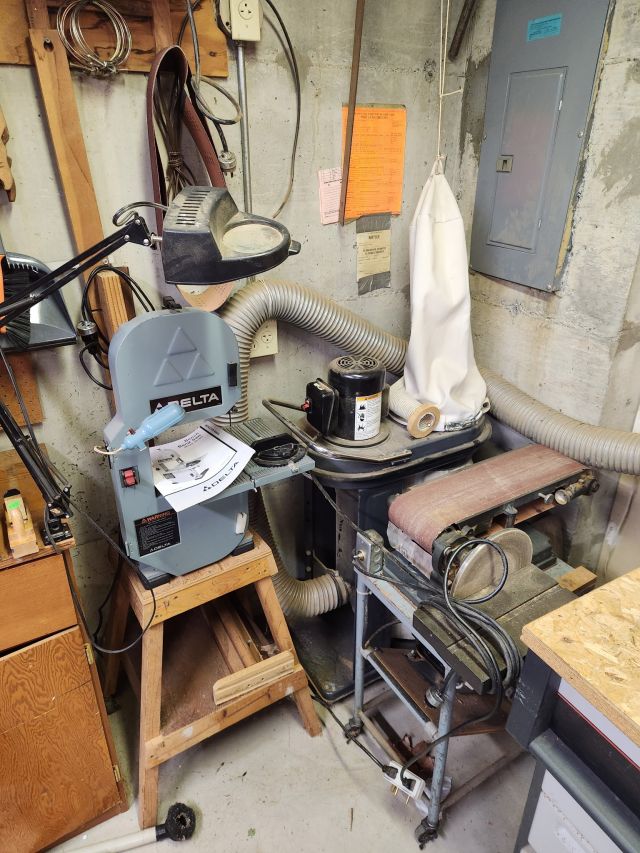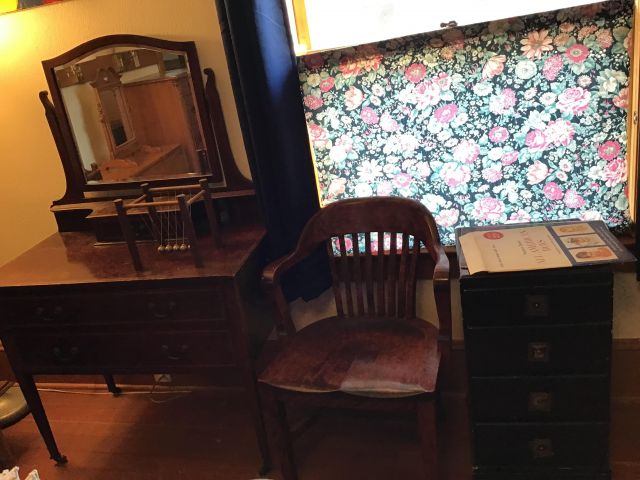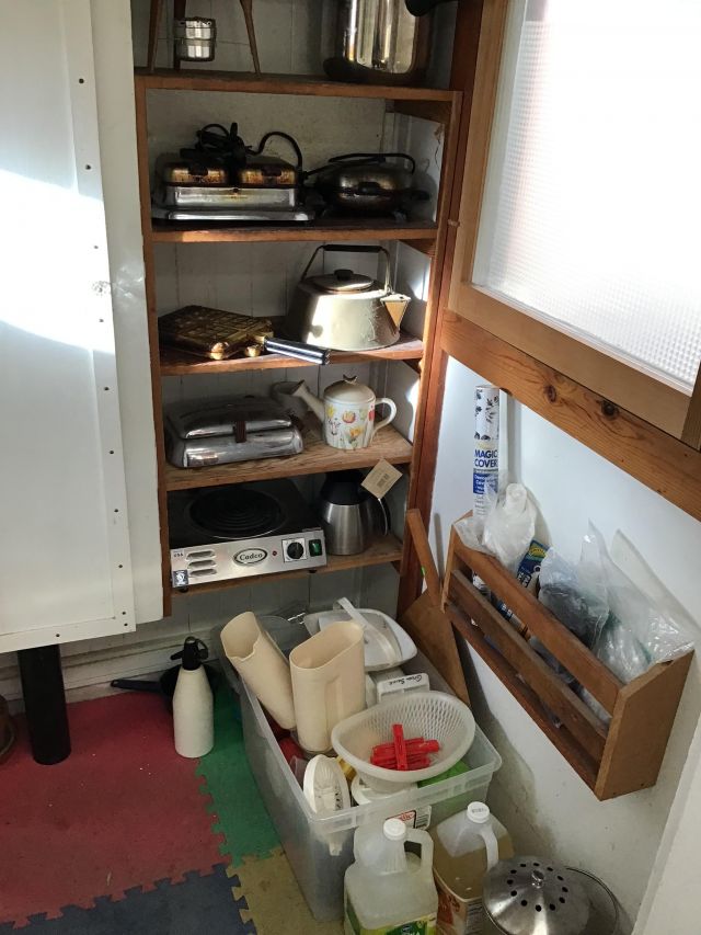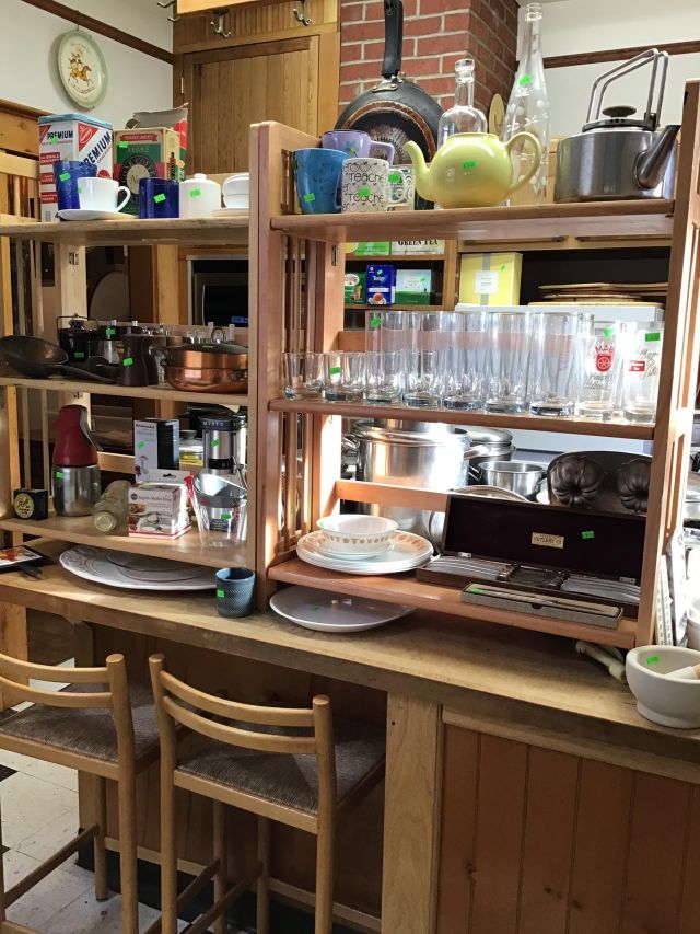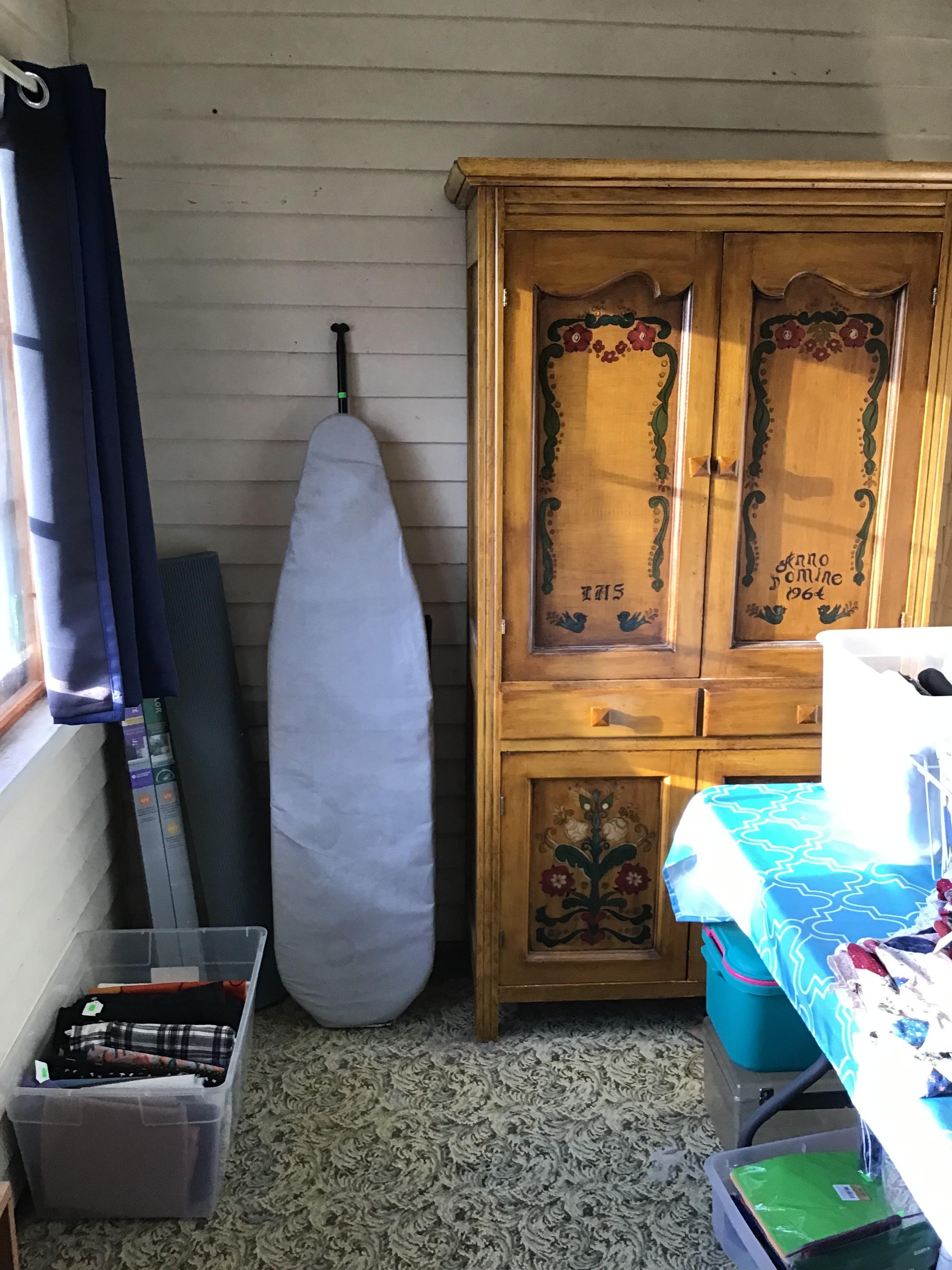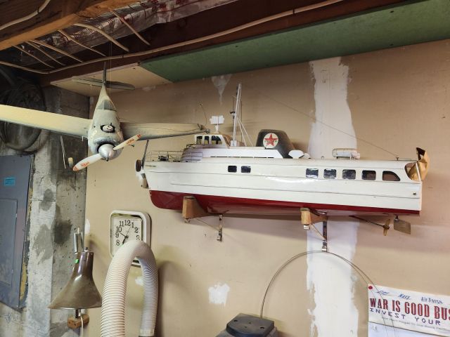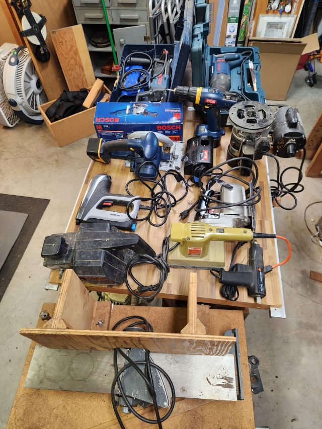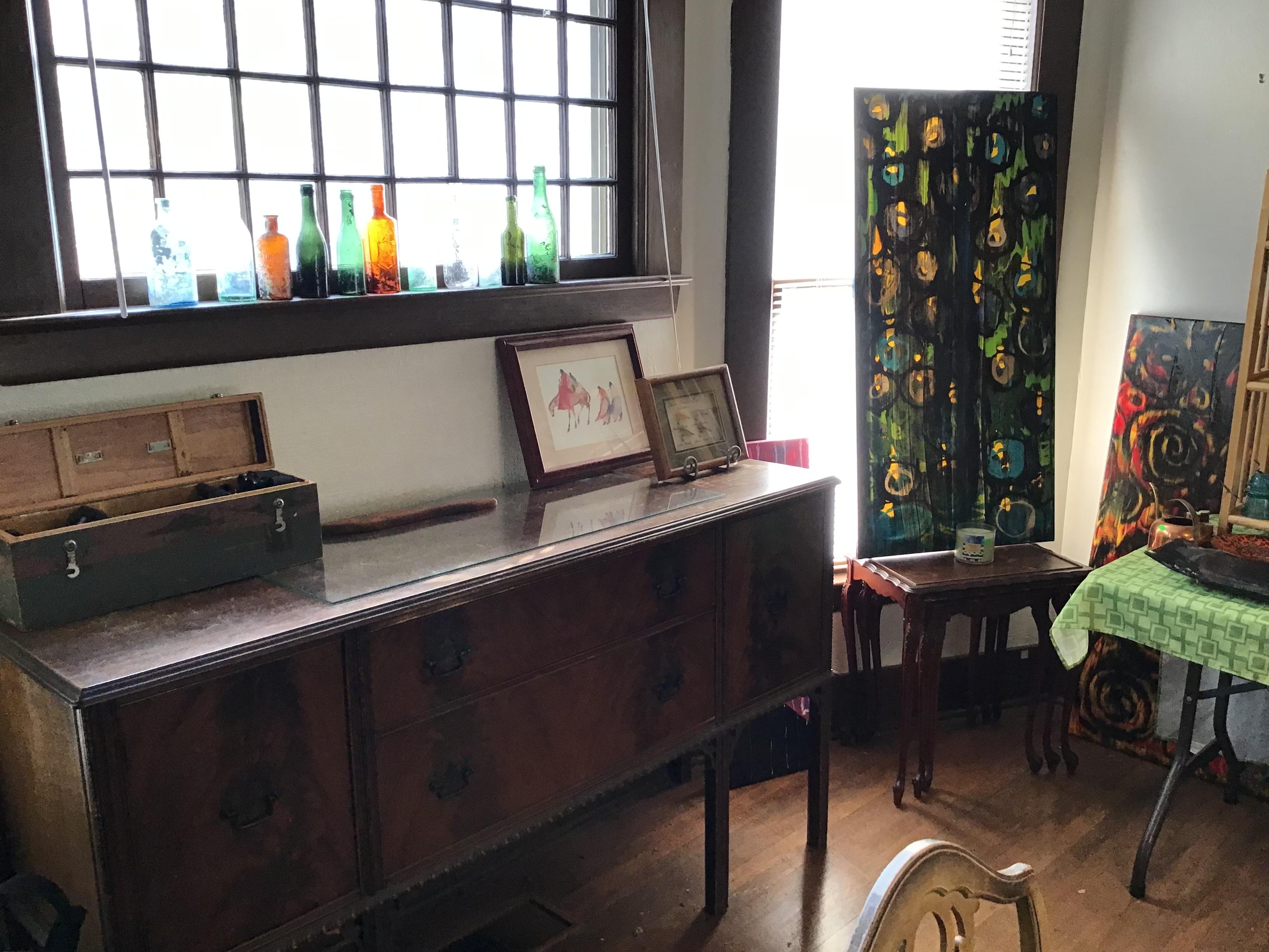 Antique furniture including dresser with mirror, cabinet, wardrobe, dining table, miscellaneous chairs, sideboards, cabinets, Also there’s glassware, kitchenware including pots and pans, utensils, small appliances, records, cds, artwork and prints, ephemera, old photo albums and scrapbooks, posters, rock collection, tons of office supplies, lots of maps, boardgames, electronics, entire workshop full of hand and power tools, camping equipment, model airplanes, radio controlled airplanes, clothing and accessories, linens, some holiday decor, bbq, patio furniture, household products, and much more.