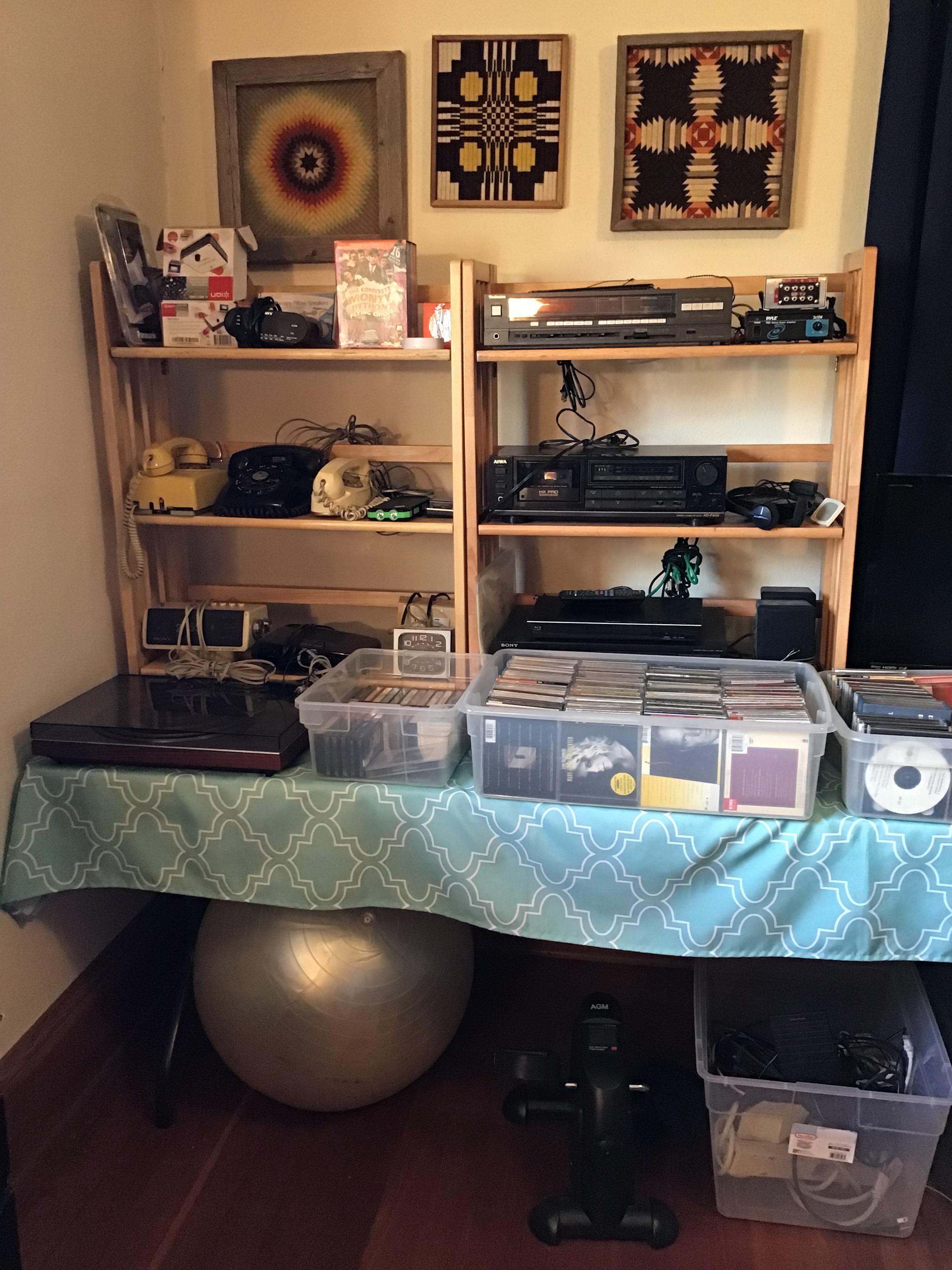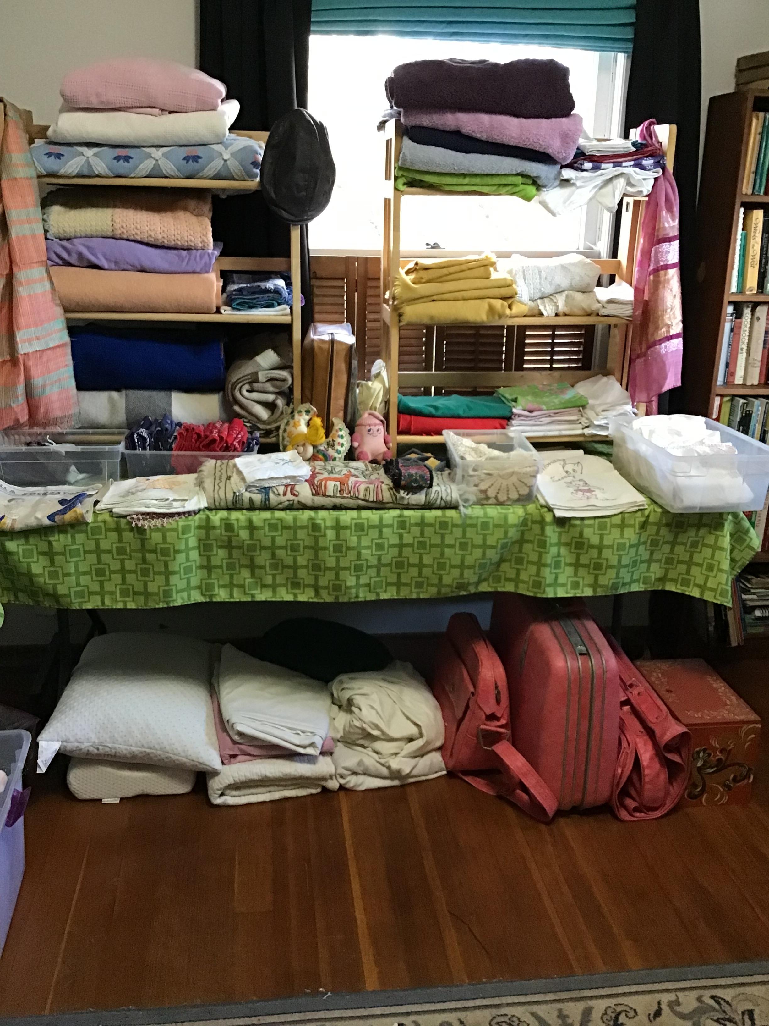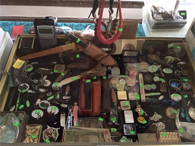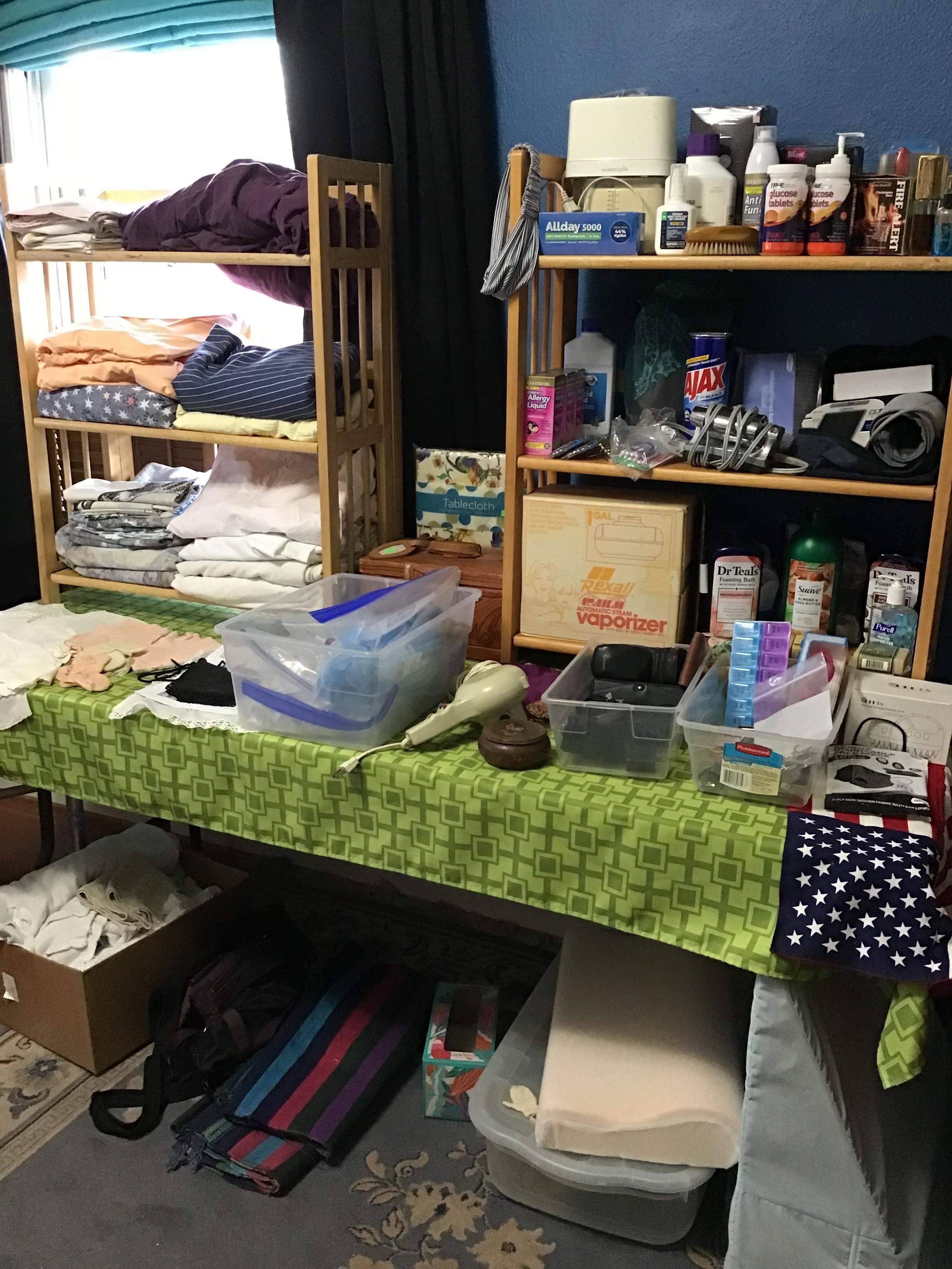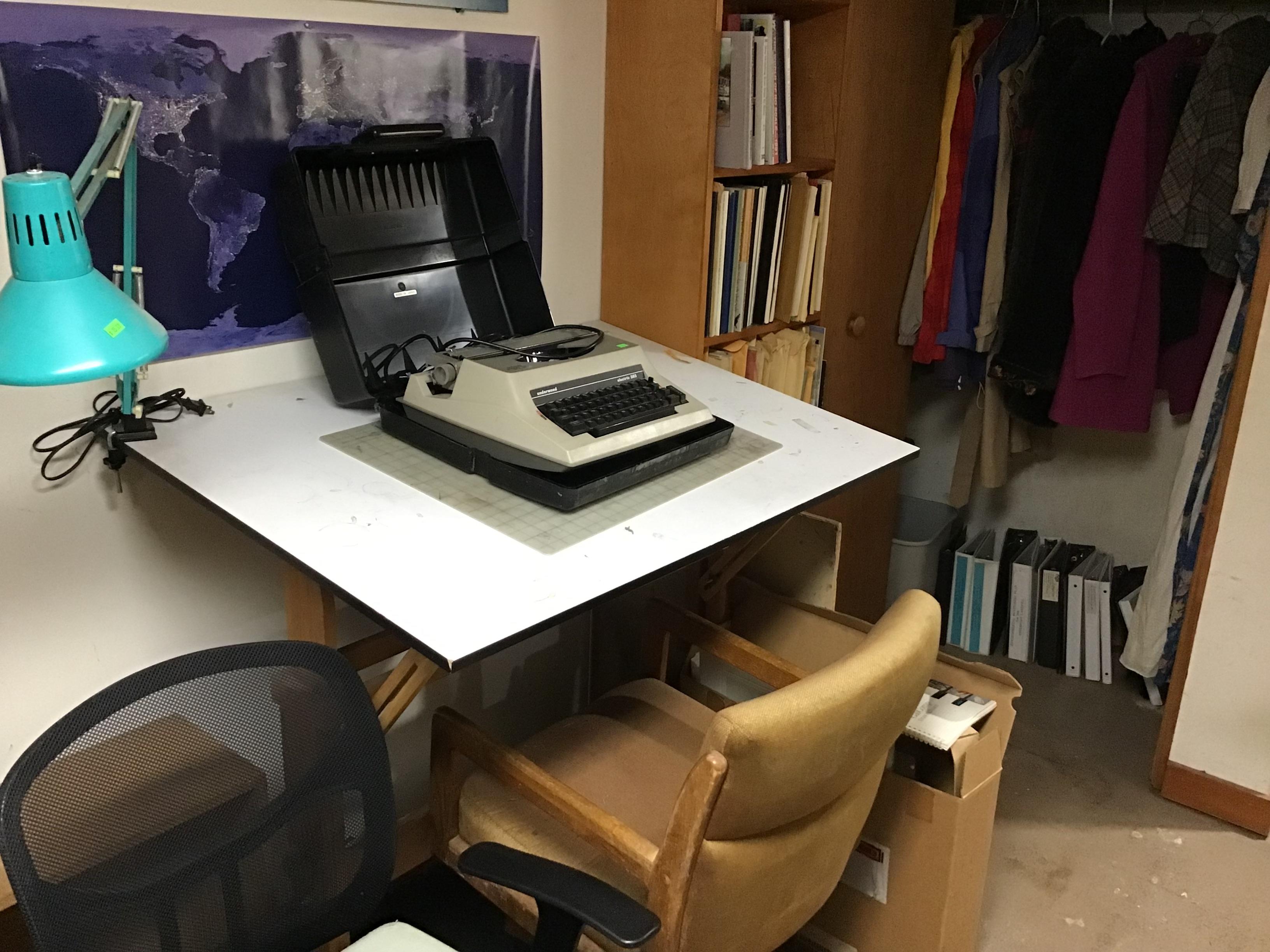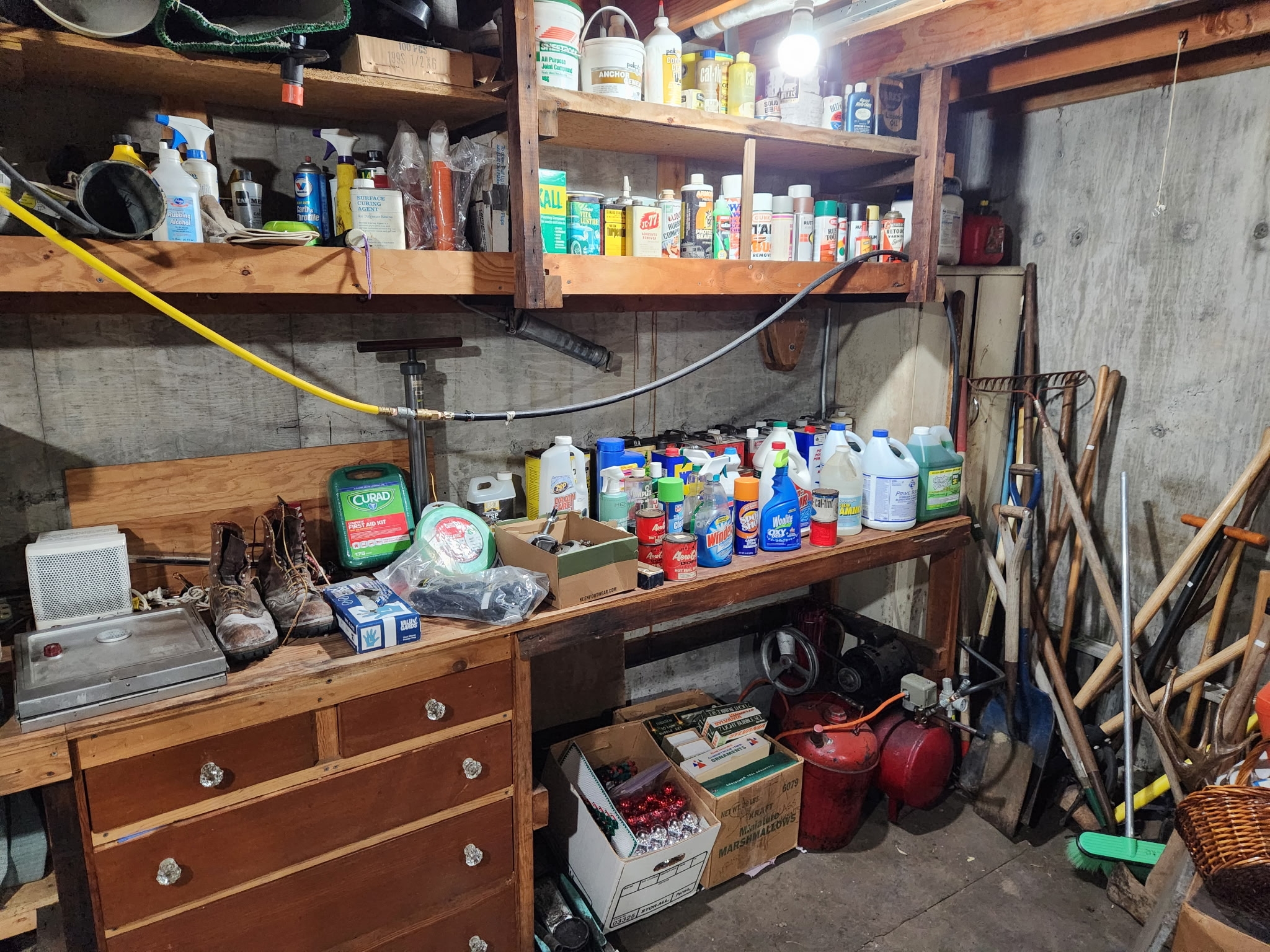 Antique furniture including dresser with mirror, cabinet, wardrobe, dining table, miscellaneous chairs, sideboards, cabinets, Also there’s glassware, kitchenware including pots and pans, utensils, small appliances, records, cds, artwork and prints, ephemera, old photo albums and scrapbooks, posters, rock collection, tons of office supplies, lots of maps, boardgames, electronics, entire workshop full of hand and power tools, camping equipment, model airplanes, radio controlled airplanes, clothing and accessories, linens, some holiday decor, bbq, patio furniture, household products, and much more.