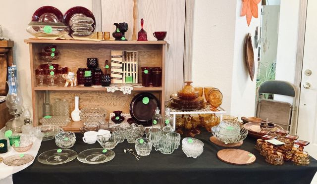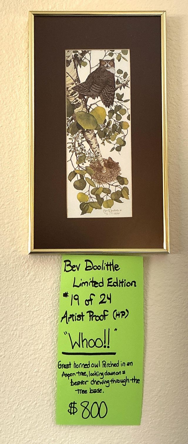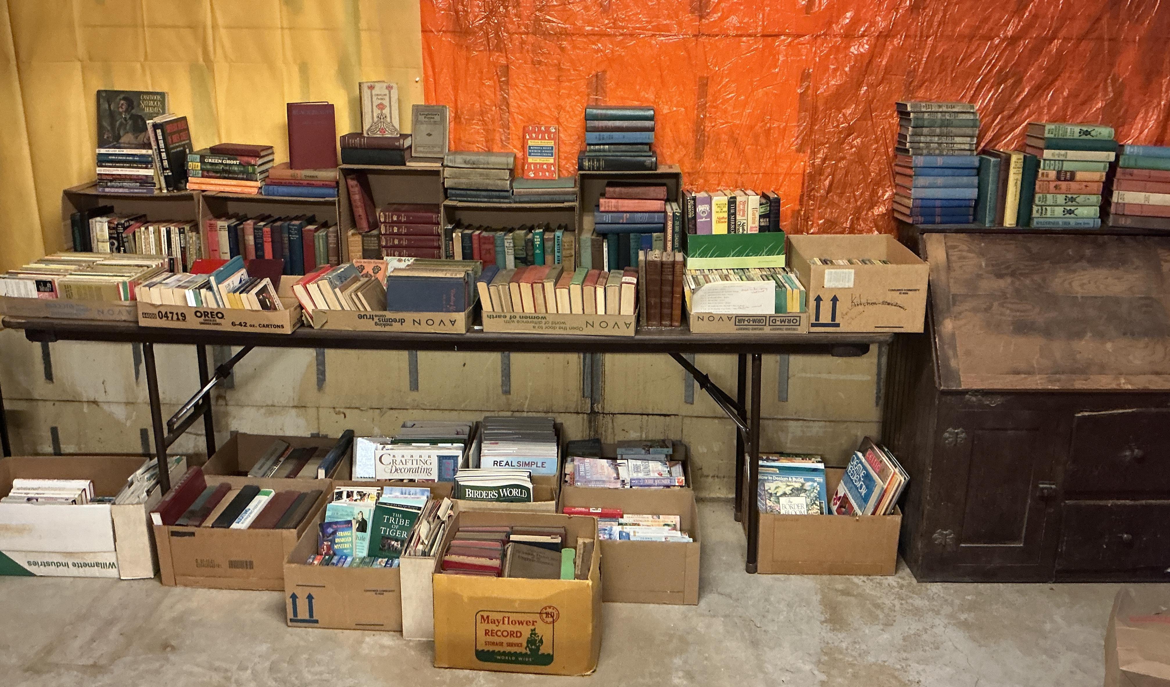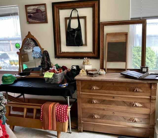 Alder house, Bev Doolittle, Tupperware, Avon, pre- WW2 & Civil War memorabilia, Cast Iron, Sewing Machines, Cameras, Jewelry, Fostoria, Milk Glass, Furs, Antique & Mid-Century furniture, Picture Frames, Vintage Clothing 50’s-90’s, Gardening Galore, Vintage books, Collectible books, children’s books, wood, tools, camping, piano, vintage children’s toys, vintage bikes, ladders, and much more!
