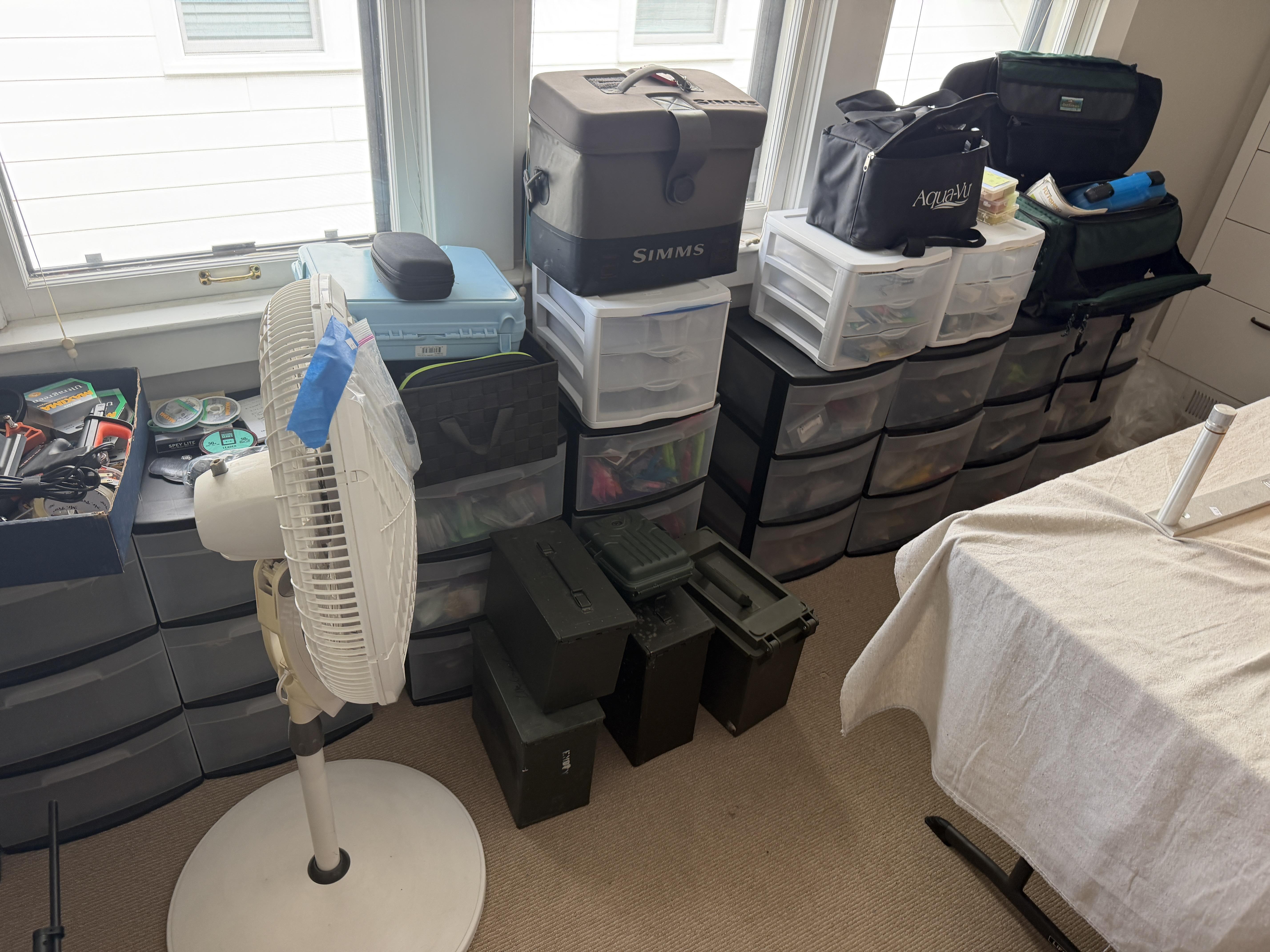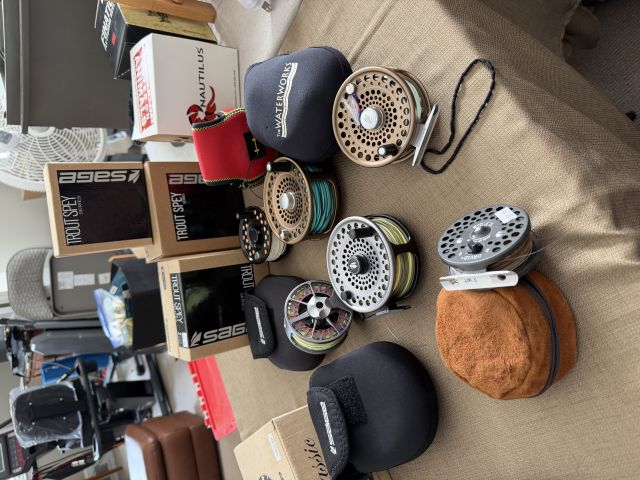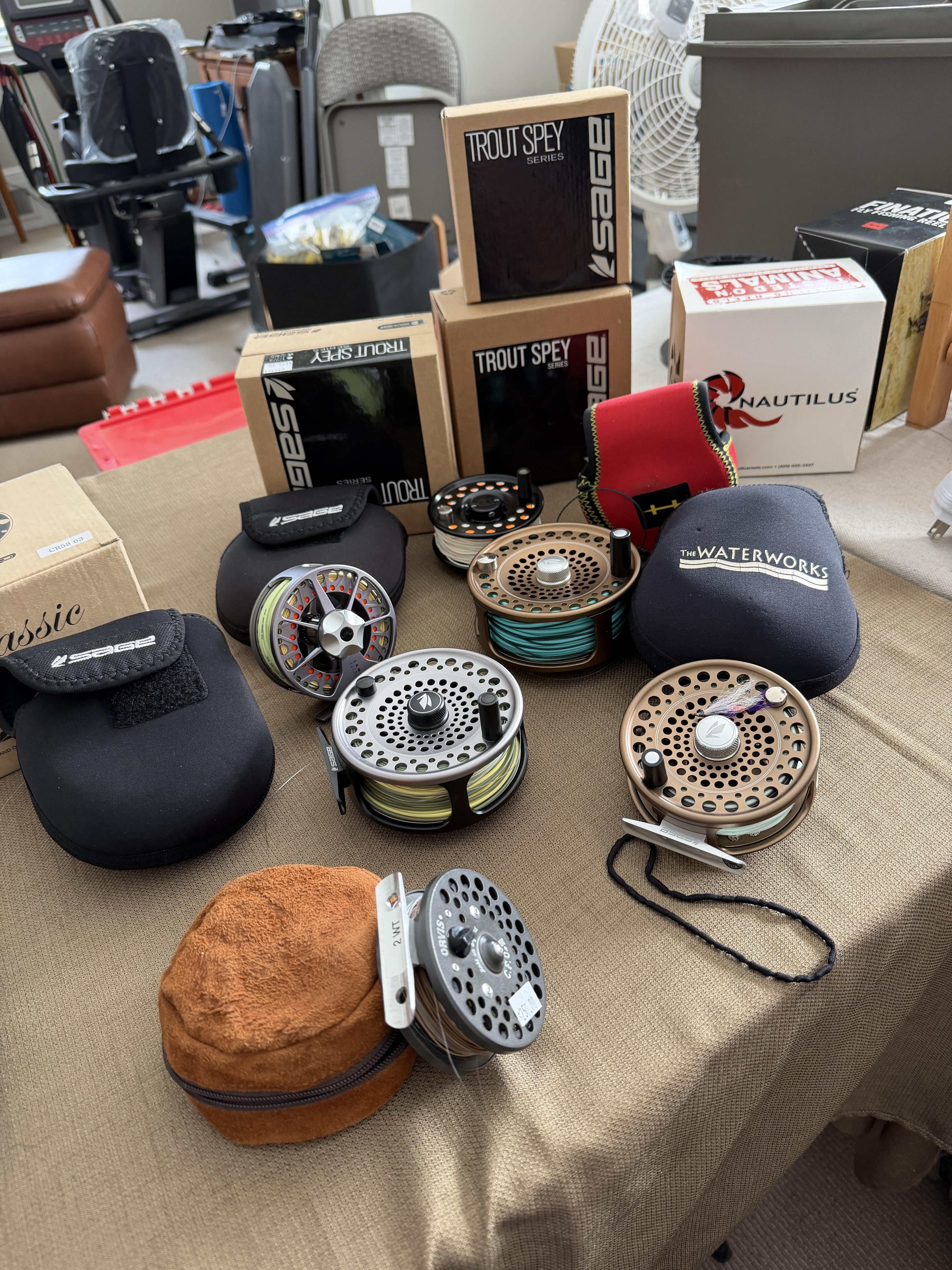 Dozens of high end fishing, salmon, and steel head rods and reels by Sage, Hatch, Loop, & more! Plus a a dozen or more spinning reels with rods for fresh and salt water fishing. Why buy one when you can afford 10? Hundreds of lures, flies, and accessories! A complete fly tying station with bench, vises, dryers, tools, as well as feathers, strings, hooks, leads, you name it. Enough to start a fly tying business!