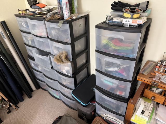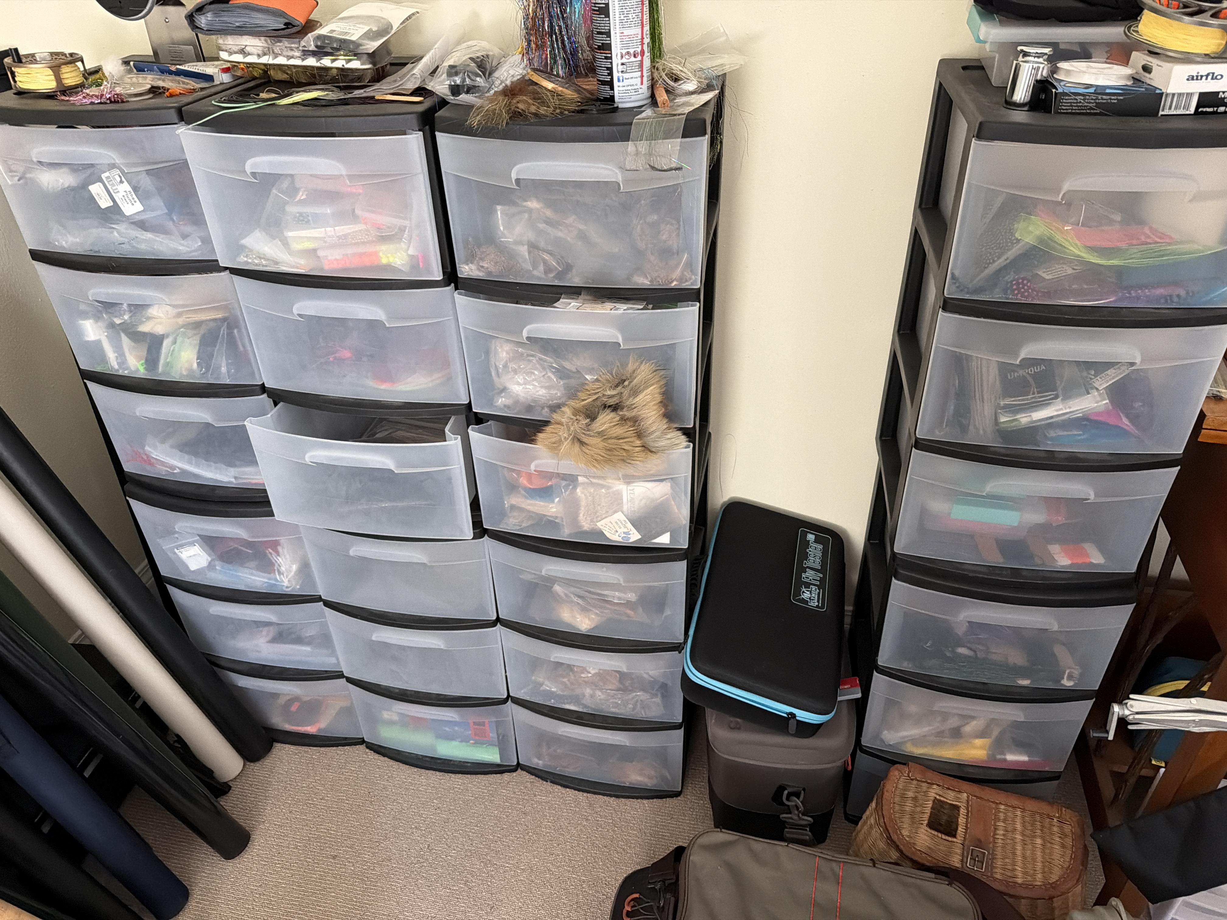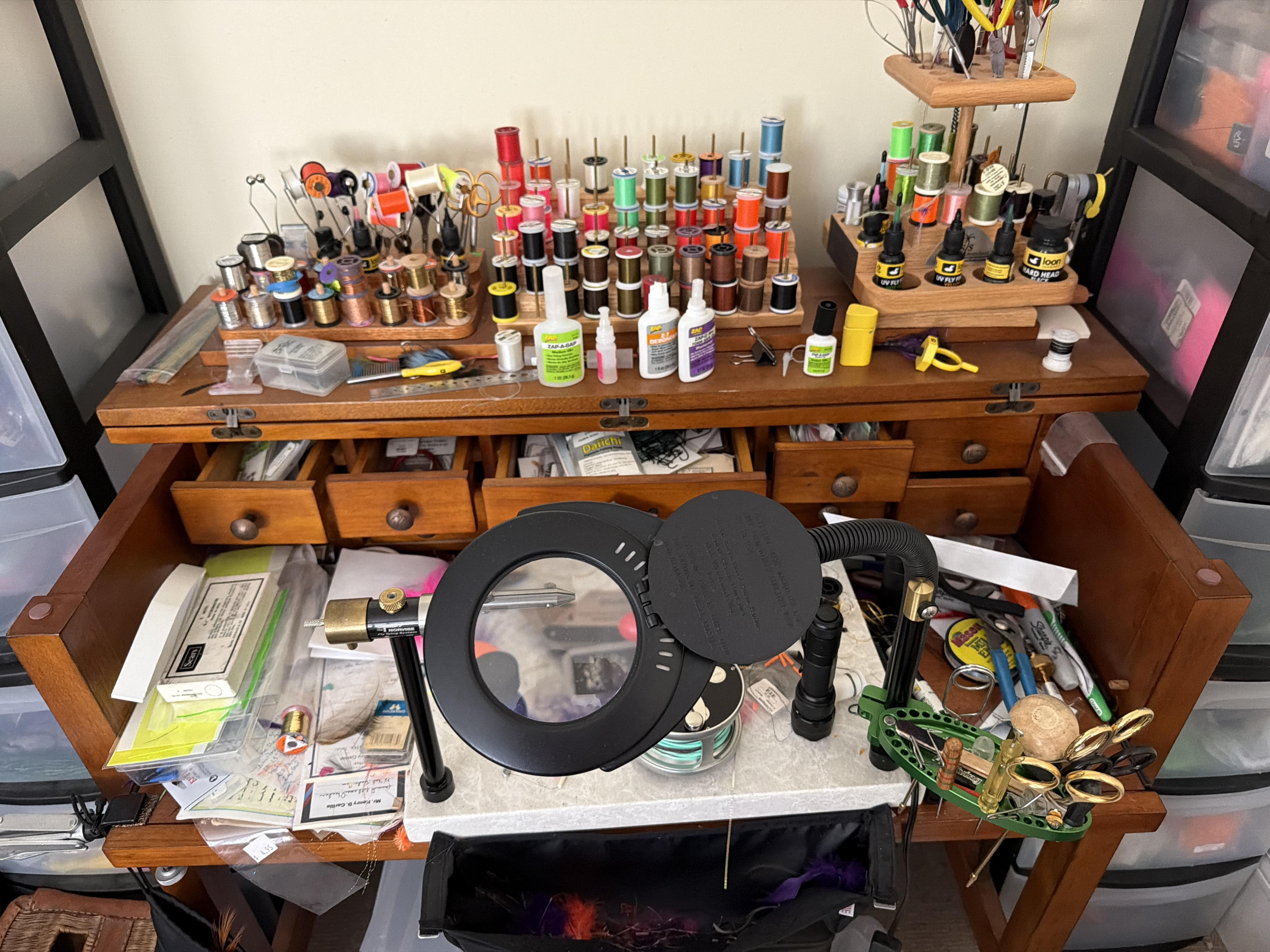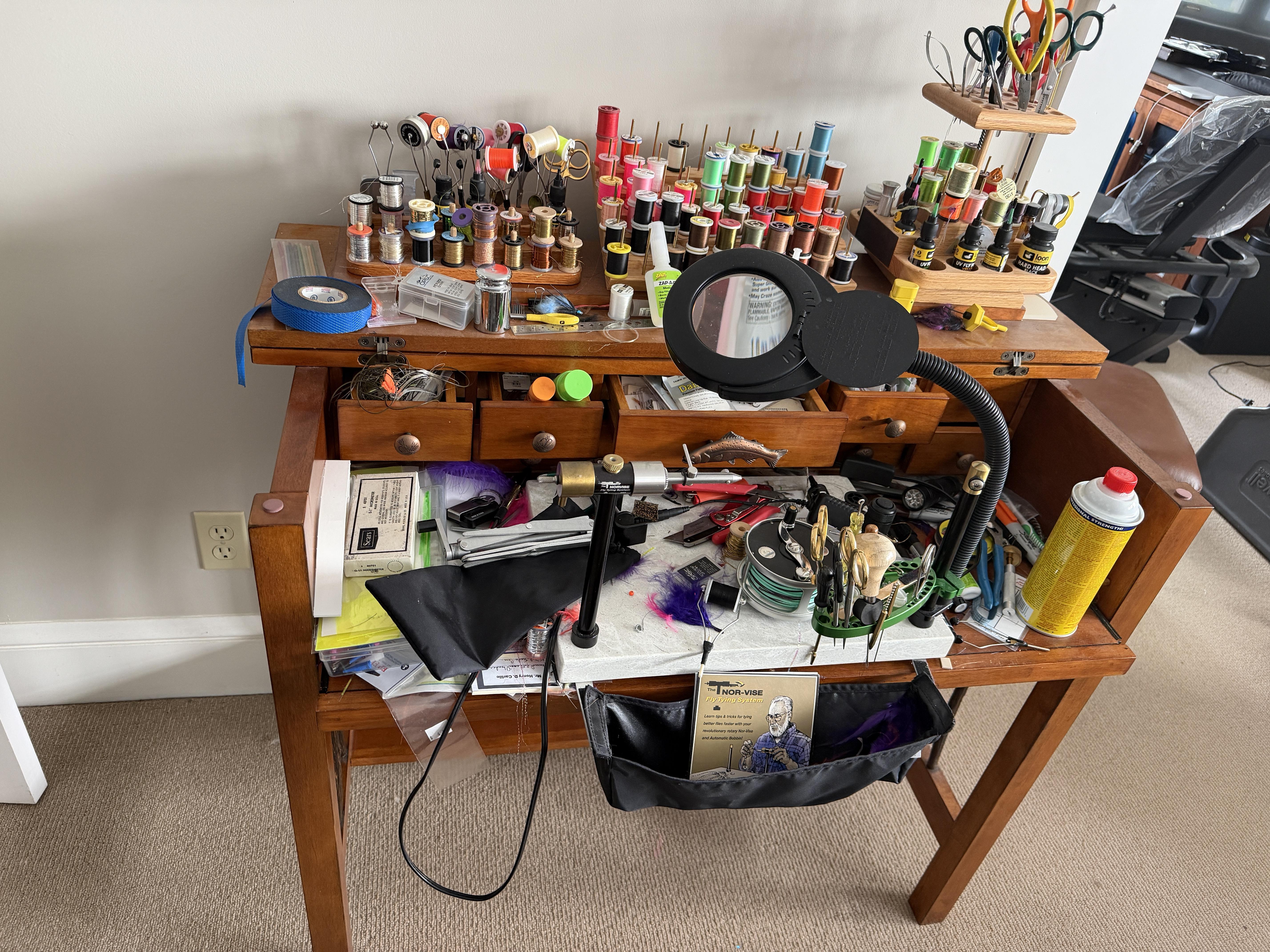 Dozens of high end fishing, salmon, and steel head rods and reels by Sage, Hatch, Loop, & more! Plus a a dozen or more spinning reels with rods for fresh and salt water fishing. Why buy one when you can afford 10? Hundreds of lures, flies, and accessories! A complete fly tying station with bench, vises, dryers, tools, as well as feathers, strings, hooks, leads, you name it. Enough to start a fly tying business!