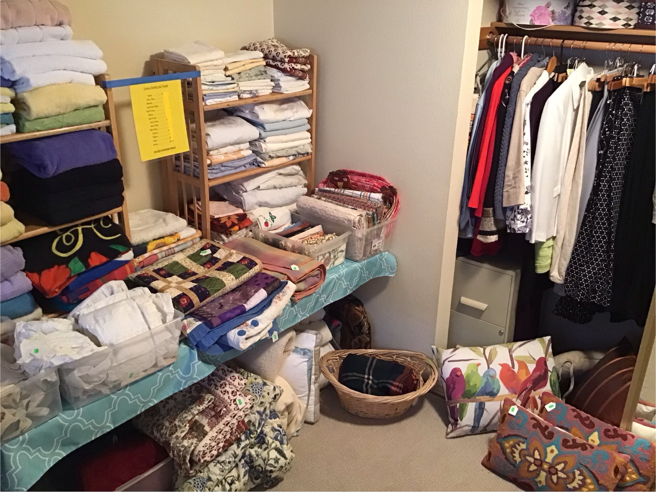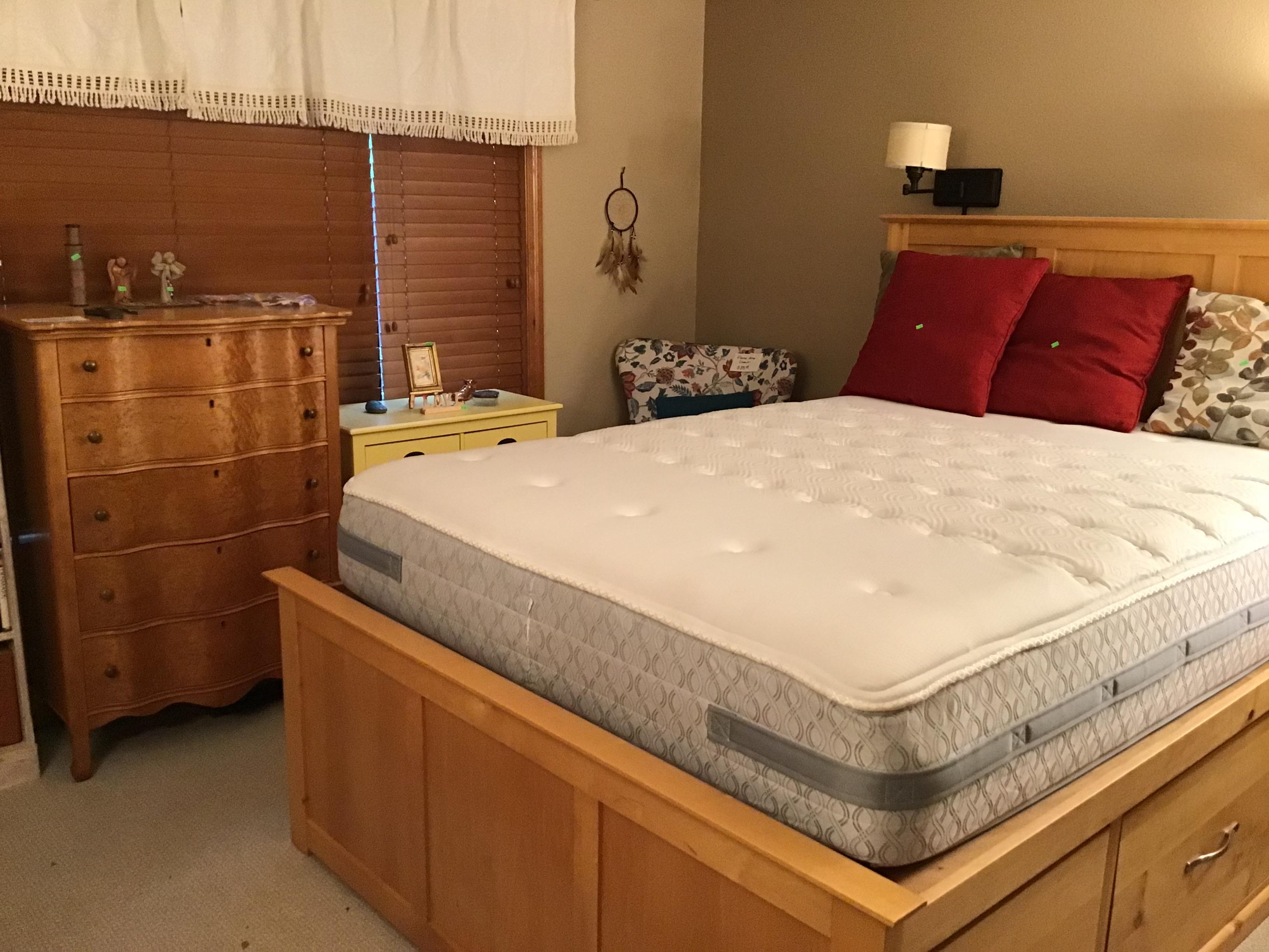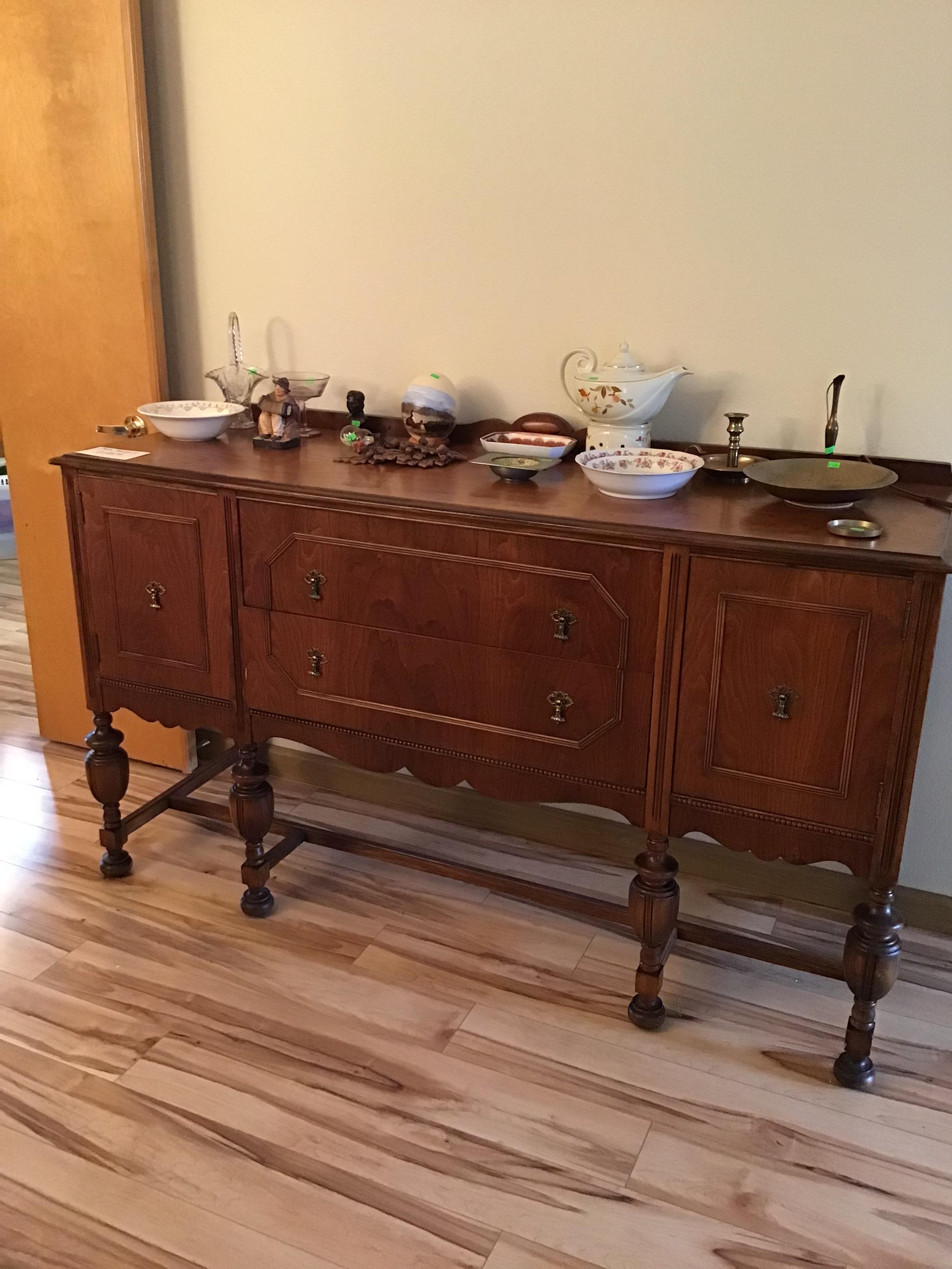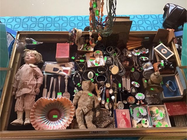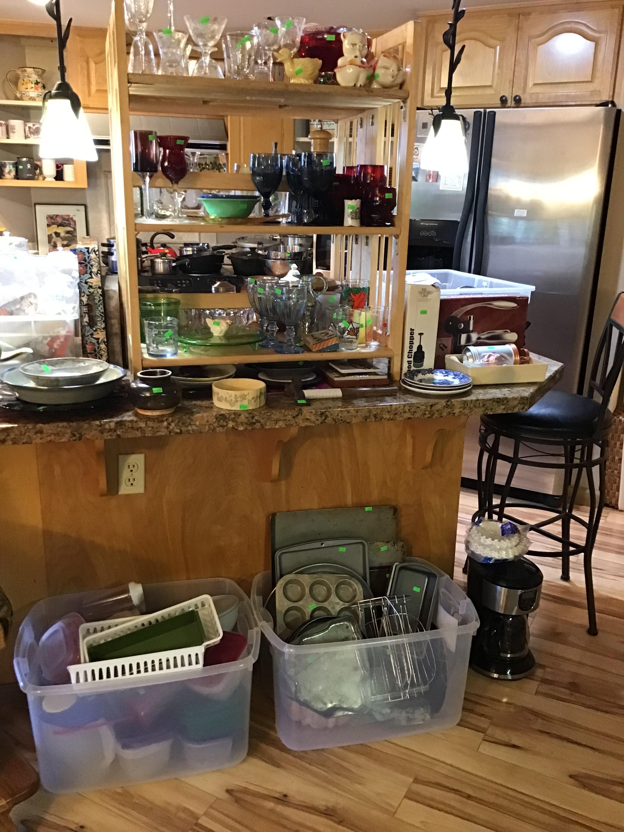 Antiques and collectibles, antique furniture, books. Contemporary furniture, including matching loveseat and sofa, Queen bed frame with storage, book cases, dining table and chairs, buffet, miscellaneous chairs, Linens, women’s clothing and accessories, toiletries and household products, kitchenware including small appliances, pots and pans, glassware, Pyrex, office miscellaneous, board games, wood canoe, outdoor pots, some tools, bookshelves and more!