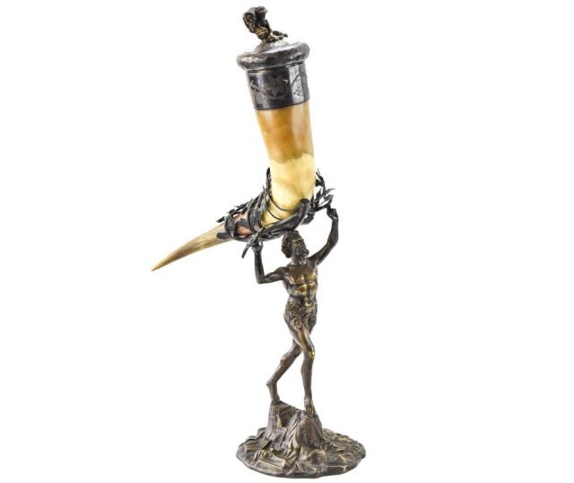 -ADOLF BRAESE "THE STATUE OF THE DANCING FAUN" PRESENTATION DRINKING HORN