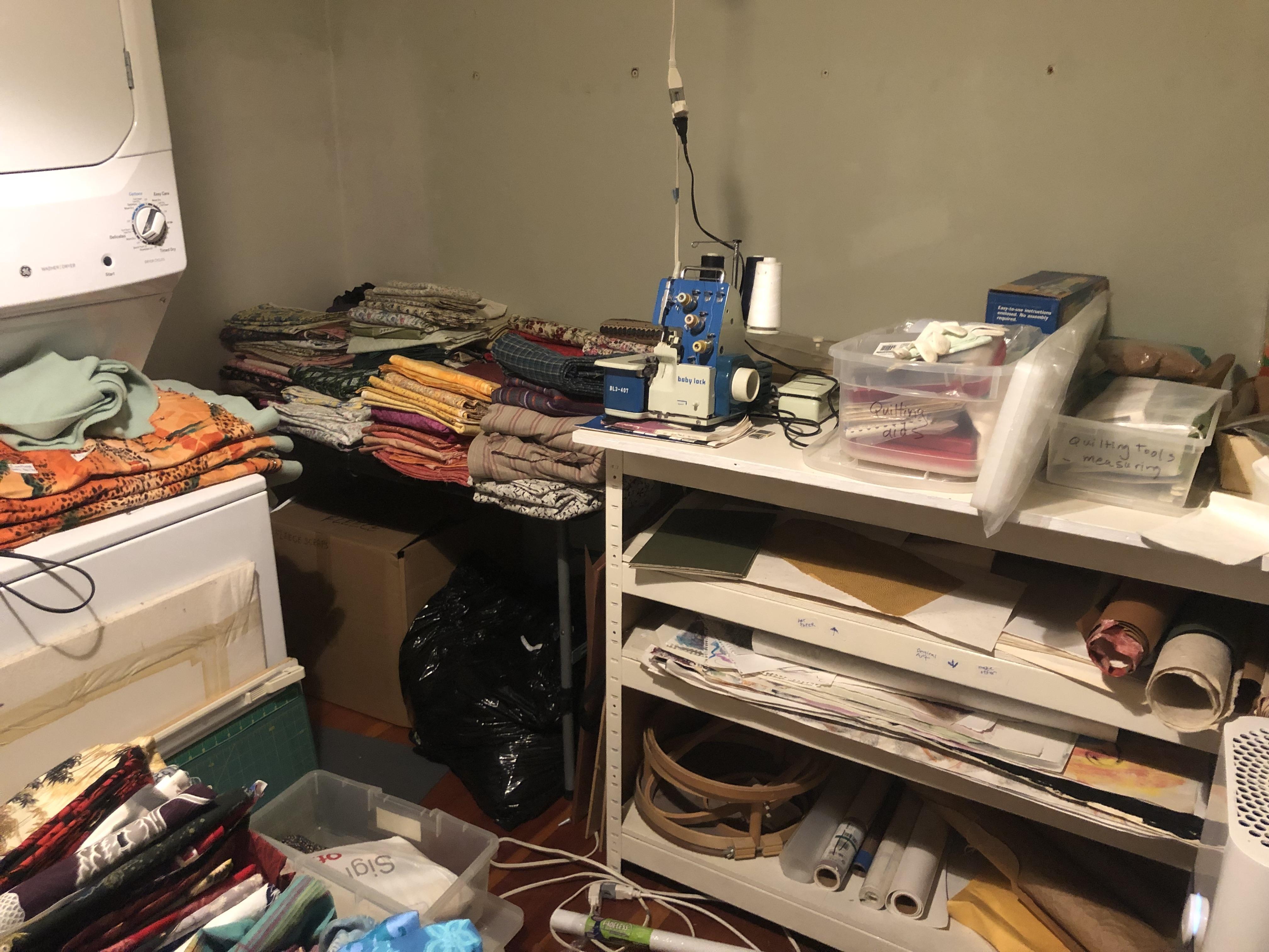Big sale! LOTS of FABRIC! Notions/quilting supplies, craft, tools/hardware, vintage, office, kitchen, garden, furniture, lamps, puzzles, quality kids books, paper, picture frames, art, women’s clothing, linens, washer/dryer, stair wheelchair, shower transfer chair, Christmas, small kitchen appliances…