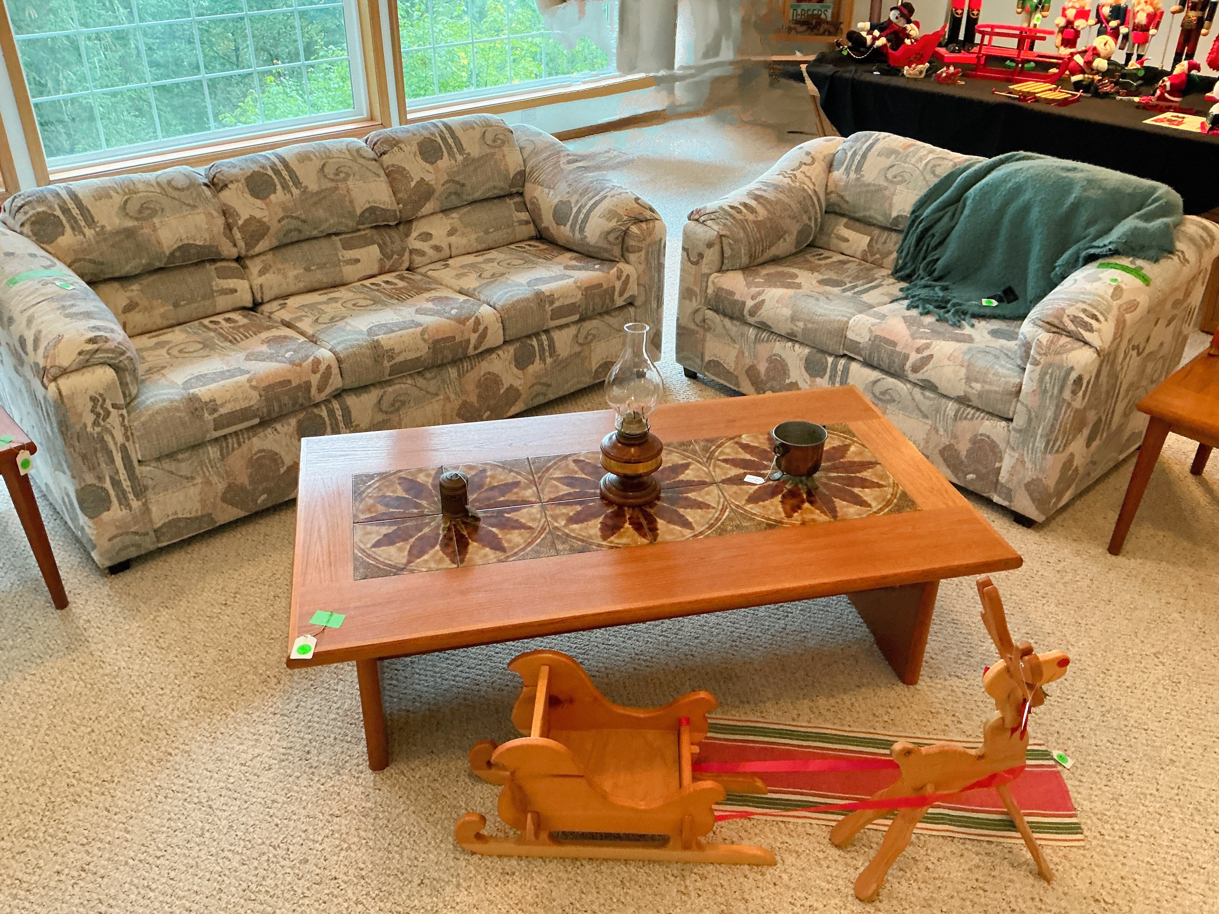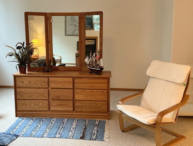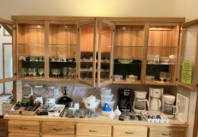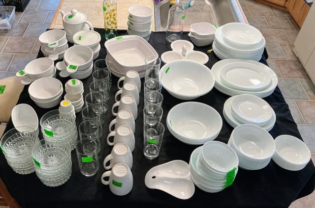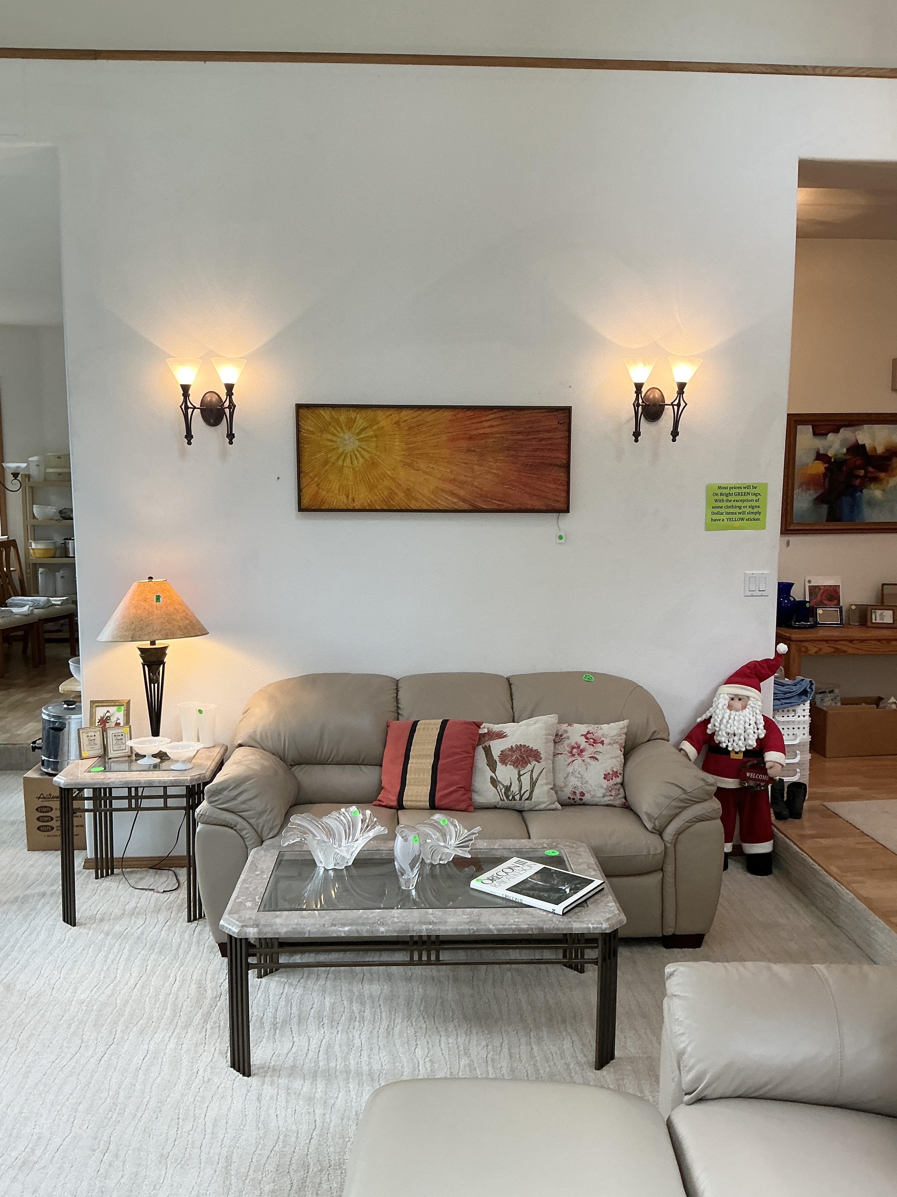 • Tractor, Refrigerator, Freezer, Whirlpool washer and dryer, variety of Clocks, heaters, ladders, many rugs, kitchen utensils and accessories, purses, shoes, full mattress, Corelle Ware sets, 65in television, Ikea chairs, 2 oak dining tables w/chairs, Tupperware, Knives, many style of lamps, Coffee makers, crock pots, full cookware sets, blenders, Disney Telephones, vintage stereo sets, Leather couches, Hand-blown glass, milk glass, hand-carved wooden rocking horse, metal Viking ship, wooden model ships, Oak bedroom sets, lanterns, and much more!!!