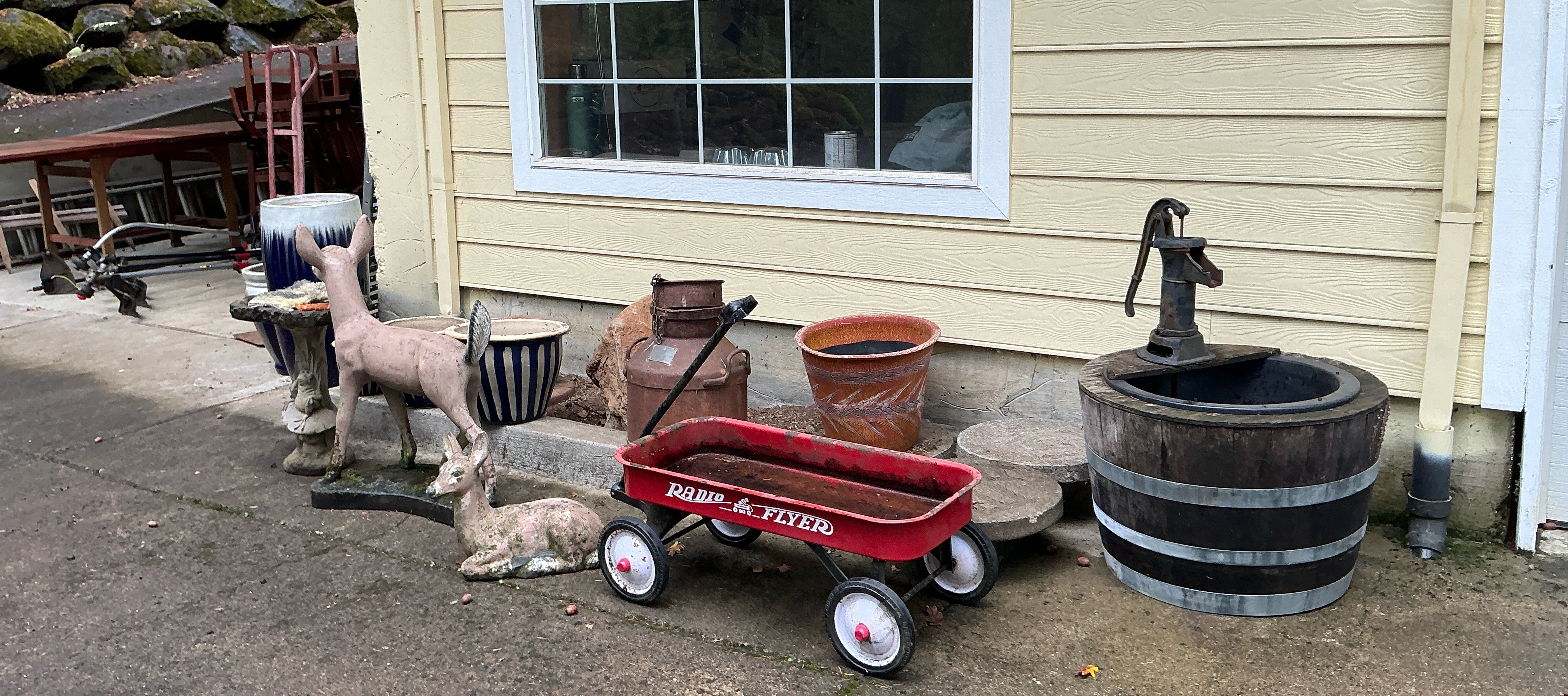 • Outdoor Furniture & Art – Perfect for patios, gardens, and cozy outdoor spaces; from patio sets to tiki statues, to rusty gears, and barbecue.
