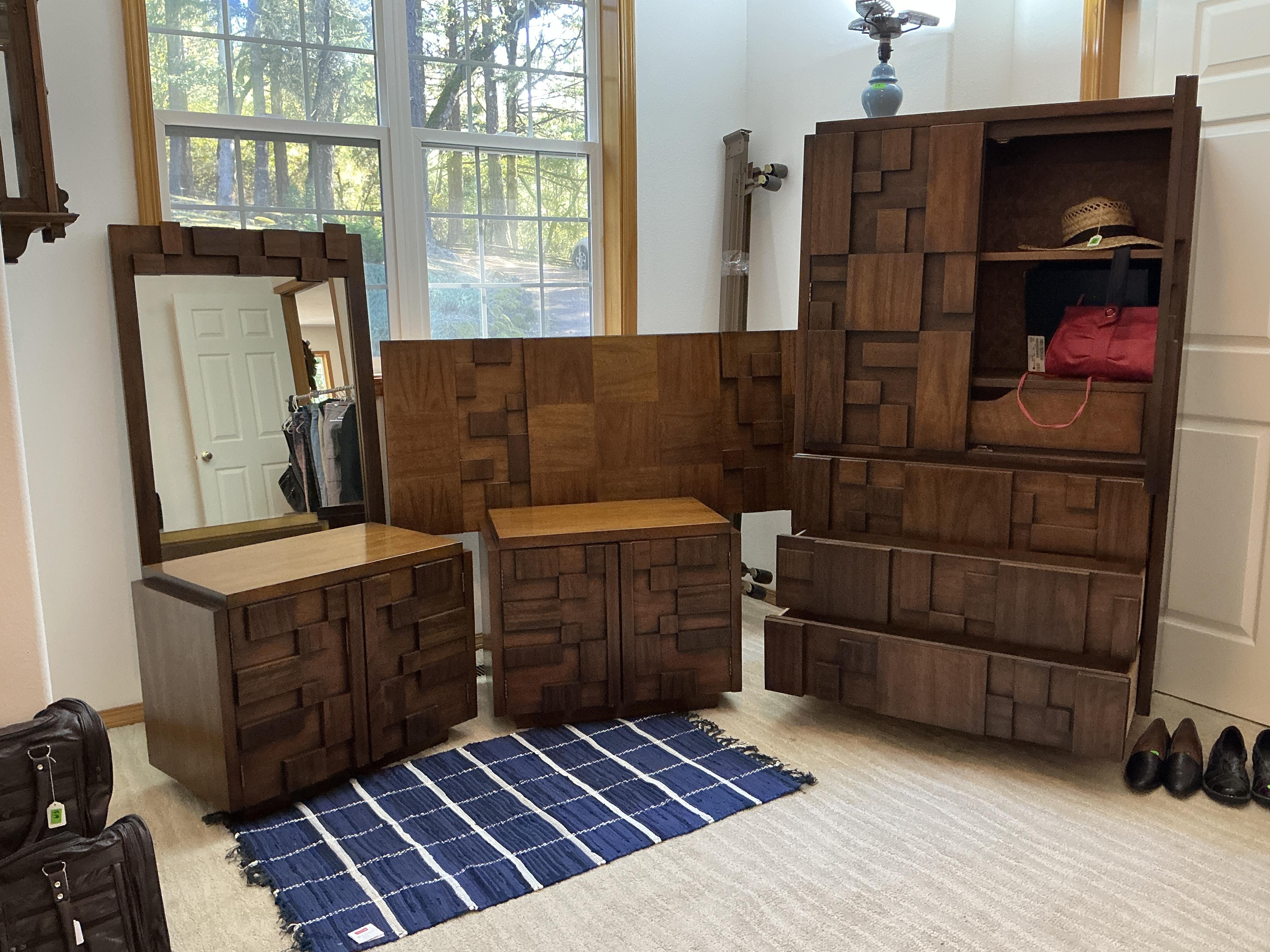 • Unique Mid-Century, Modern, and Vintage Pieces – Preserved over 50 years from Sweden, Denmark, and United States you wont find elsewhere. Including a Lane Queen Brutalist 5pc bedroom set.