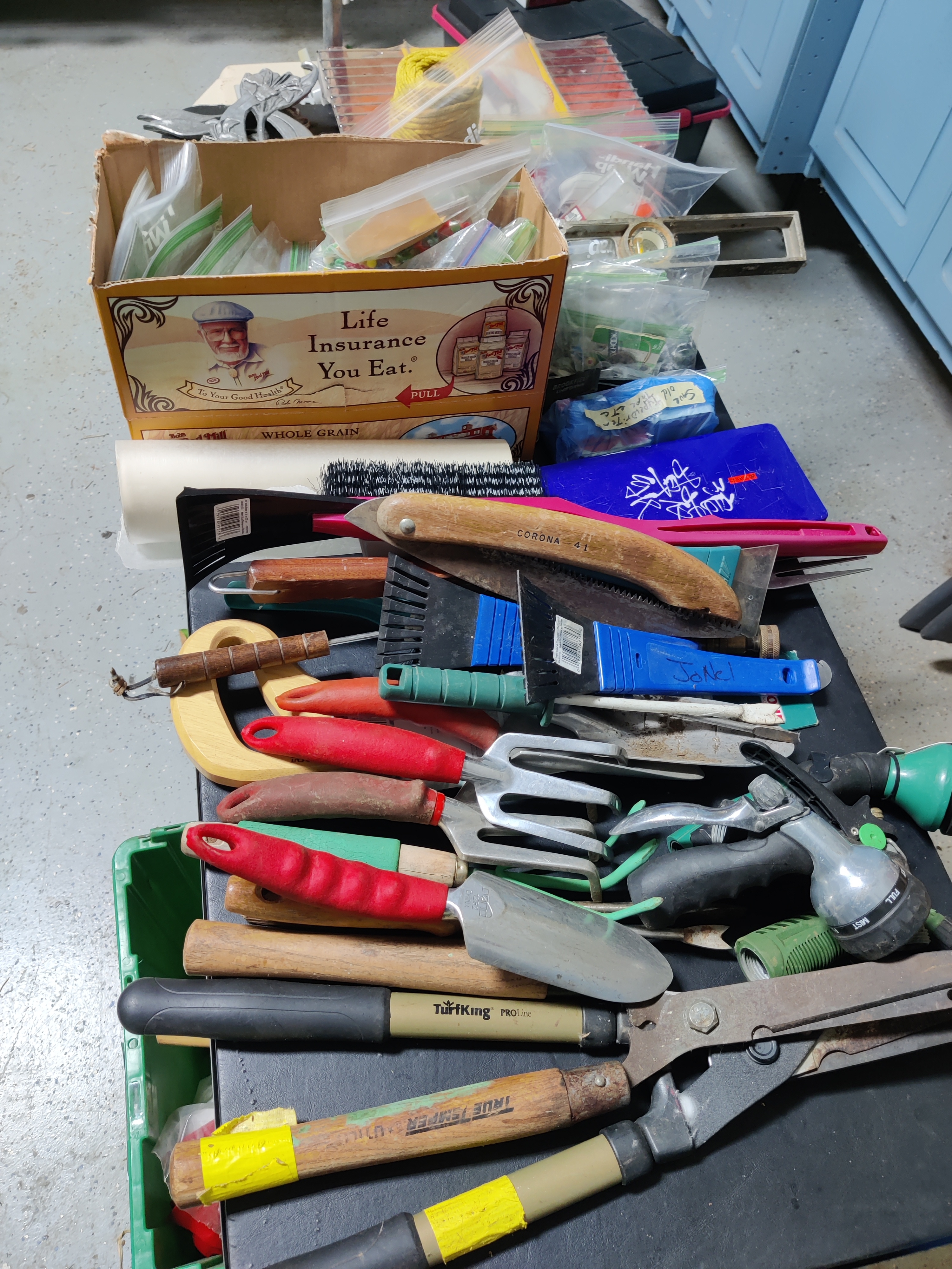 (Time to time there can be a line of folks waiting to get in!! I'm really sorry but we can't anticipate which times those will be!!) (Please feel free to bring a chair, if you have trouble standing!) There may be times we need to limit folks going into the sale. We apologize for any inconvenience it may cause. Thank you so much for attending and understanding! We appreciate you! PLEASE PREPARE TO WAIT, BRING A CHAIR WHATEVER YOU NEED, WE TRY TO GET YOU THROUGH ASAP, BUT THERE IS SO MUCH STUFF I'M SURE FOLKS WILL WANT TO LOOK THOROUGHLY. (IF THERE IS RAIN, WE MAY CHOOSE TO HAND OUT NUMBERS, TO HELP FOLKS STAY DRY. ) PREPARE FOR WALKING! BRING YOUR OWN BAG, WE may ASK YOU TO EMPTY IT. FREE TO BRING GLOVES AND FLASHLIGHTS. WE LOOK SO FORWARD TO YOU COMING AND ENJOYING THE WONDERFUL TIME CAPSULE, THIS BEAUTIFUL FAMILY HAS LET US INTO THEIR LIVES!!!! PLEASE BE RESPECTFUL AND KIND TO EACH OTHER! IF YOU ARE BUYING TOOLS OR LARGE ITEMS FEEL FREE TO HAVE US MAKE A LIST FOR YOU TO TAKE TO THE REGISTER. SEE YOU SOON!!!!