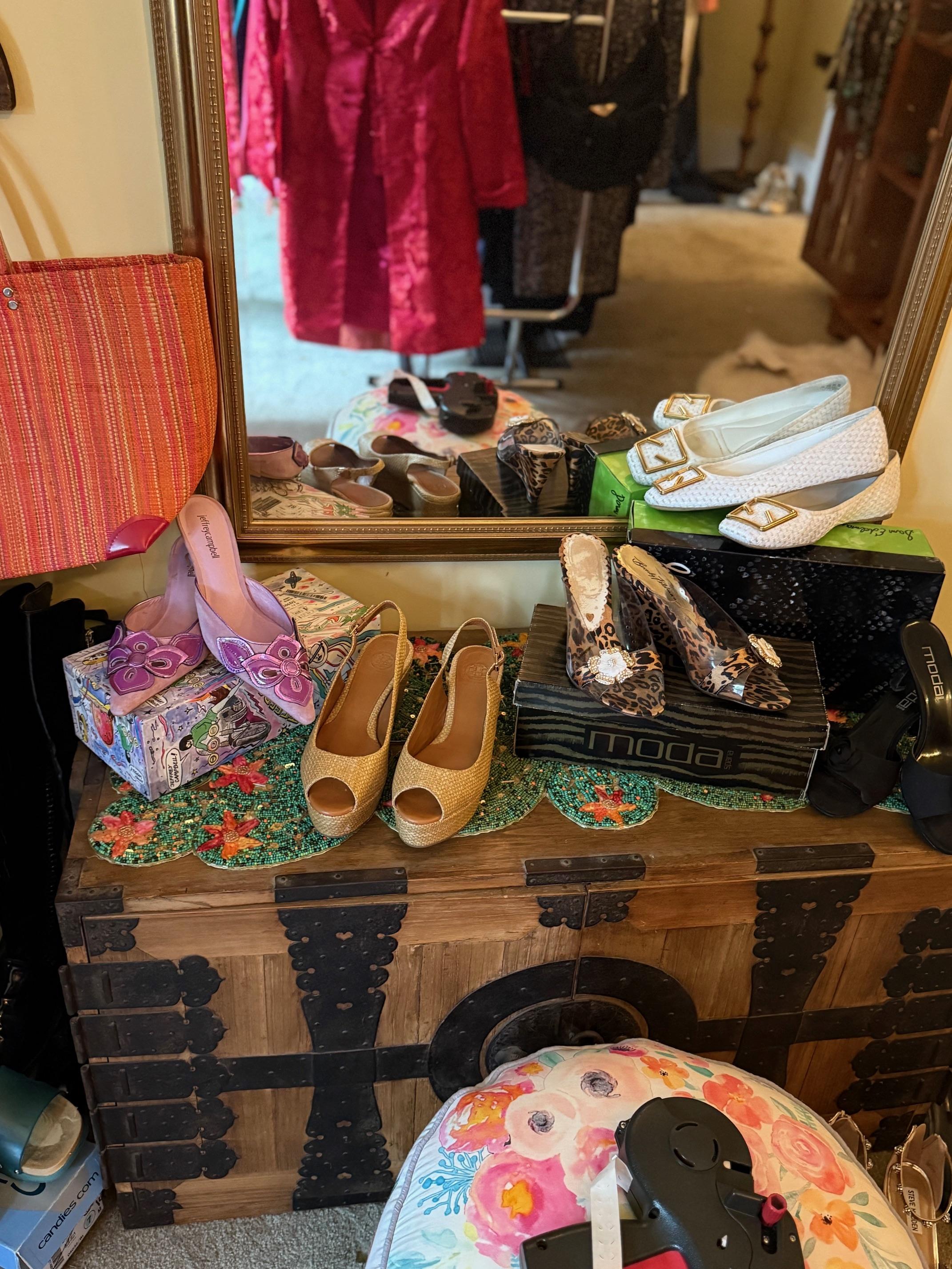 Vintage clothing…Seminole vintage clothing items. Skirts and tops. Designer labels. Christian Dior red jacket for the holidays. Purses, shoes, accessories. A small boutique.