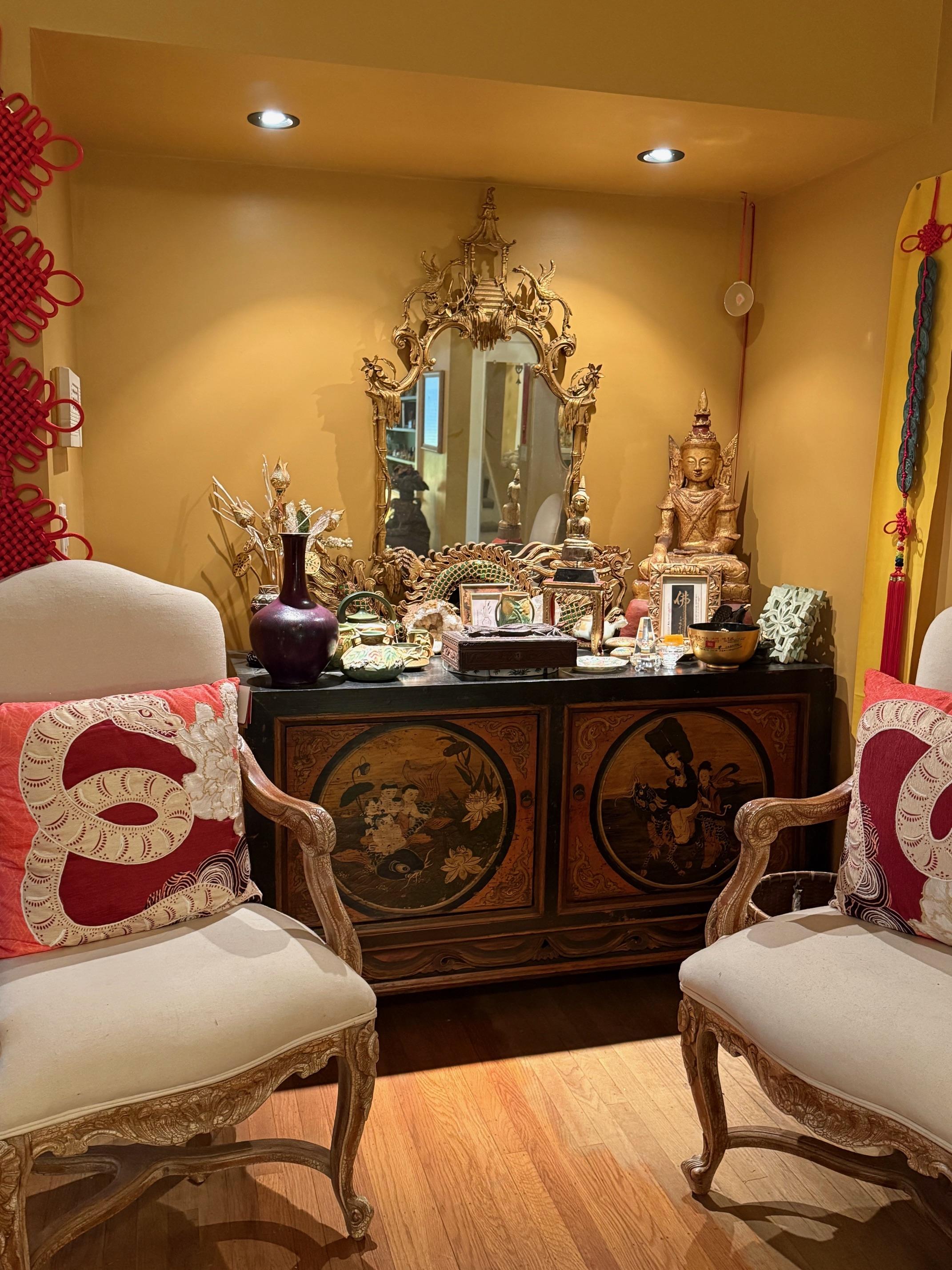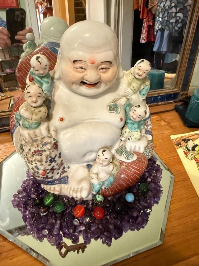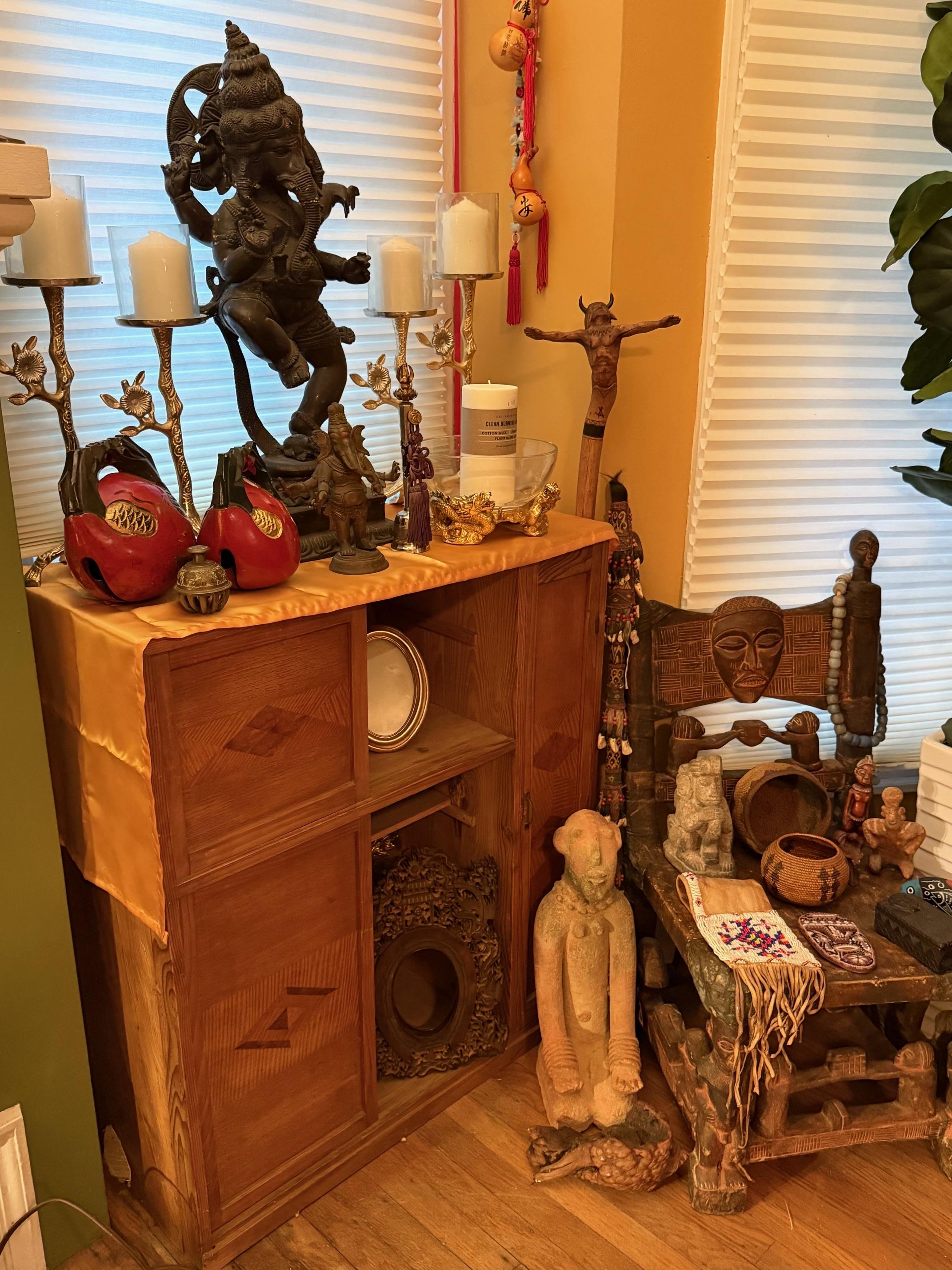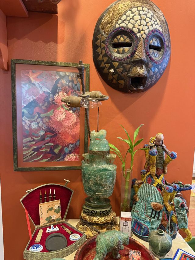 Tiffany style lamps, buddhas, and amazing art. Literally we are bursting at the seams.