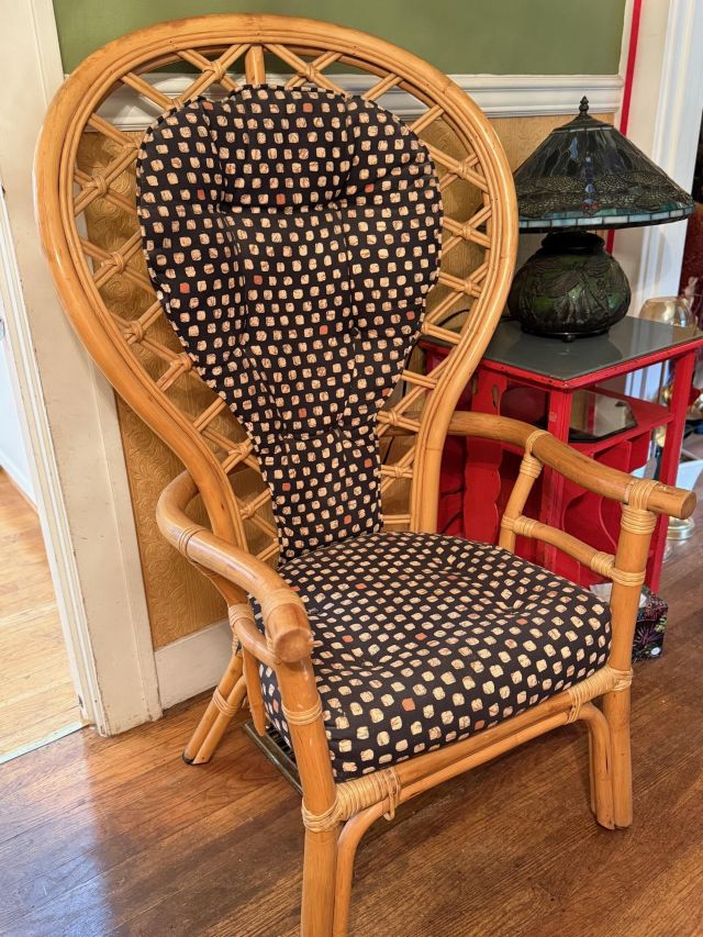 The furniture…..Hawaiiana, Asian flair, antique chests and accessories. Vintage pieces. Settee and chairs in carved ebony. Side tables. Room dividers. The rattan dining set with queen’s back chairs.